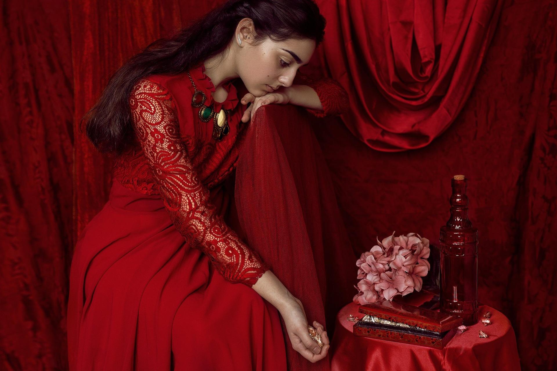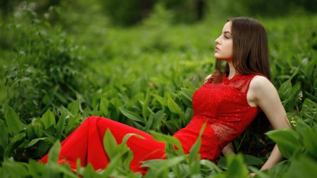 Девушки в красных платьях