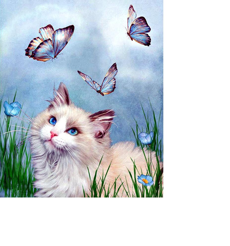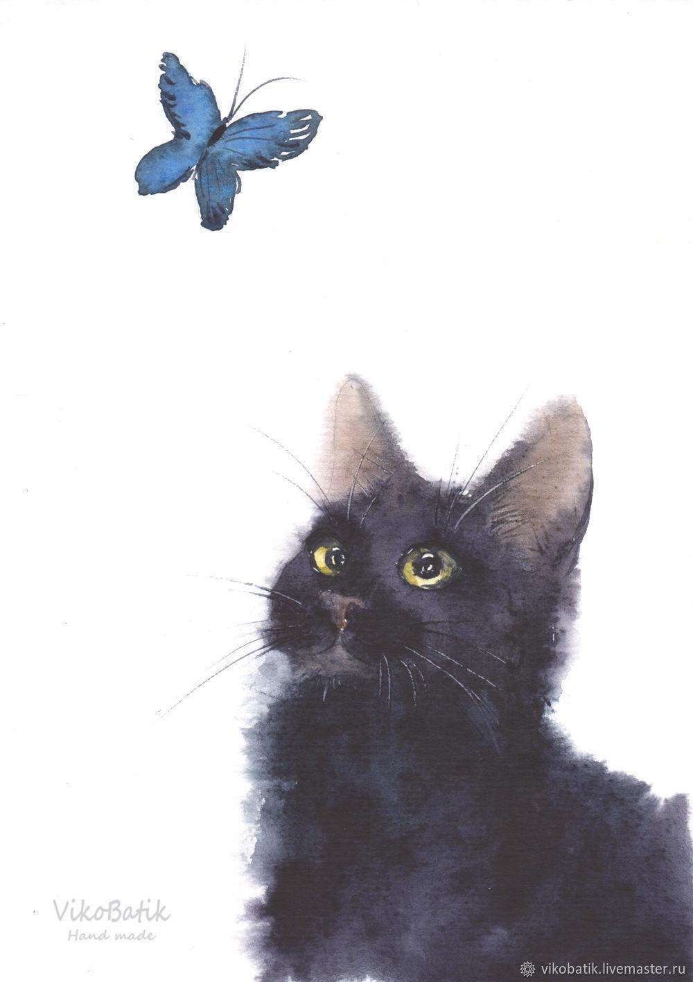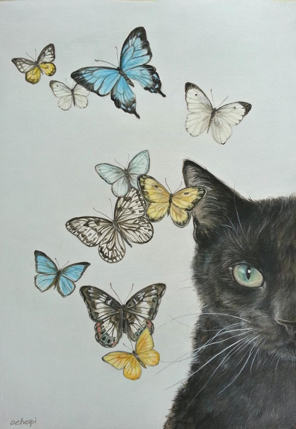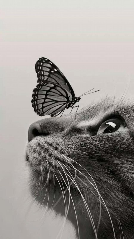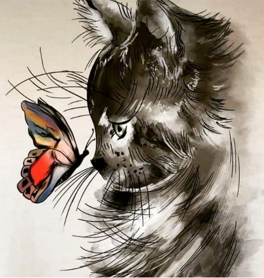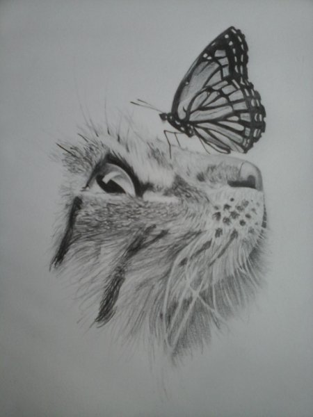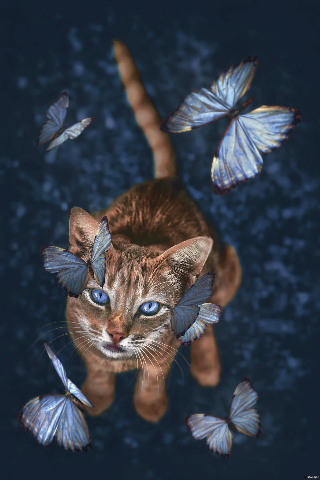 Кот и бабочка арт