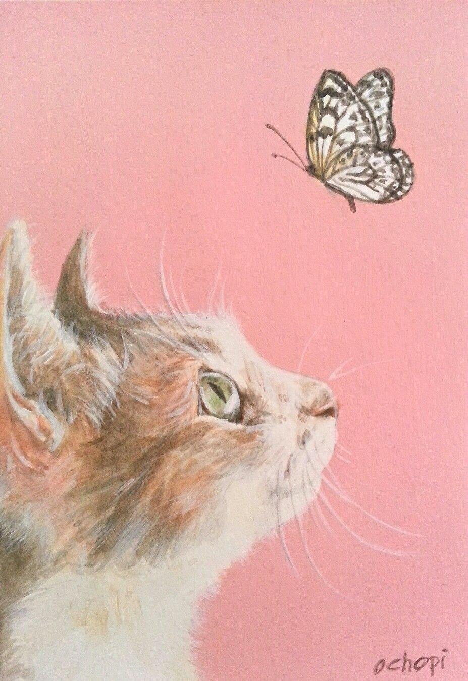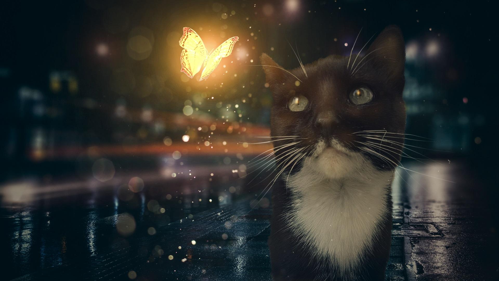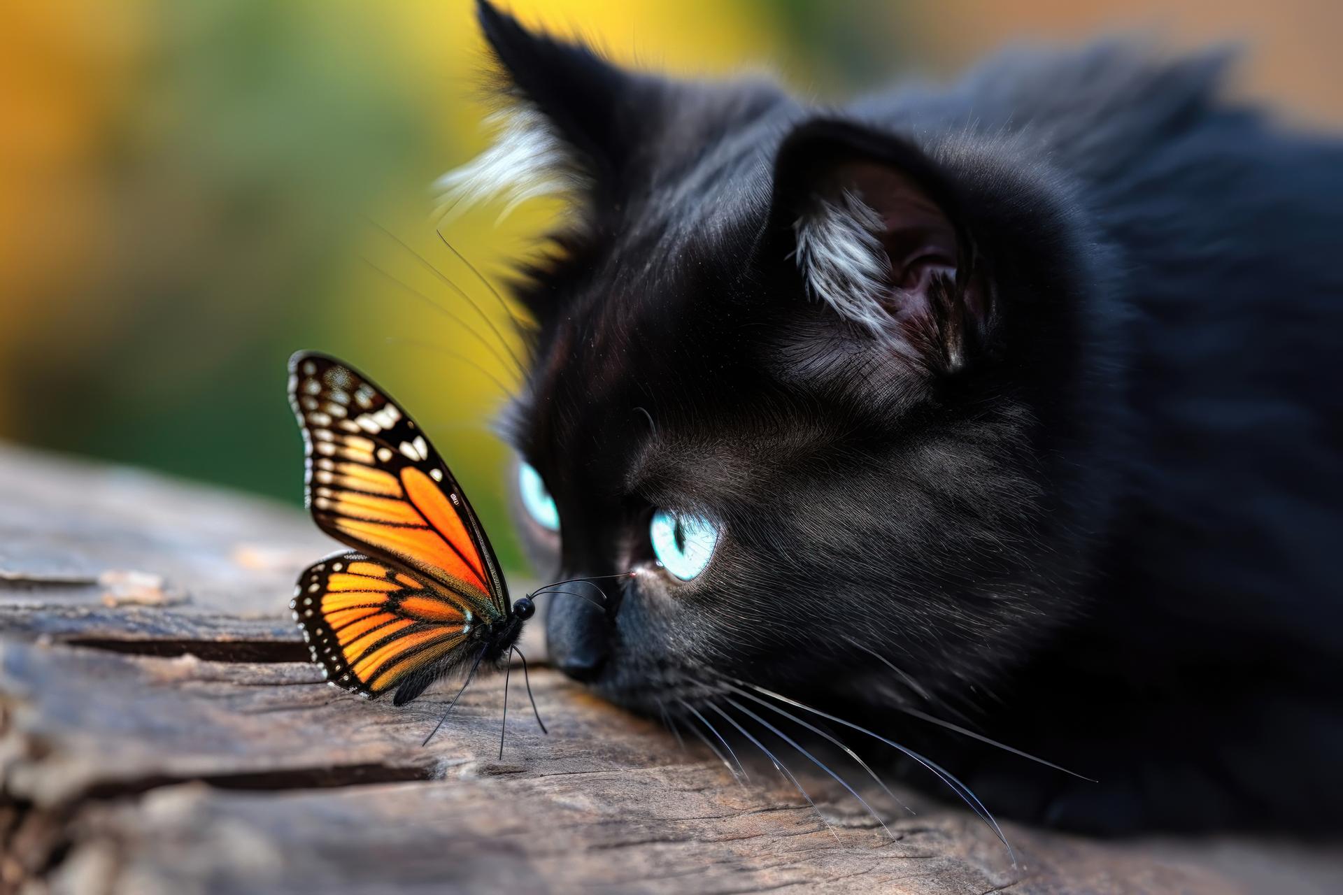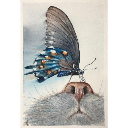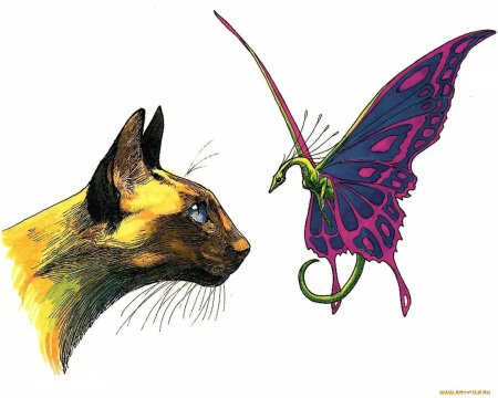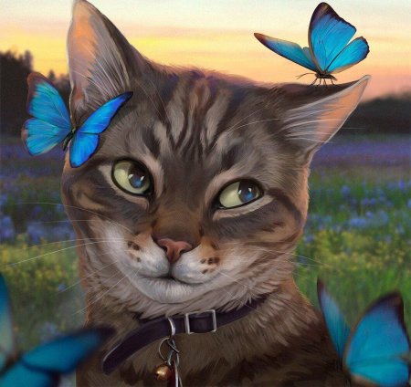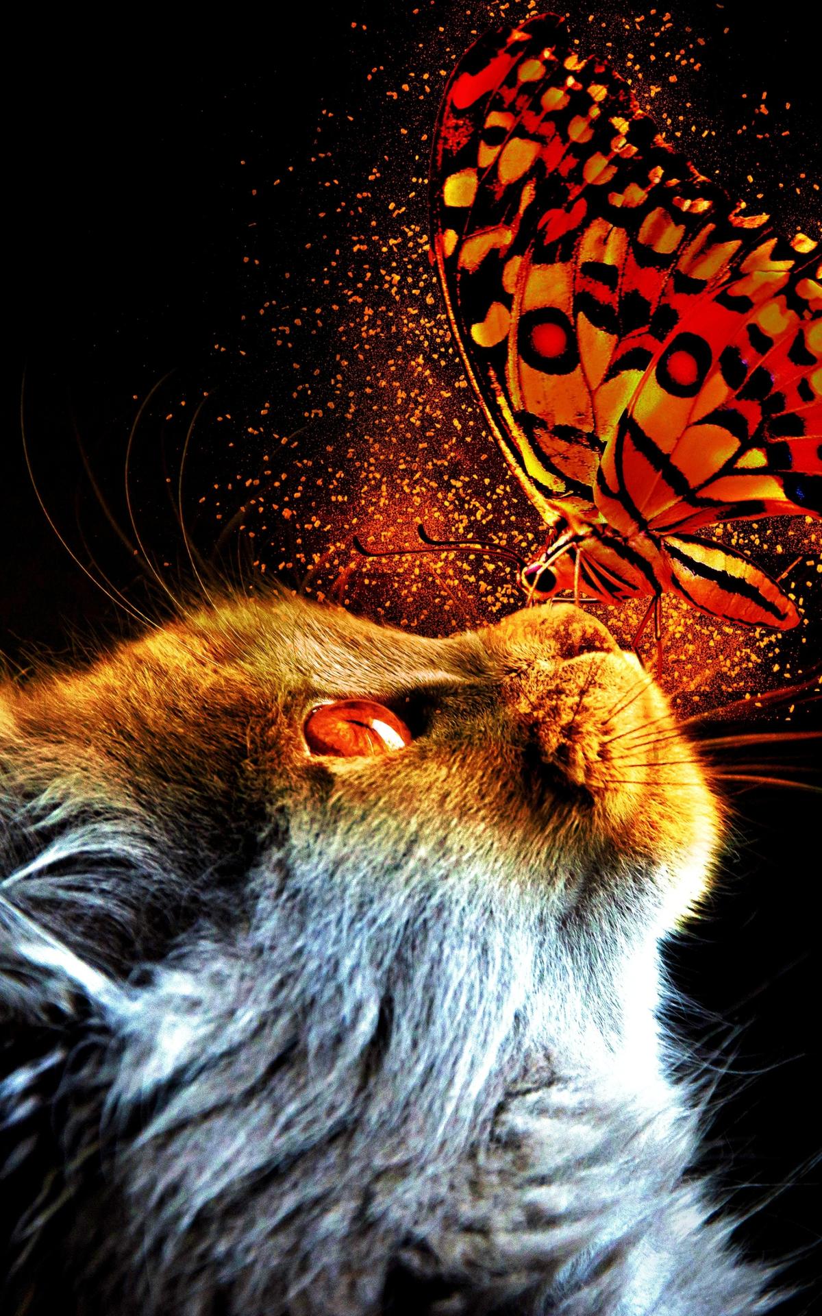 Кот и бабочка арт