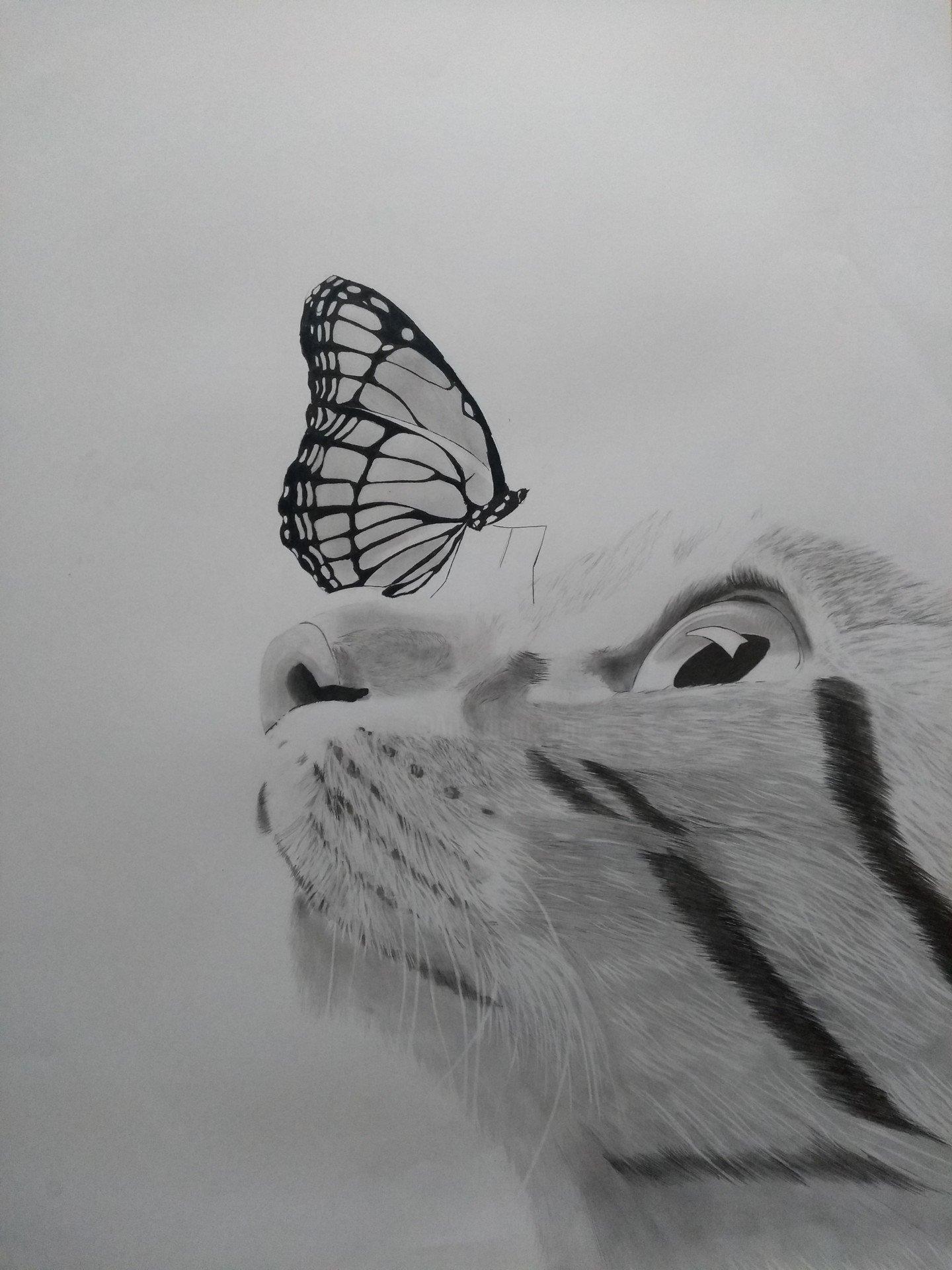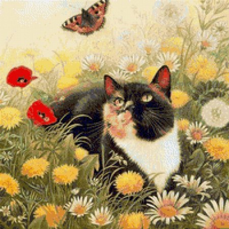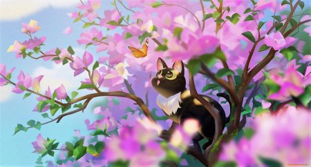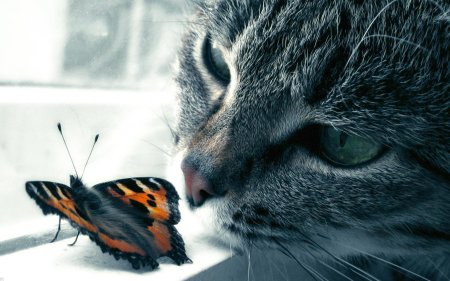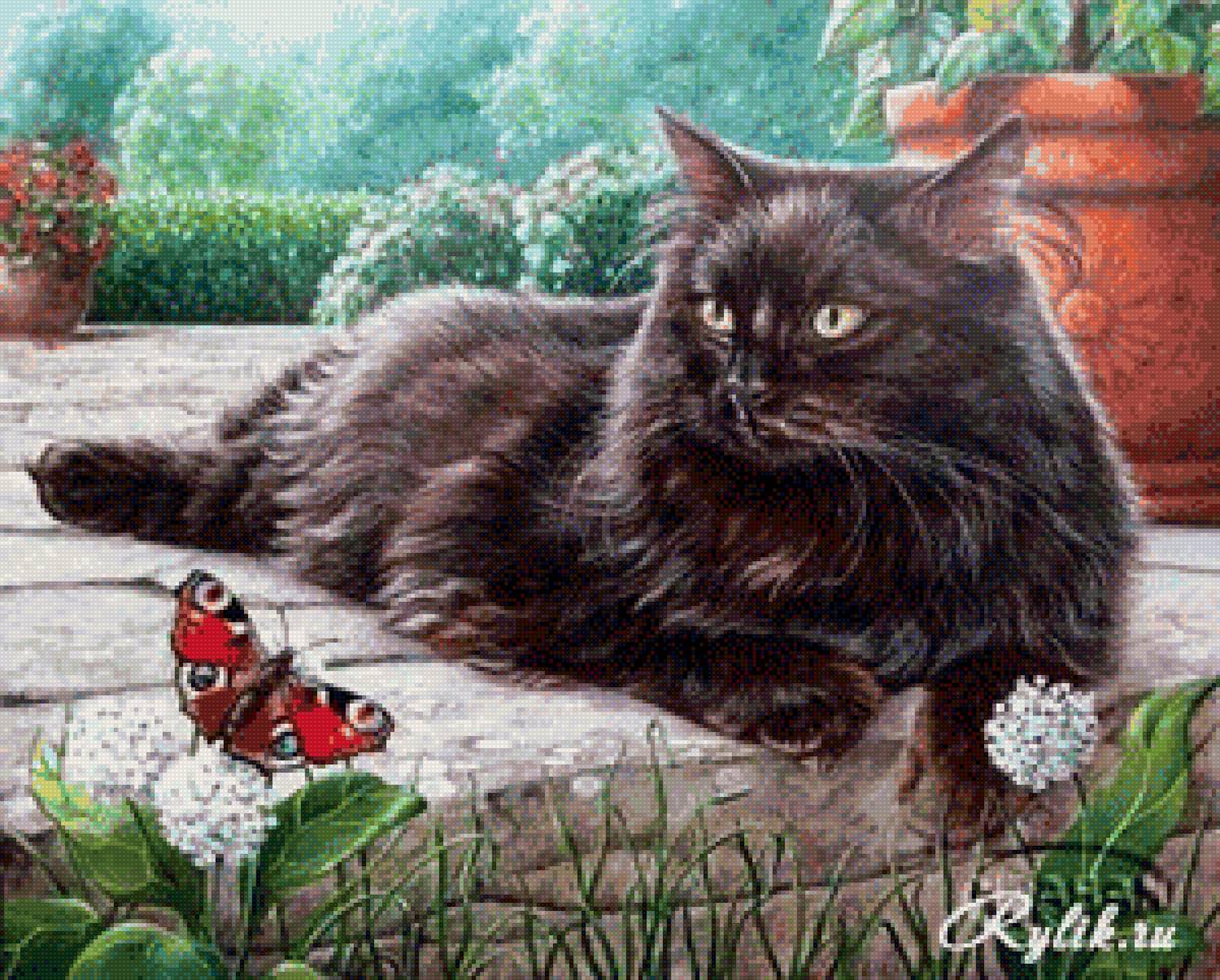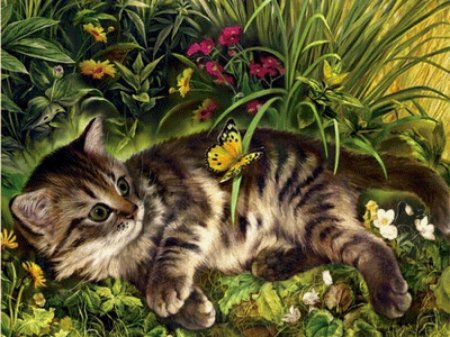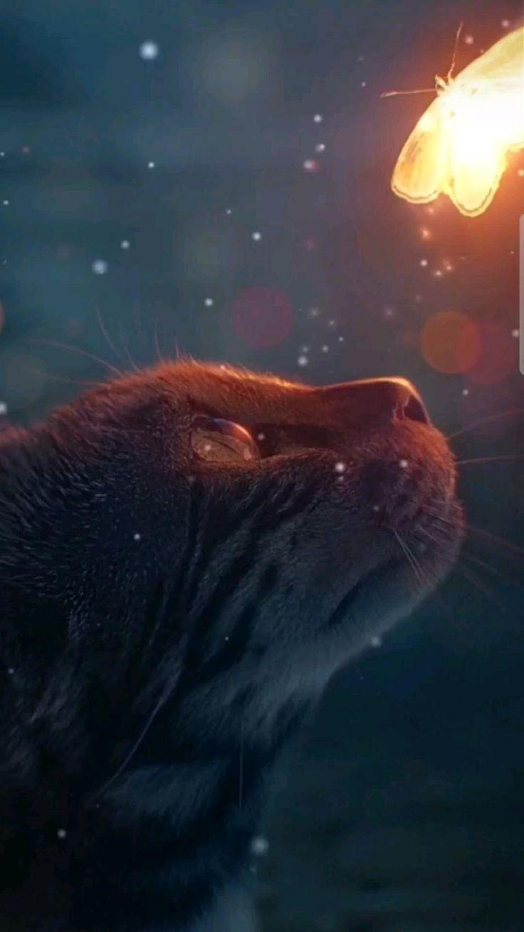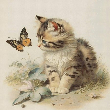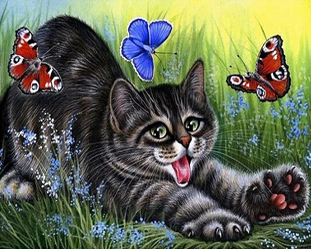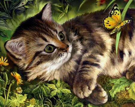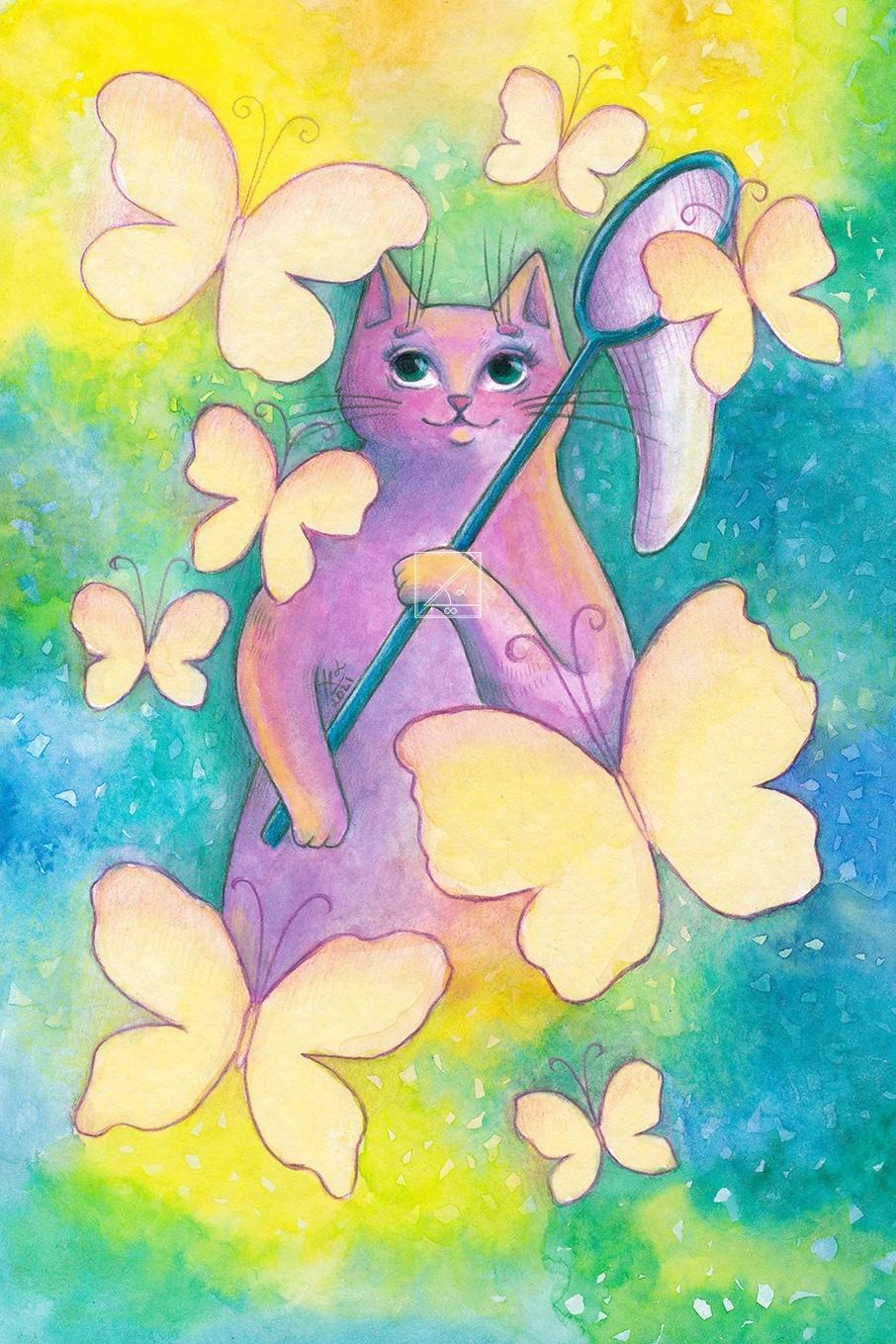 Кот и бабочка арт
