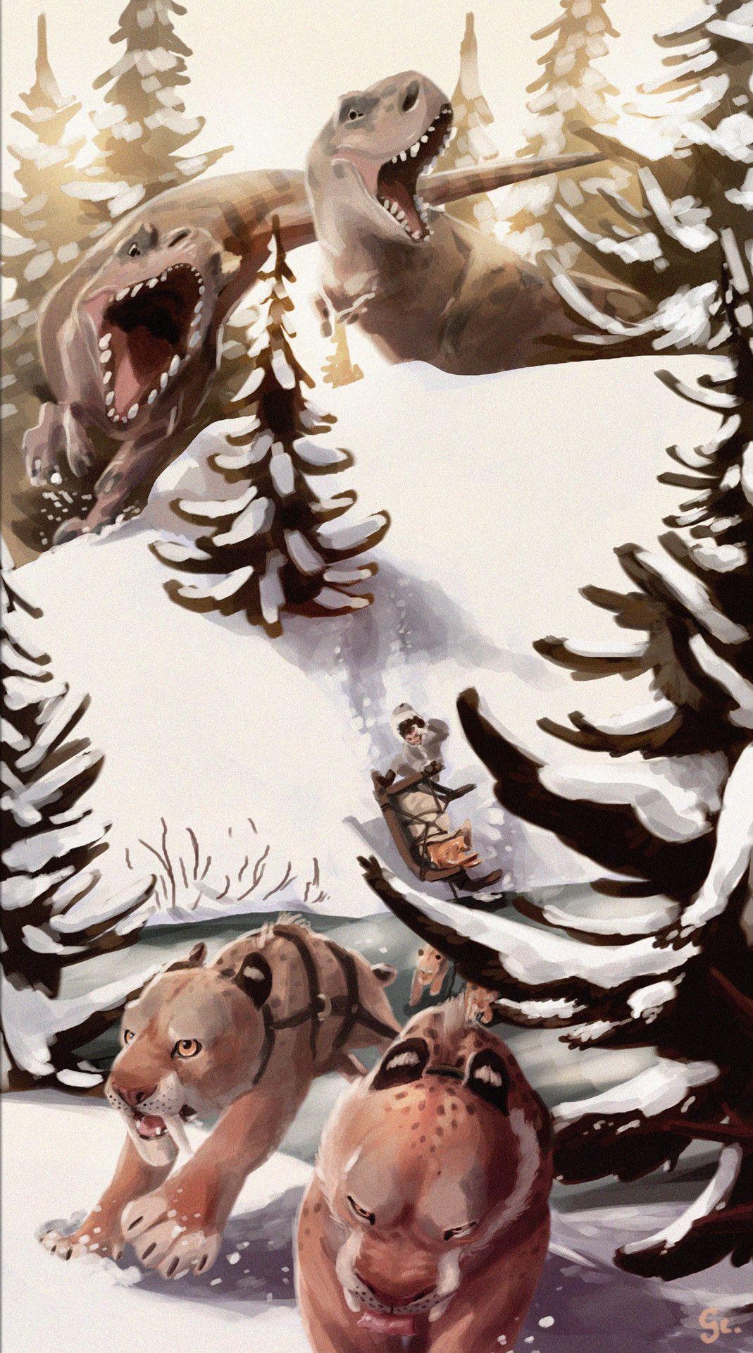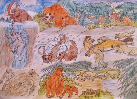 Искусство ледникового периода переносит зрителя в эпоху, когда огромные мамонты бродили по заснеженным равнинам, а саблезубые тигры подстерегали добычу среди ледяных глыб. Художники воссоздают атмосферу той далекой эры с потрясающей детализацией, показывая не только животных, но и жизнь древних людей, их охоту и быт. Иллюстрации передают суровую красоту природы того времени - от сверкающих ледников до тающих снегов весной. Каждая композиция становится уроком палеонтологии, где через искусство оживают ископаемые существа и забытые ландшафты. Эти изображения вдохновляют на размышления о хрупкости экосистем и важности сохранения природы.