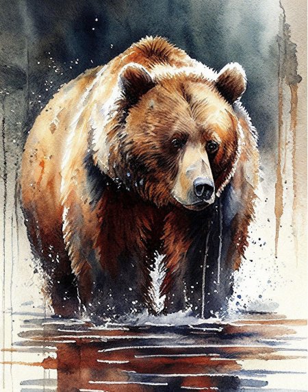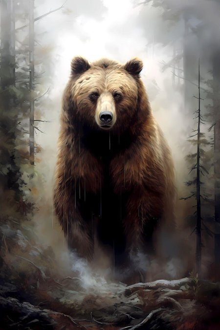 Медведь воплощает в коллекции первобытную силу, мудрость и связь с дикой природой. Иллюстрации показывают этих величественных созданий в различных аспектах жизни: от рыбалки в реках до зимней спячки. Художники используют мощные формы, детальную шерсть и выразительные позы для передачи их достоинства. Тематические сюжеты включают лесные пейзажи, реки, берлоги и семейные сцены, подчеркивая их роль как символов силы и гармонии с природой.