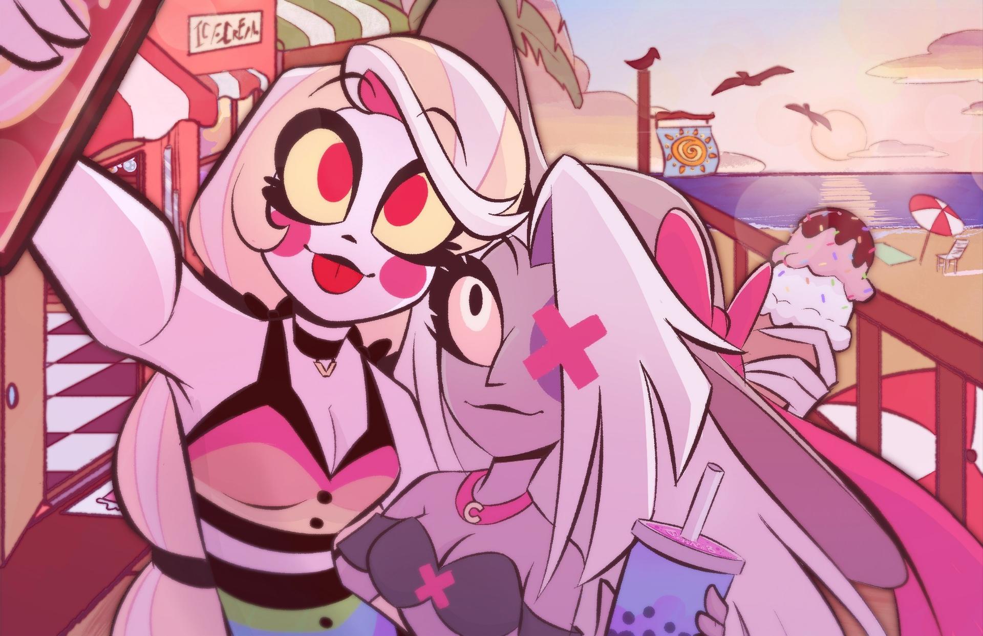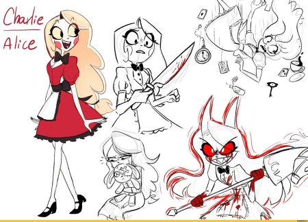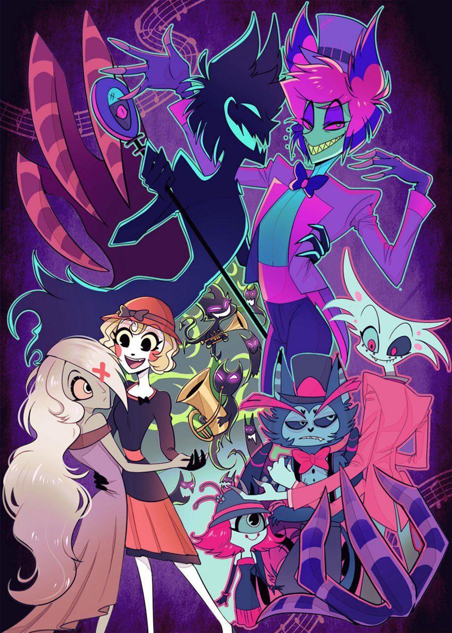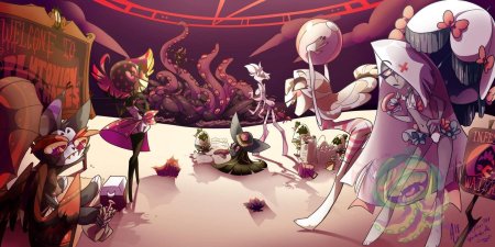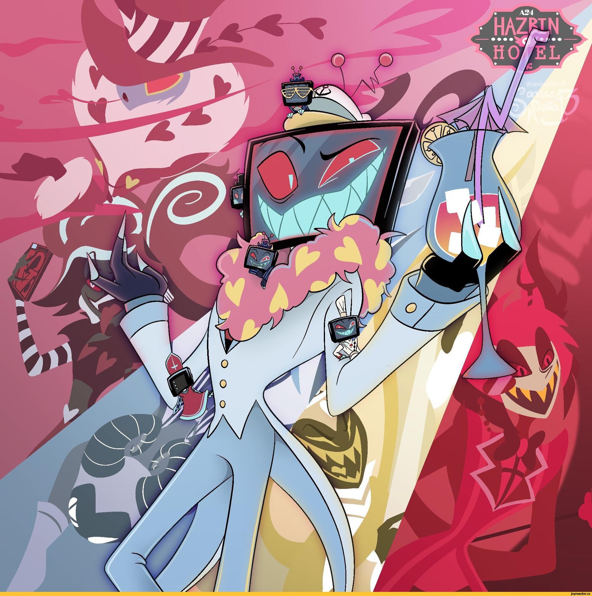 Отель Хазбин оживает в коллекции как экстравагантное место искупления душ в демоническом измерении. Фан-арты показывают роскошный интерьер отеля, его обитателей и гостей в различных ситуациях - от приема посетителей до развлекательных мероприятий. Художники используют яркие цвета, театральные элементы и гротескные детали для передачи уникальной атмосферы шоу. Тематические сюжеты включают бар, сцены, номера отеля и характерных персонажей, создавая целостный образ этого необычного заведения из мира Hazbin Hotel.