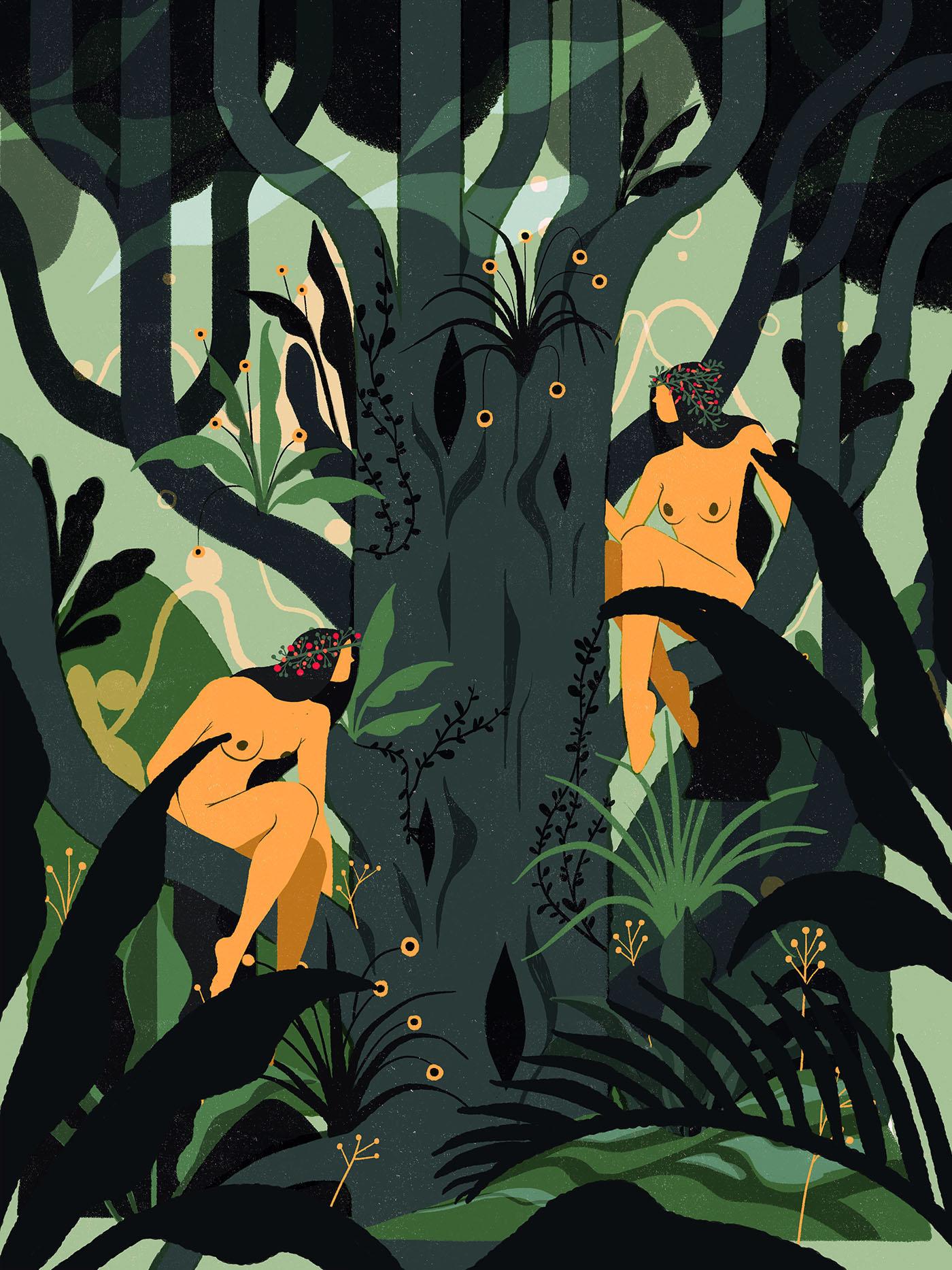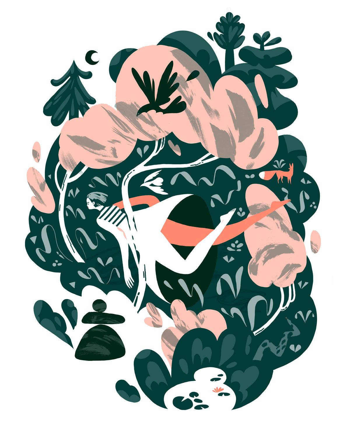 Когда человеческий силуэт сливается с природными формами, рождаются композиции, наполненные глубоким смыслом о гармонии бытия. Эти иллюстрации показывают различные грани взаимодействия: от медитативного созерцания до активного единения с природными стихиями. Деревья, вода, земля и небо становятся не просто фоном, а активными участниками повествования. Прекрасный материал для экологического искусства, йога-практик или просто как напоминание о нашей связи с миром природы. Различные настроения - от спокойной умиротворенности до бурной страсти - позволяют подобрать подходящий вариант для любого контекста.