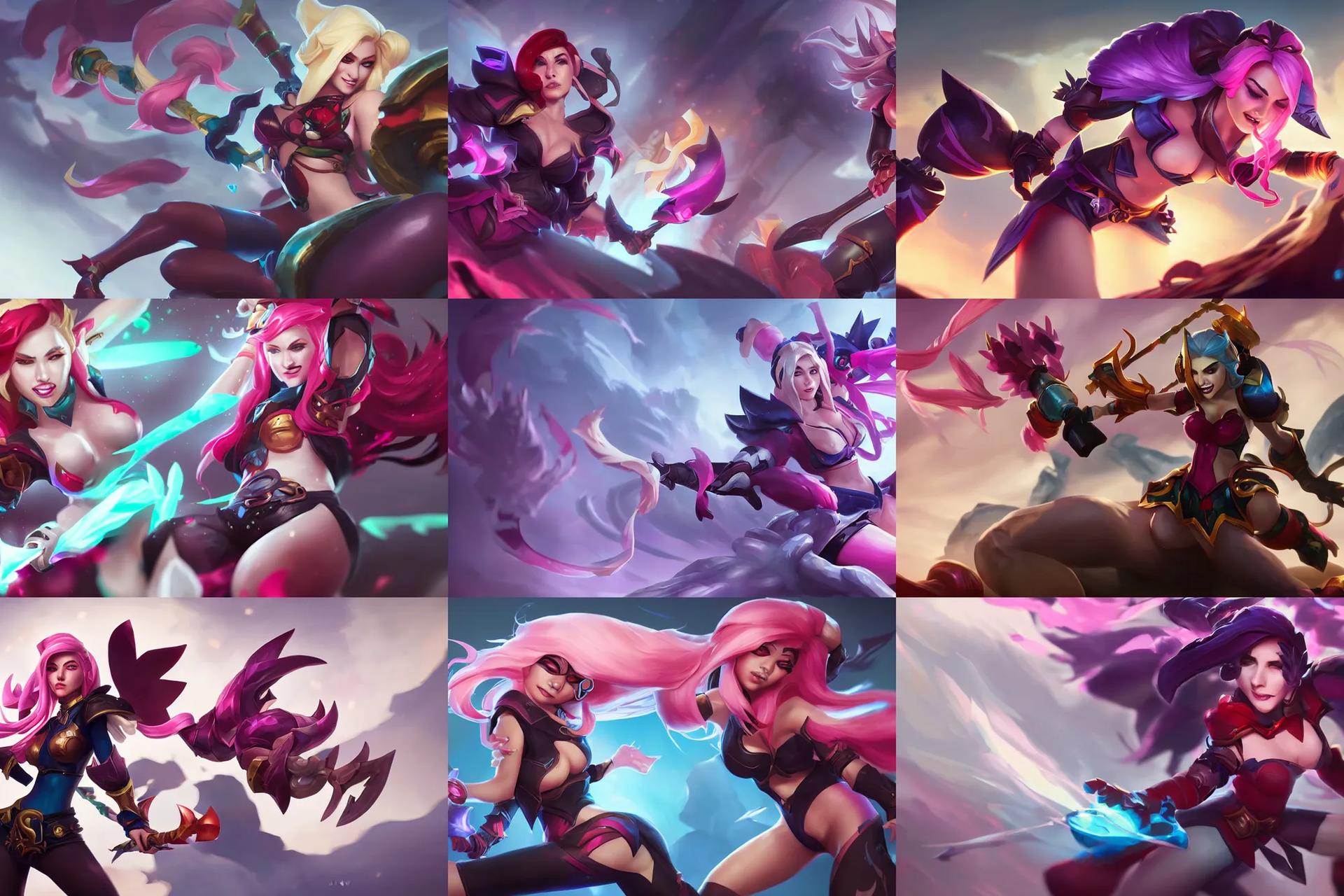 Вселенная League of Legends оживает в этих динамичных иллюстрациях, где каждый чемпион предстает в своем лучшем свете. Магические способности, эпические столкновения, уникальные стили боя - все передано с кинематографической выразительностью. От стремительных ассасинов до мощных танков, от изящных магов до свирепых воинов - разнообразие персонажей поражает воображение. Идеально подходит для создания фан-арта, обложек гайдов или просто как источник вдохновения для любителей MOBA-игр. Детальная проработка костюмов, эффектов способностей и окружающей среды создает атмосферу настоящего фэнтези.