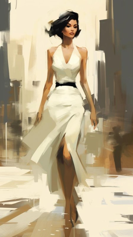 Роскошная женщина предстает как живое произведение искусства, где каждый элемент гардероба подчеркивает ее статус и вкус. Эти иллюстрации демонстрируют разнообразие: от классических вечерних платьев с глубоким декольте до современных силуэтов с драгоценными аксессуарами. Ее поза, взгляд, аксессуары - все работает на создание образа совершенства. Прекрасный материал для модных журналов, создания атмосферы роскоши или просто как источник вдохновения для любителей красивого. Детальная проработка тканей, драгоценностей и освещения делает каждое изображение убедительным.