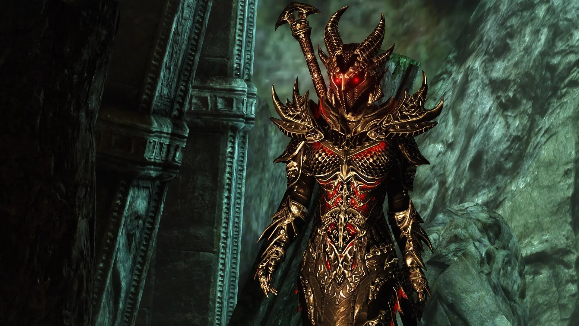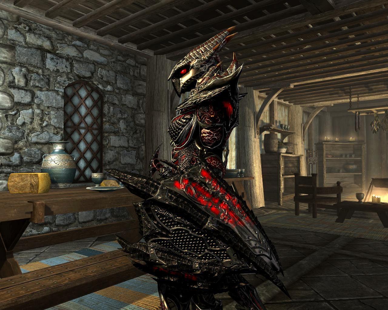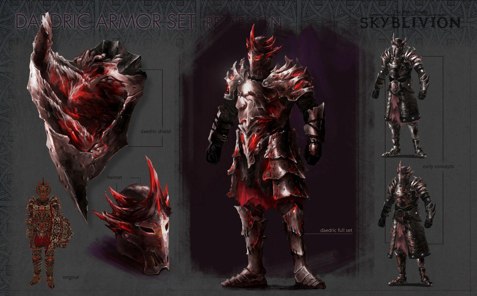 Коллекция раскрывает даэдрическую броню как символ силы и искушения: лезвийные линии, красные прожилки и дьявольский блеск. Иллюстрации и изображения подойдут для лора, косплея, концепт‑арта и обложек. Картинки дают референсы по свету на полированном металле, узорам и посадке доспехов. Арты построены на контрасте огня и тени, подчёркивая природу предмета — опасную, но завораживающую, будто обещающую власть в обмен на цену.