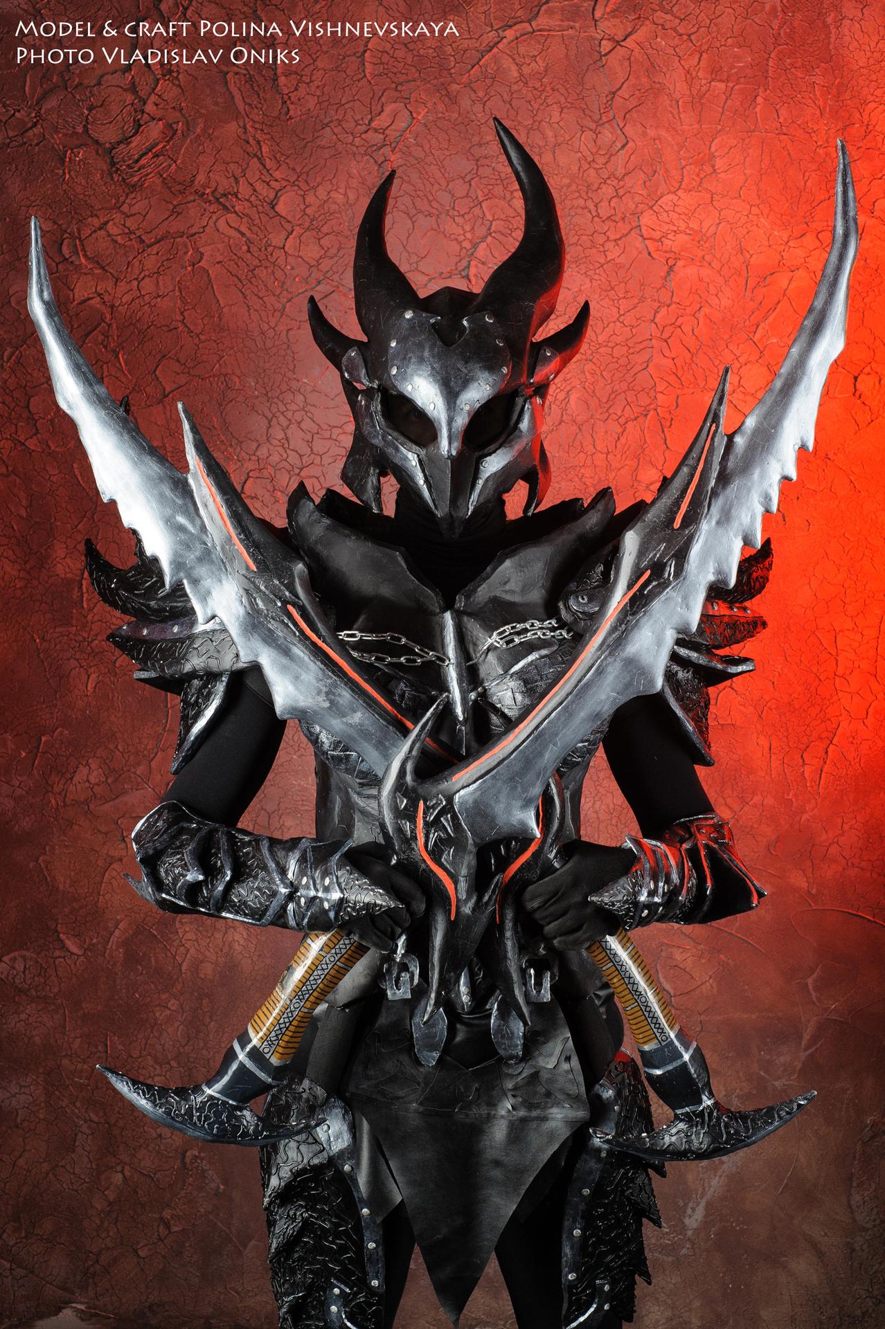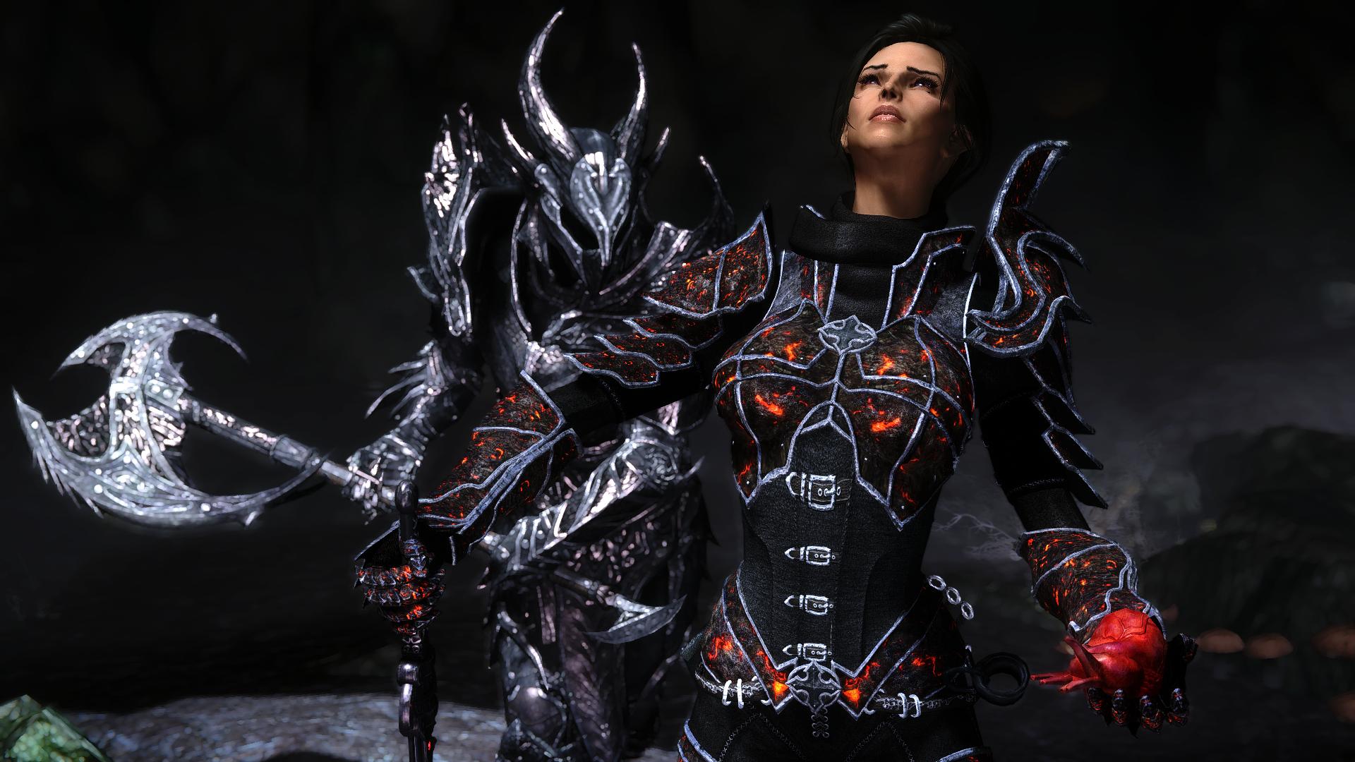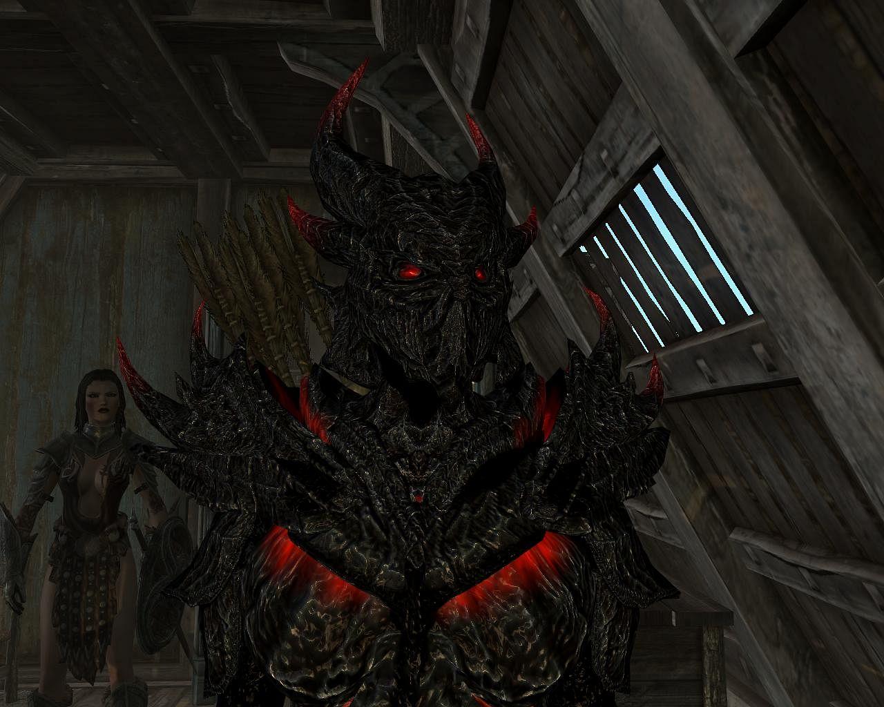 Коллекция раскрывает даэдрическую броню как символ силы и искушения: лезвийные линии, красные прожилки и дьявольский блеск. Иллюстрации и изображения подойдут для лора, косплея, концепт‑арта и обложек. Картинки дают референсы по свету на полированном металле, узорам и посадке доспехов. Арты построены на контрасте огня и тени, подчёркивая природу предмета — опасную, но завораживающую, будто обещающую власть в обмен на цену.