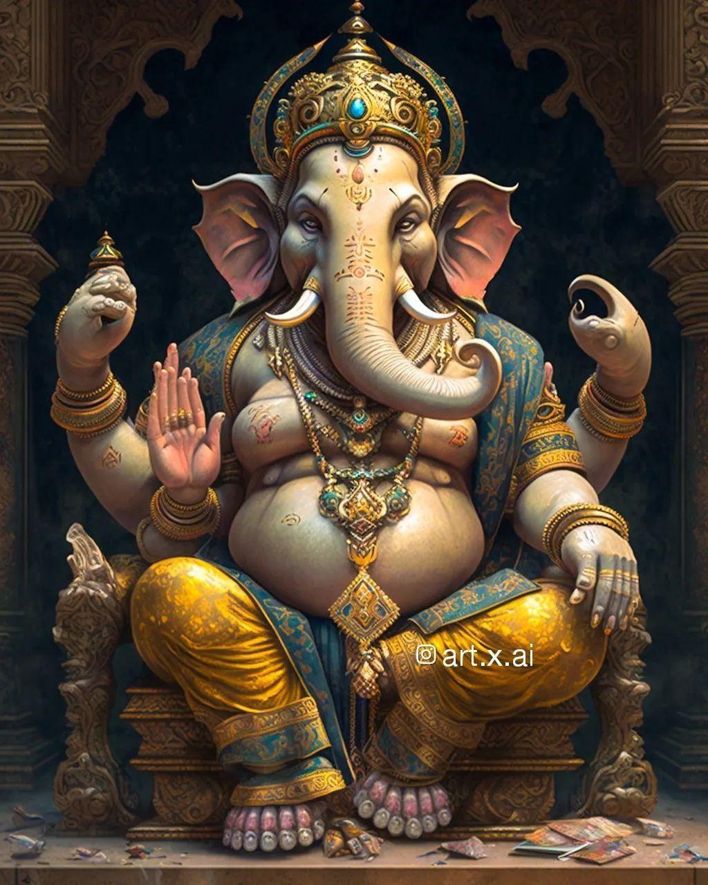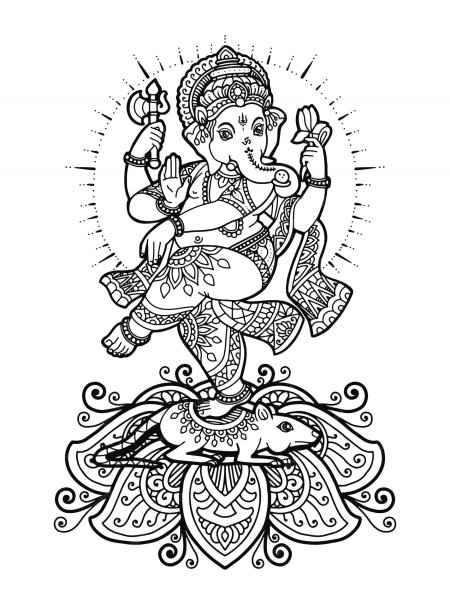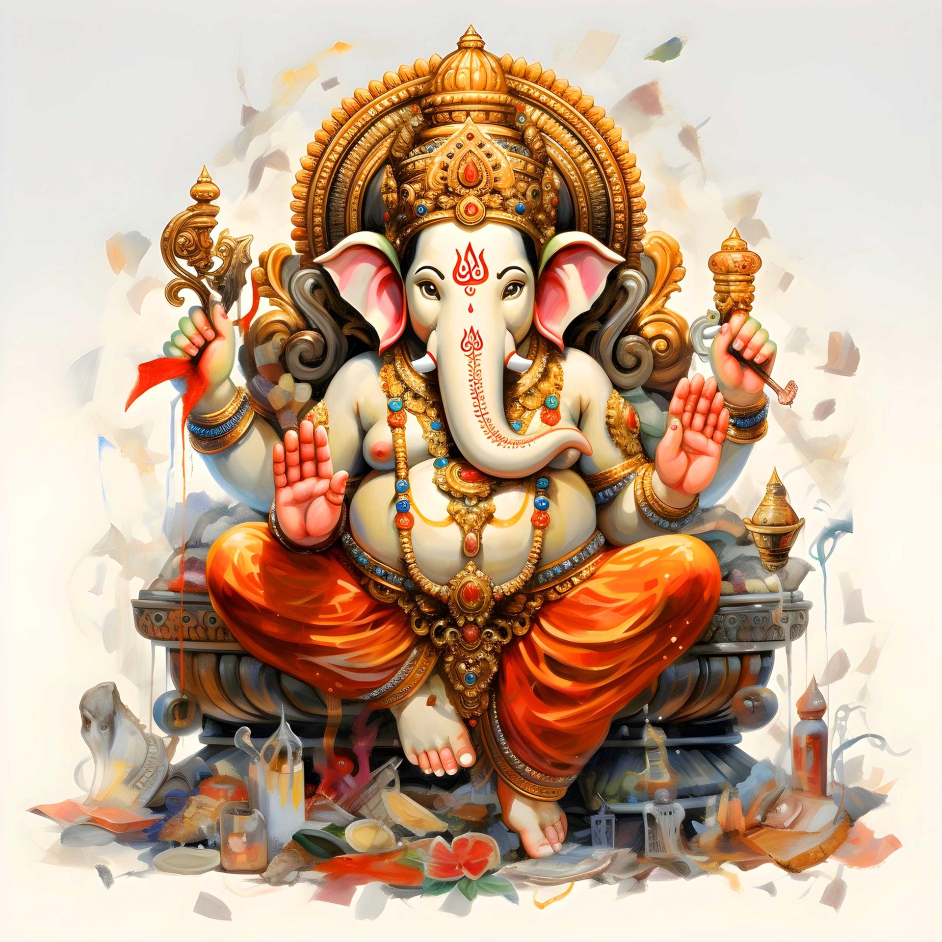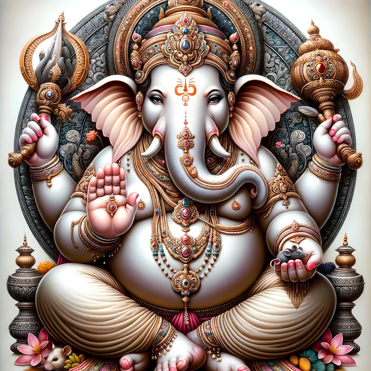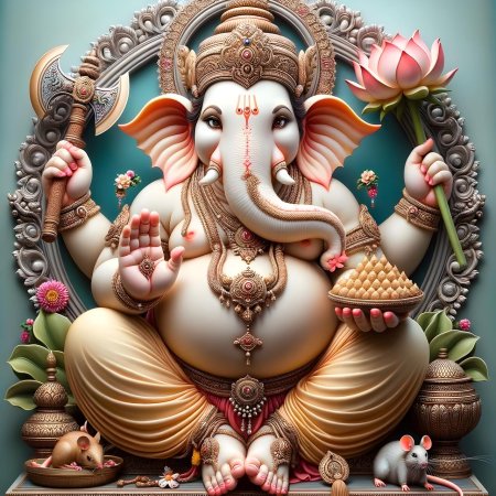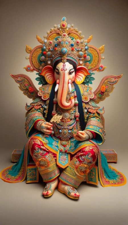 Ганеша, бог с головой слона, предстает как многогранное божество, объединяющее в себе силу, мудрость и юмор. В этих изображениях он показан в различных аспектах: то как благословляющий мудрец с книгой и четками, то как радостный танцор с сладостями. Его атрибуты - сломанная клык, мышонок-повозка, модак в хоботе - тщательно проработаны и наполнены символическим смыслом. Прекрасный материал для изучения индуизма, создания алтарей или просто как источник вдохновения для тех, кто преодолевает жизненные препятствия. Различные стили - от традиционных икон до современных цифровых интерпретаций - делают коллекцию универсальной.