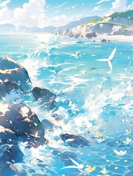 Дыхание моря становится живым существом, где каждый порыв ветра несет соль океана и свободу просторов. Эти иллюстрации передают атмосферу свежести: колышущиеся волны, брызги на камнях, парящие чайки. Каждый кадр уникален в своей динамике, символизируя связь с природой. Прекрасный материал для медитаций, создания атмосферы отдыха или просто как символ обновления. Детальная проработка водных текстур, движения и освещения делает каждое изображение живым.