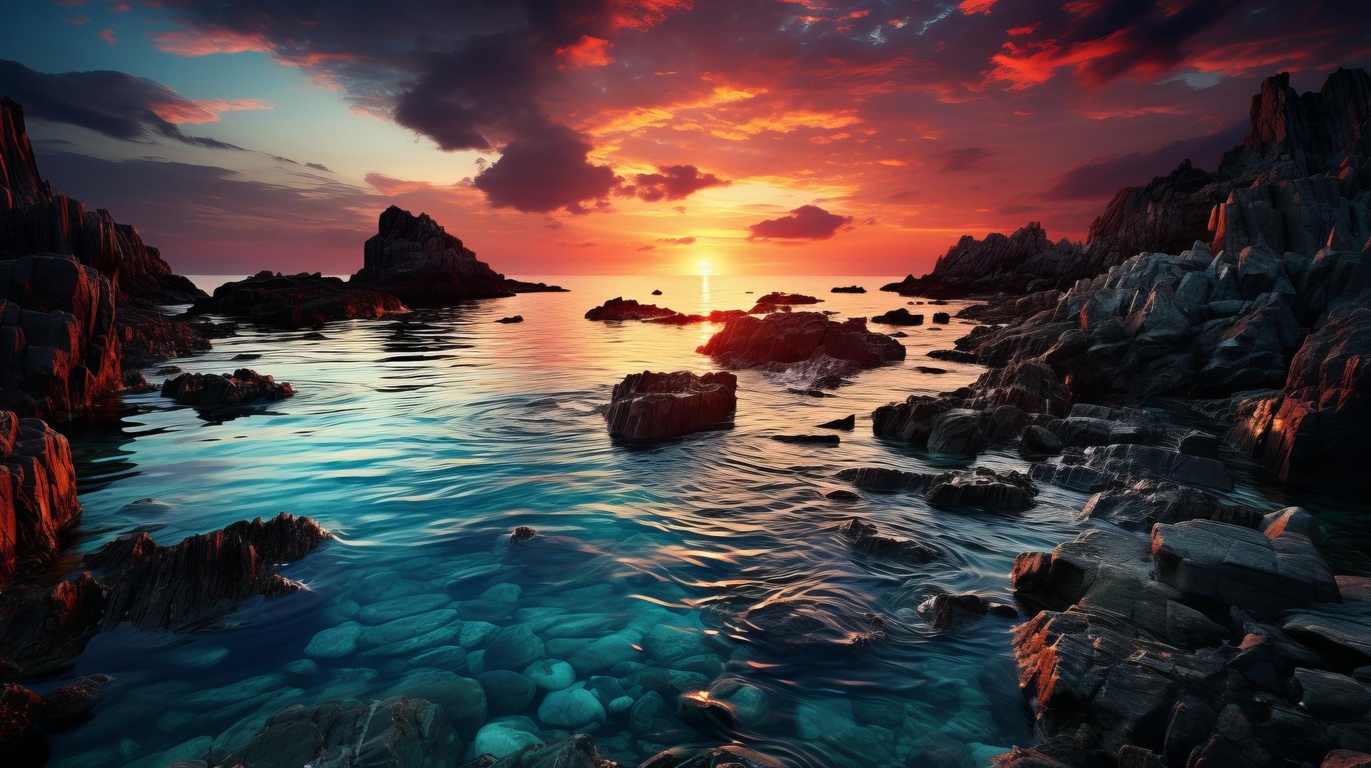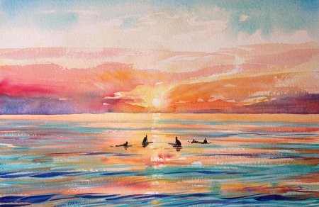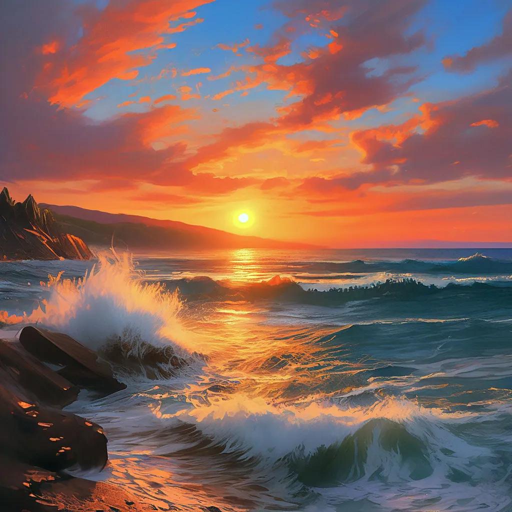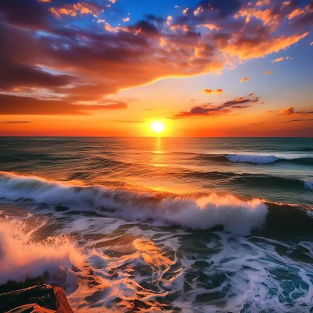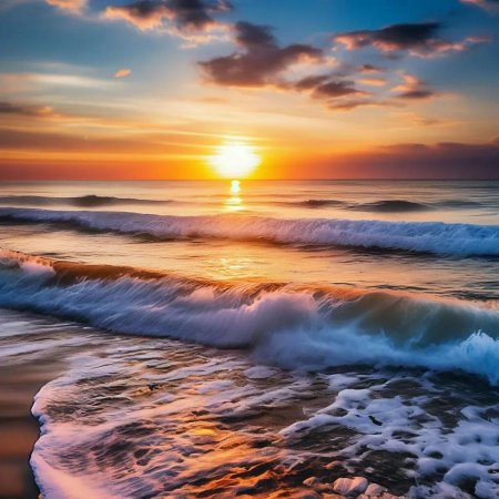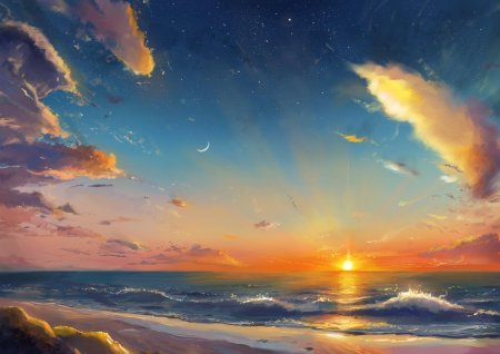 Рассвет на море становится симфонией света, где первые лучи солнца золотят волны, а горизонт оживает новыми красками. Эти иллюстрации передают атмосферу спокойствия: мягкие очертания облаков, спокойная поверхность воды, обещание нового дня. Каждый кадр уникален в своей композиции - то широкие просторы, то интимные детали прибоя. Прекрасный материал для медитаций, создания атмосферы романтики или просто как символ обновления. Детальная проработка световых эффектов и водных текстур делает каждое изображение поэтичным.