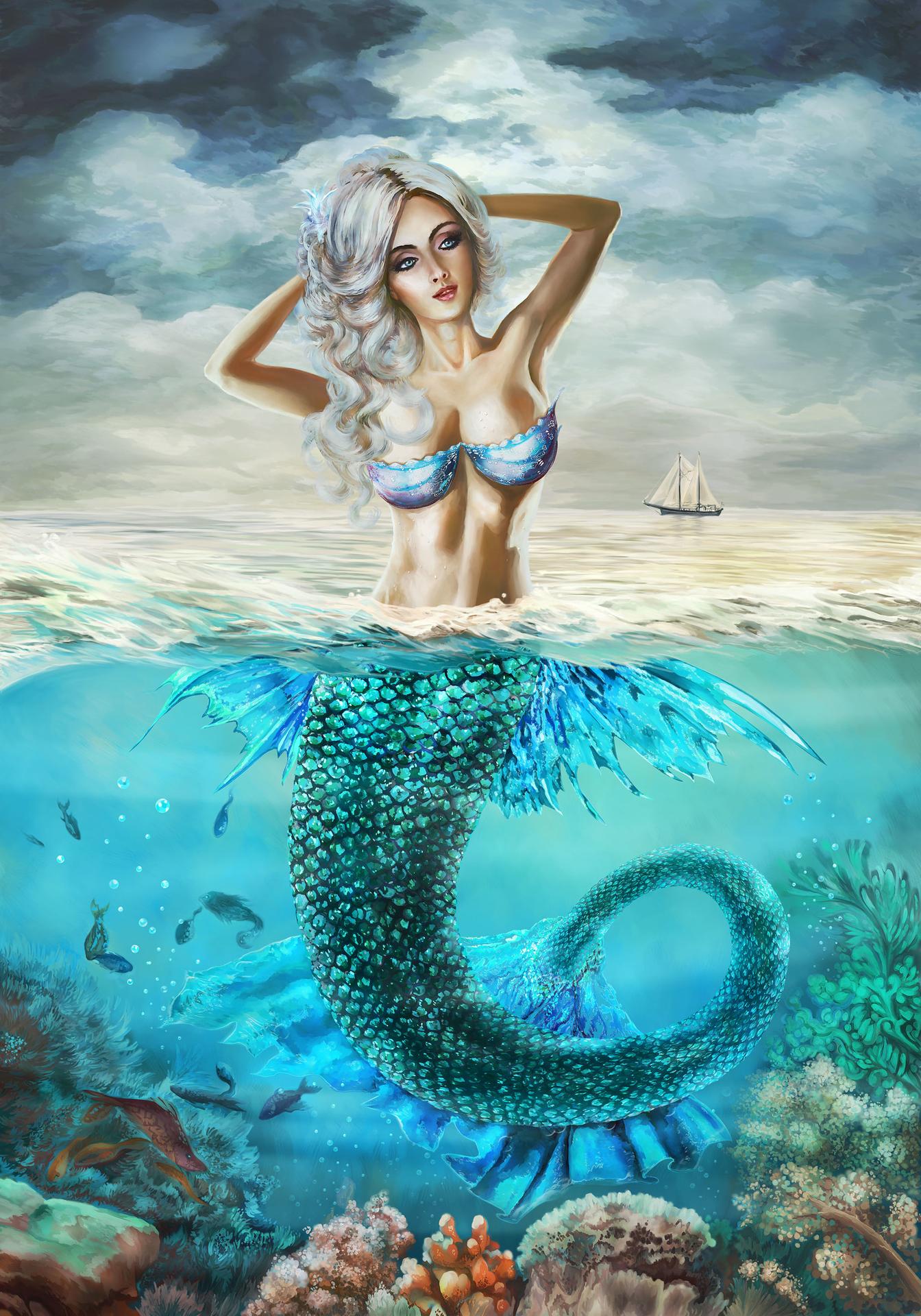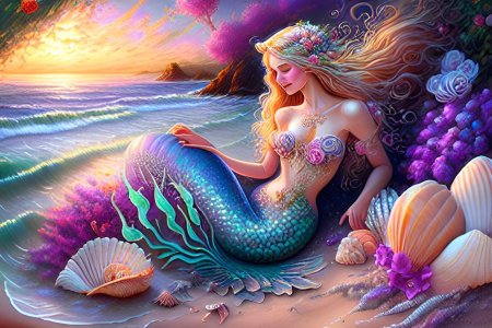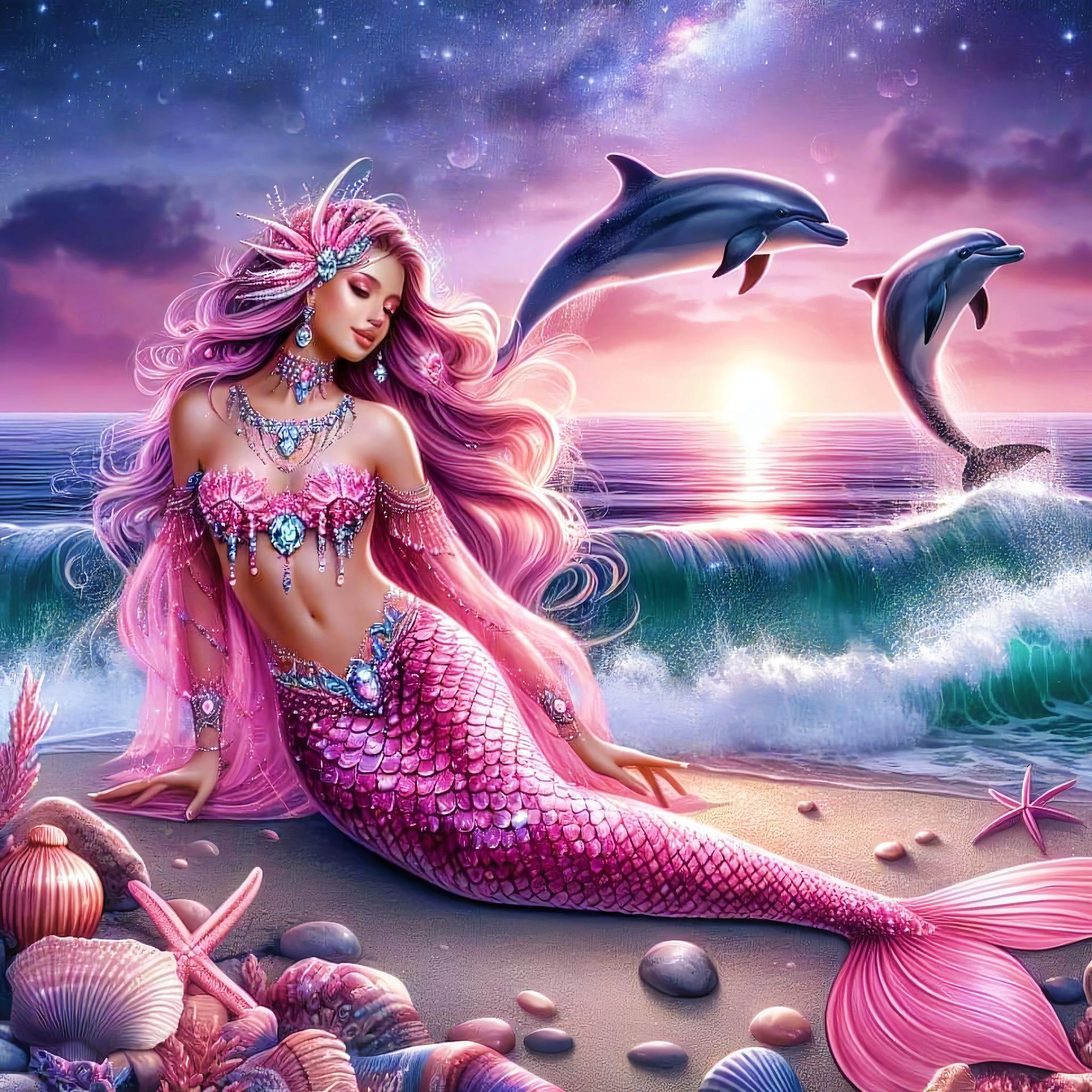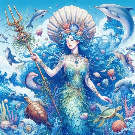 Морская царевна предстает как воплощение океанской романтики, где ее дворец из кораллов и жемчуга скрывает древние сокровища. Эти иллюстрации демонстрируют ее в различных состояниях: от королевского достоинства на троне до игривого танца с дельфинами. Каждый образ несет заряд волшебства, рассказывая о гармонии с водной стихией. Прекрасный материал для детских сказок, создания атмосферы тайны или просто как символ женской силы природы. Детальная проработка хвоста, волос и подводного мира делает каждое изображение сказочным.