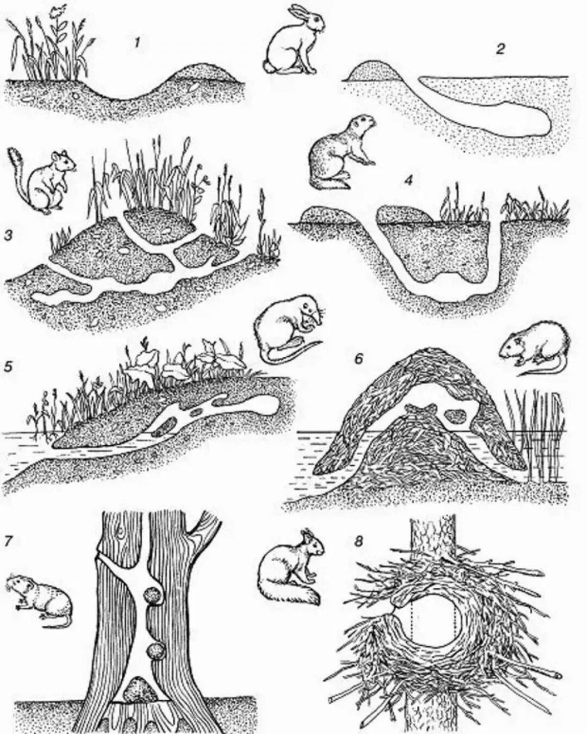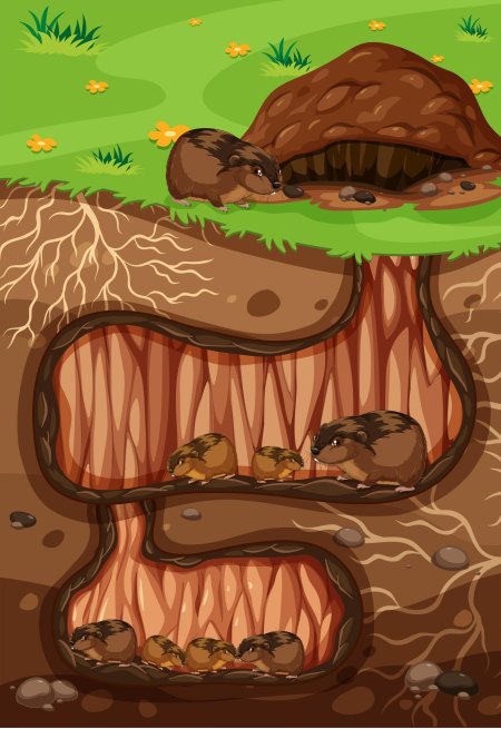 Лисьи норы становятся порталами в мир дикой природы, где хитрость сочетается с заботой о потомстве. Эти иллюстрации показывают разнообразие укрытий: от простых ям под корнями до сложных систем ходов. Каждый кадр передает атмосферу тайны - листья у входа, следы лап, мягкая земля. Прекрасный материал для изучения экологии, создания сказочных историй или просто как символ природной мудрости. Детальная проработка текстур почвы, растительности и следов делает каждое изображение информативным.
