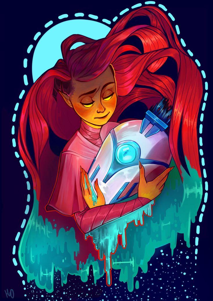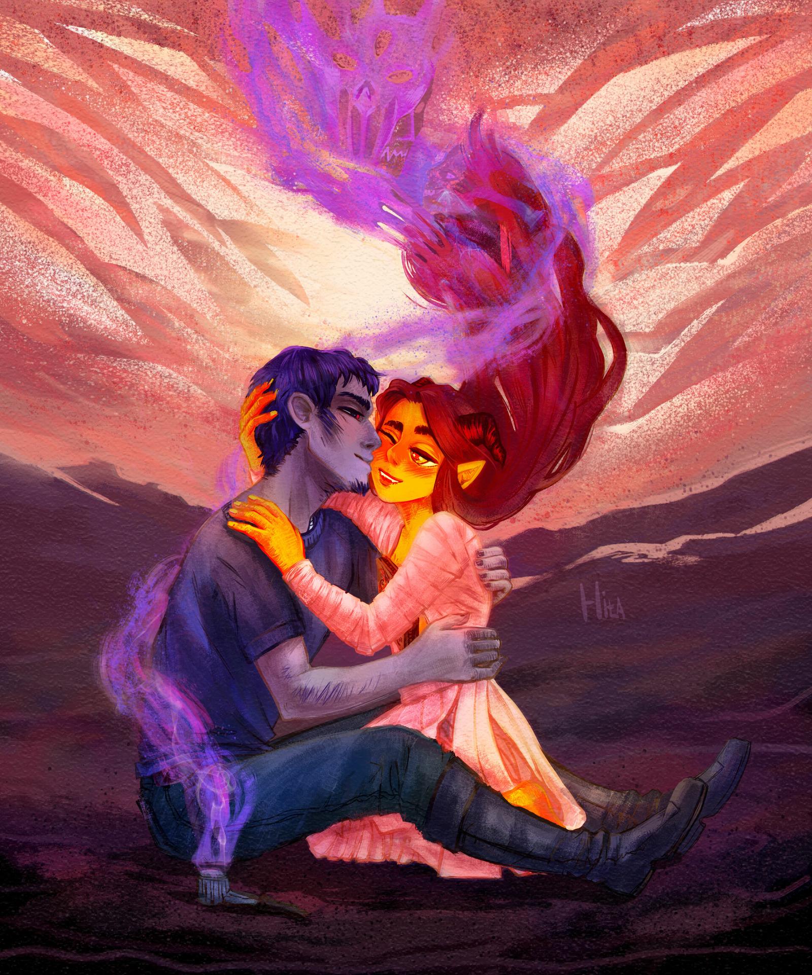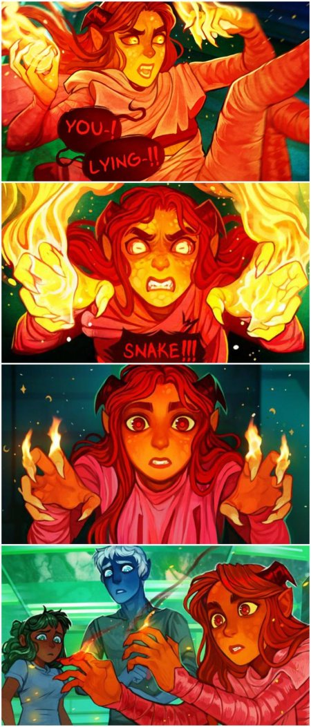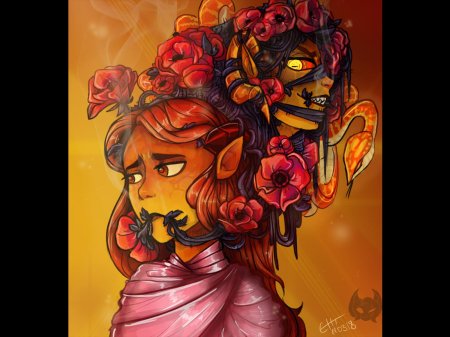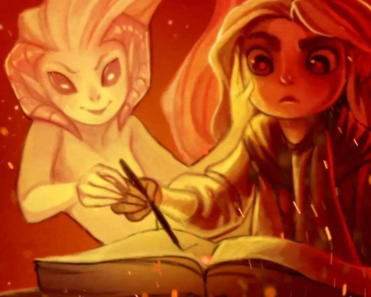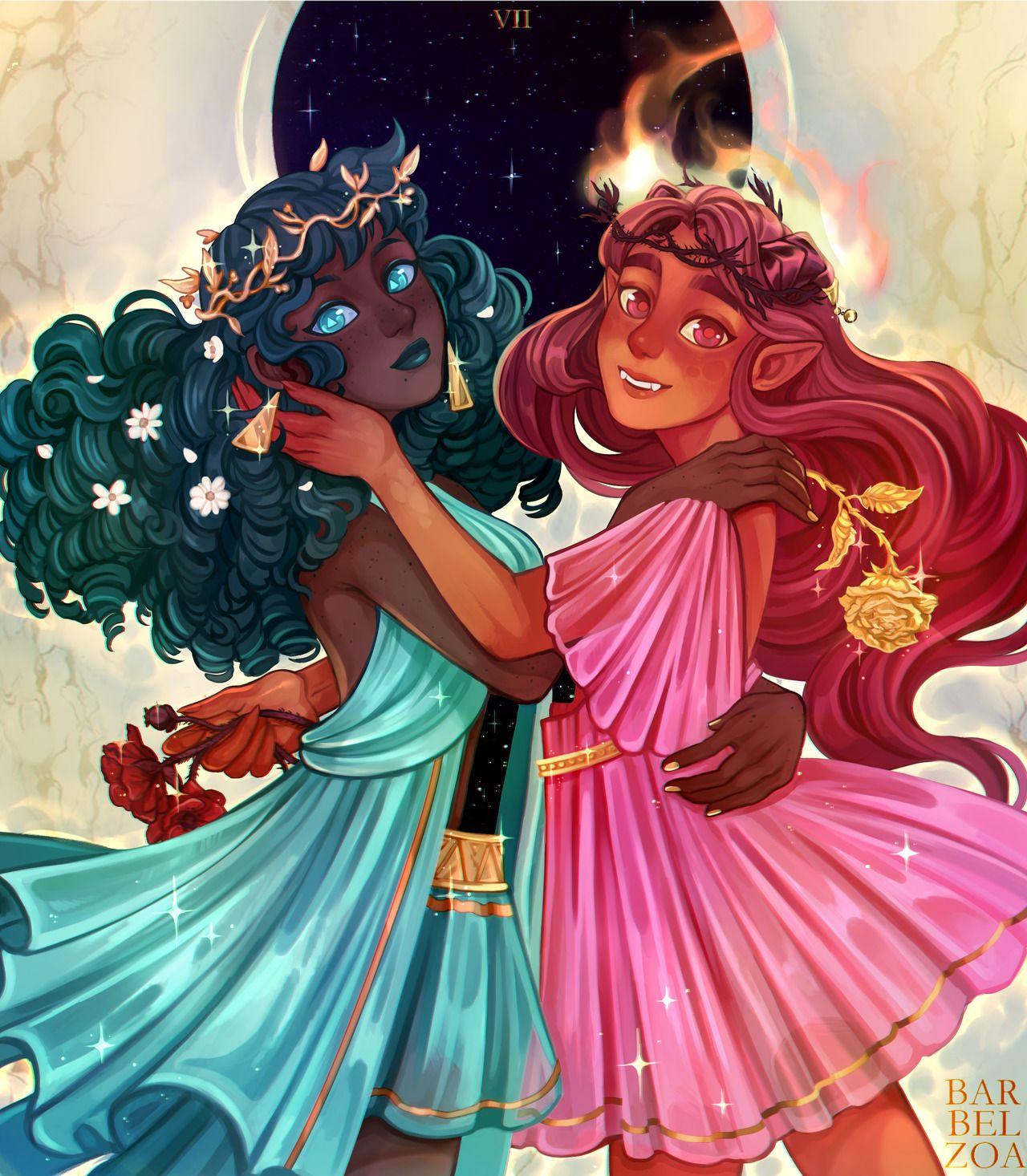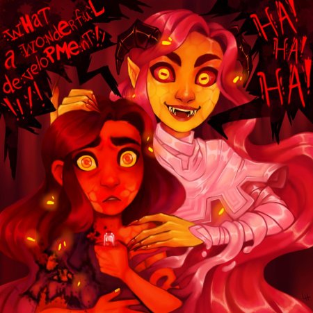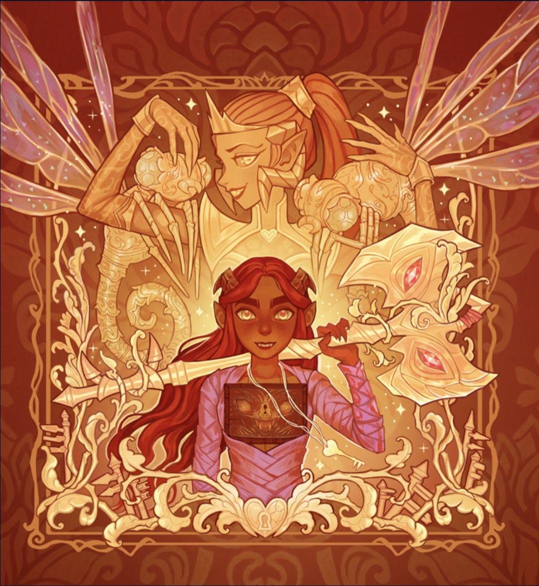 История Авы и её демона - исследование темы двойственности души. Эти иллюстрации показывают их взаимодействие: от напряженных моментов до моментов единения. Художники используют контраст, чтобы передать конфликт. Каждая сцена рассказывает о внутренней борьбе между светом и тьмой.