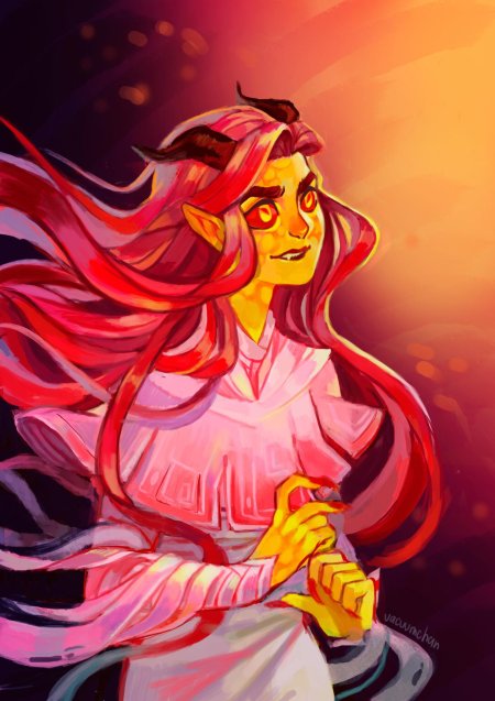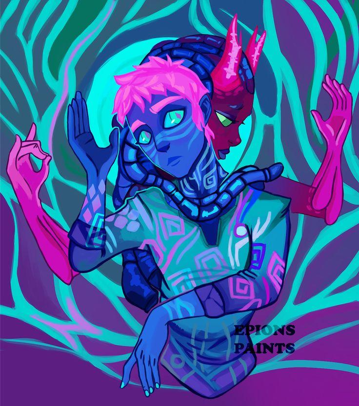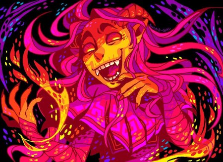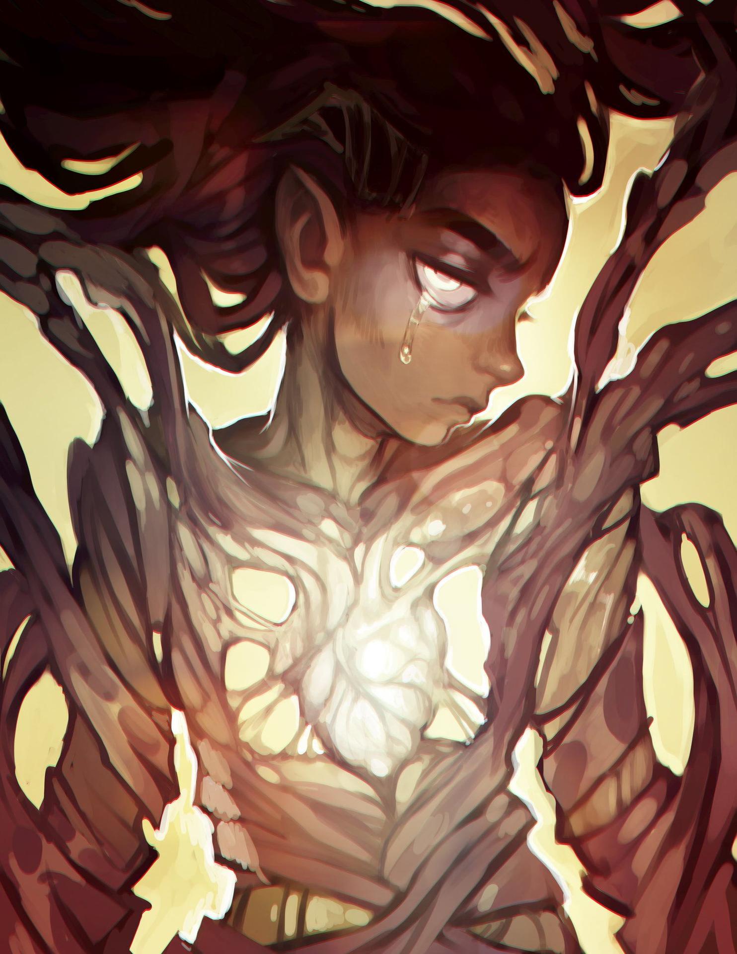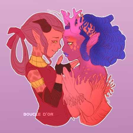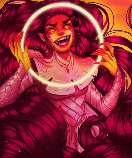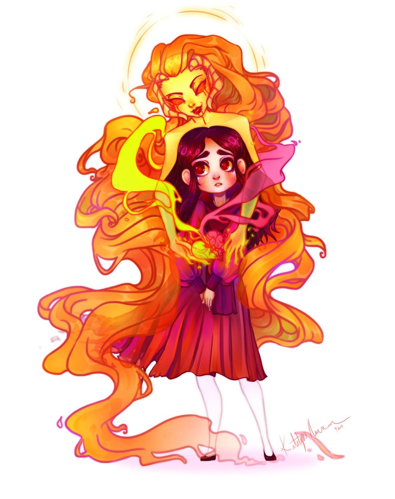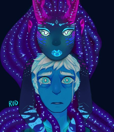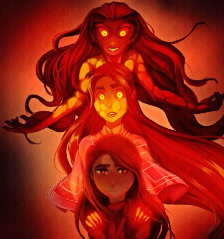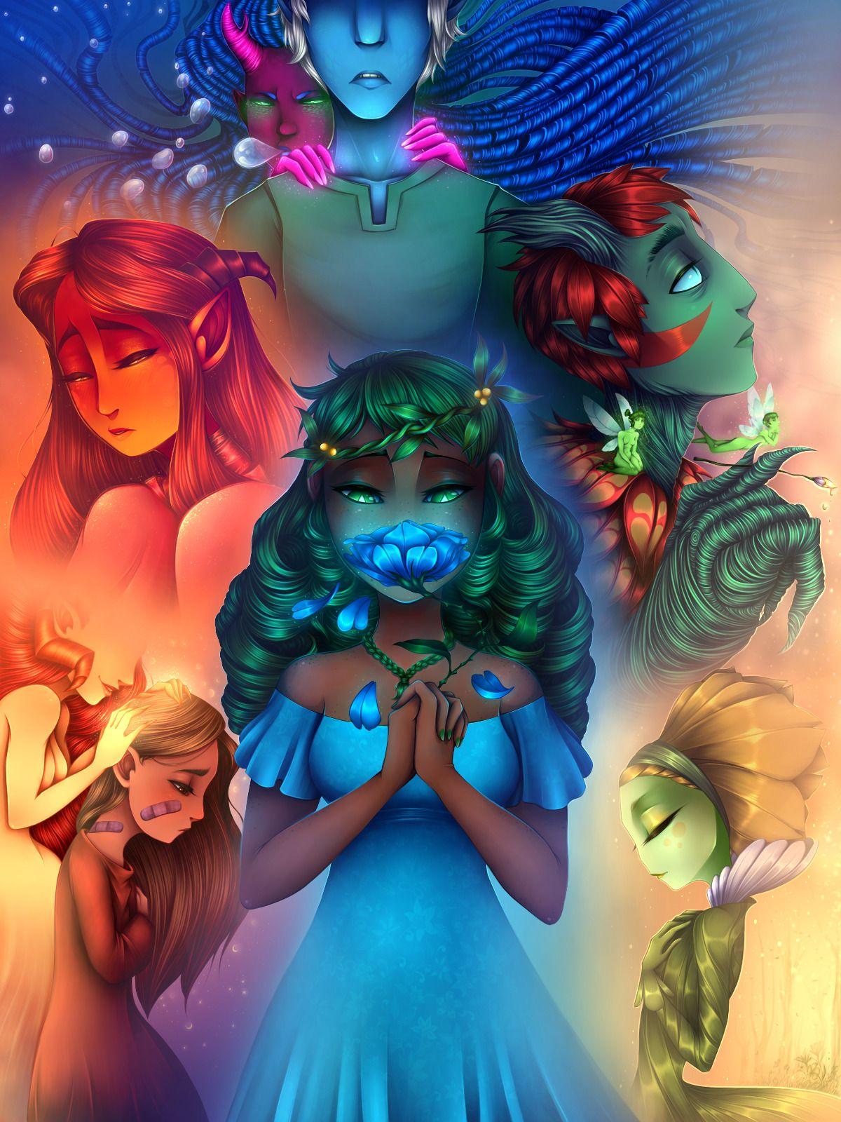 История Авы и её демона - исследование темы двойственности души. Эти иллюстрации показывают их взаимодействие: от напряженных моментов до моментов единения. Художники используют контраст, чтобы передать конфликт. Каждая сцена рассказывает о внутренней борьбе между светом и тьмой.