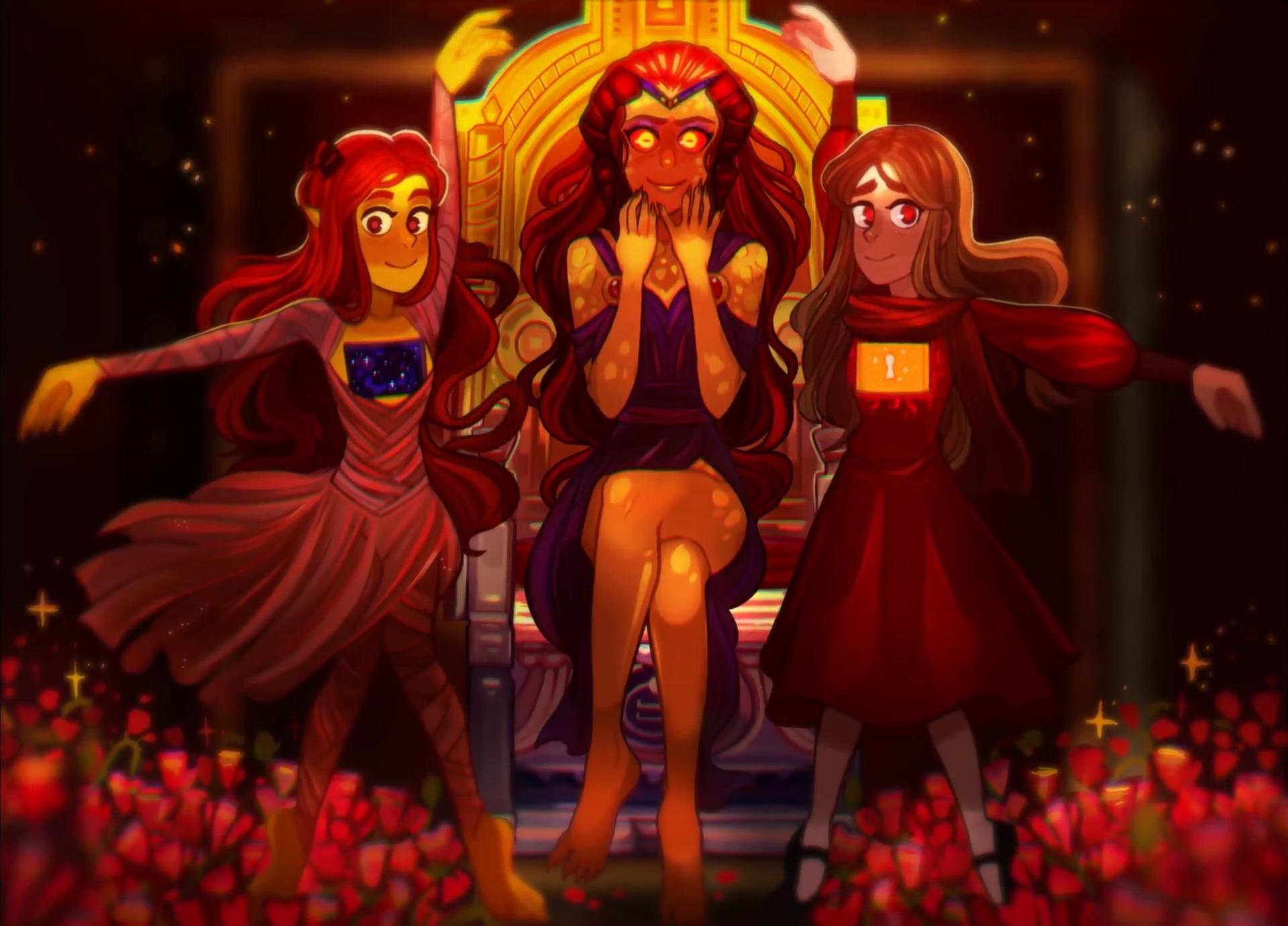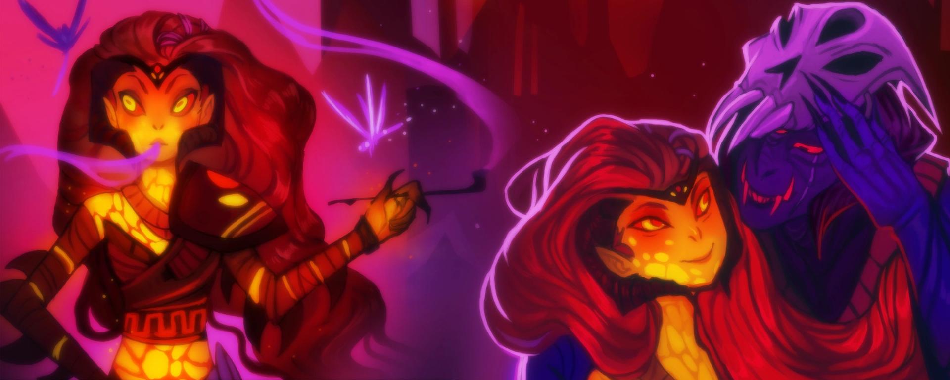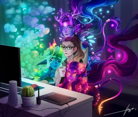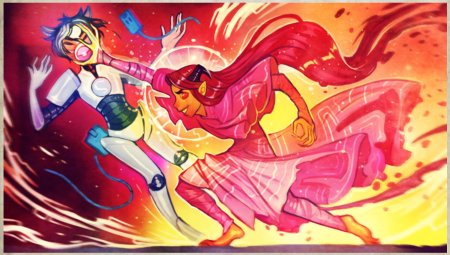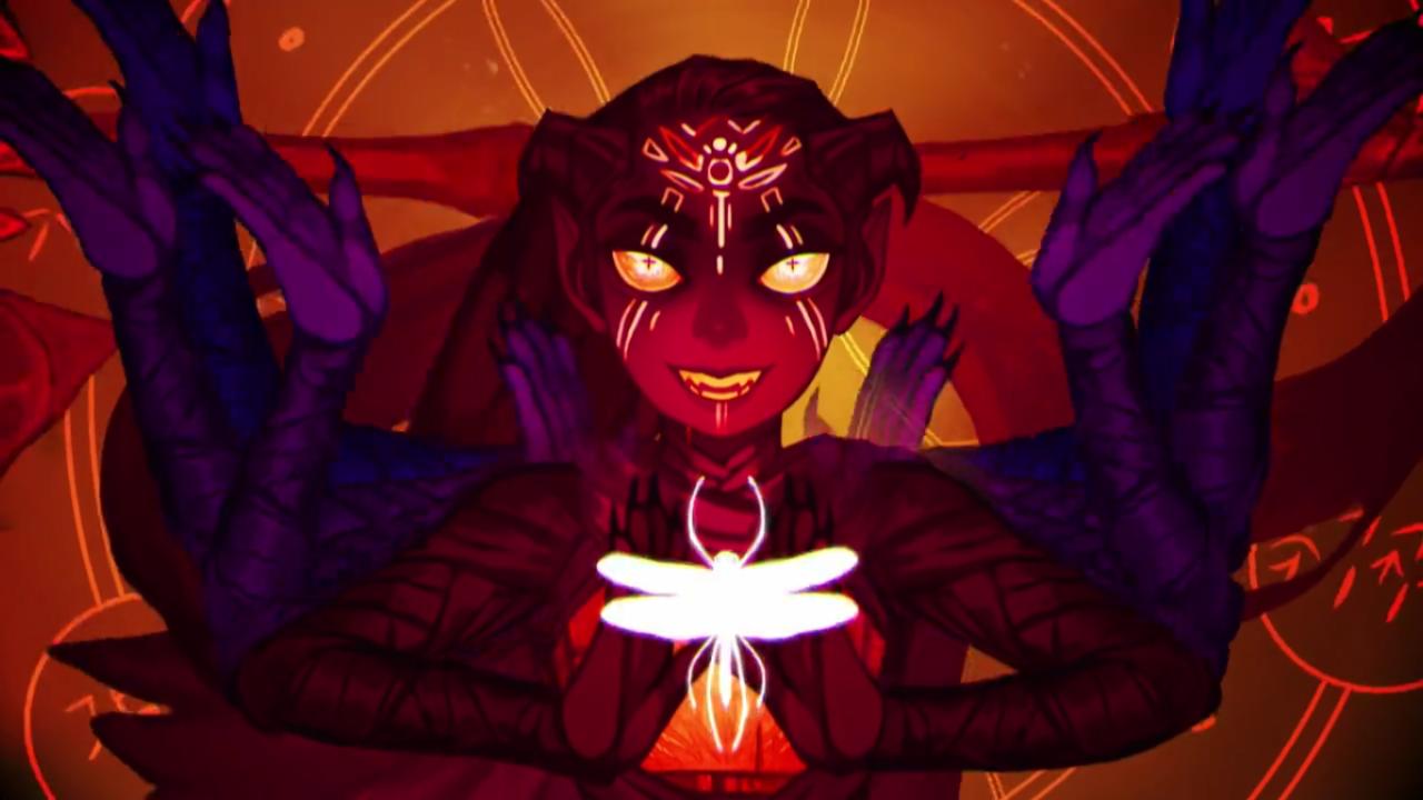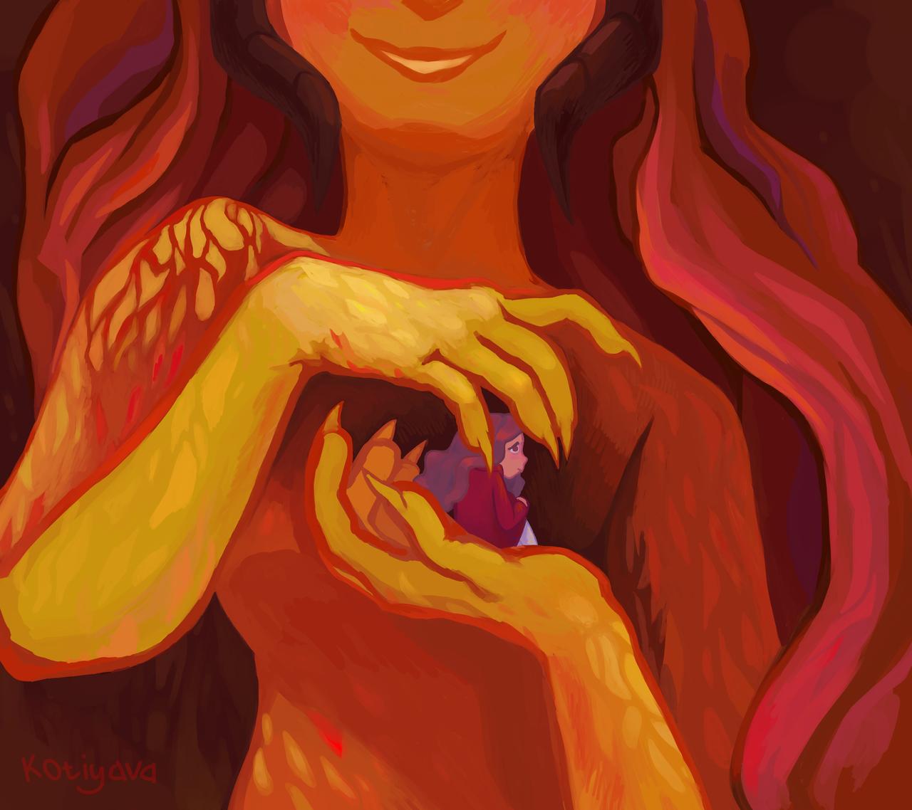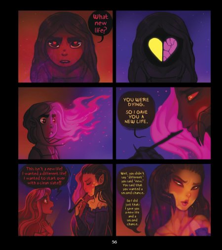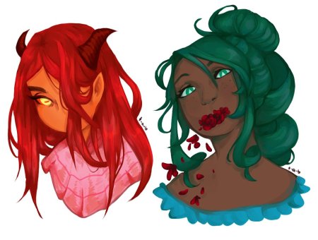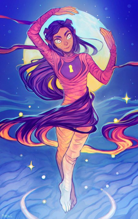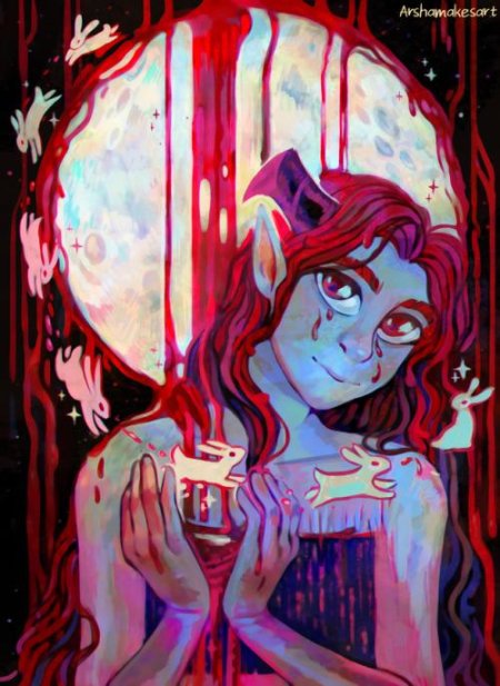 История Авы и её демона - исследование темы двойственности души. Эти иллюстрации показывают их взаимодействие: от напряженных моментов до моментов единения. Художники используют контраст, чтобы передать конфликт. Каждая сцена рассказывает о внутренней борьбе между светом и тьмой.