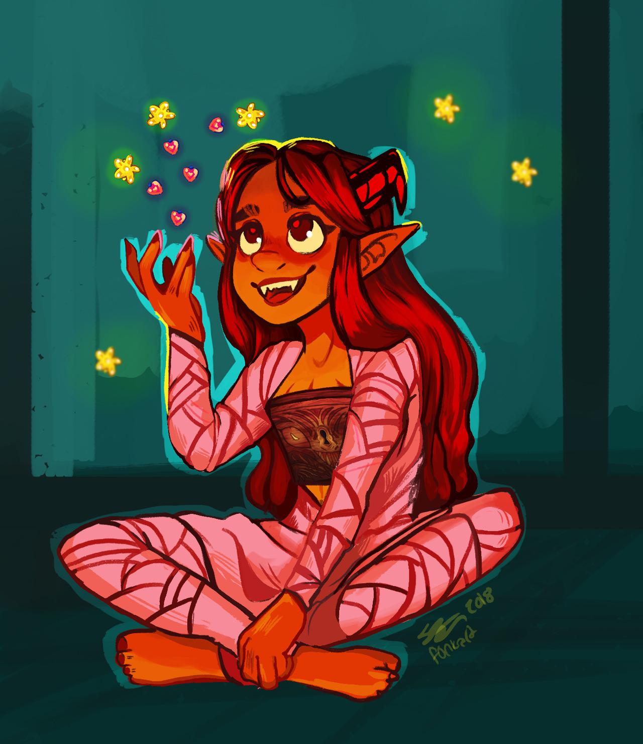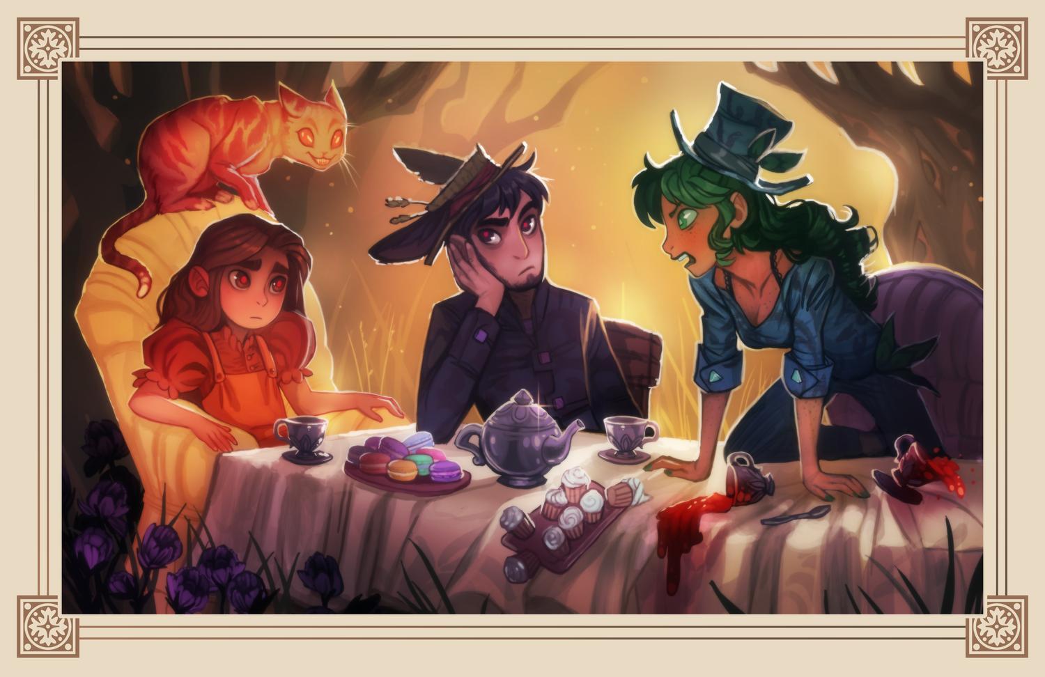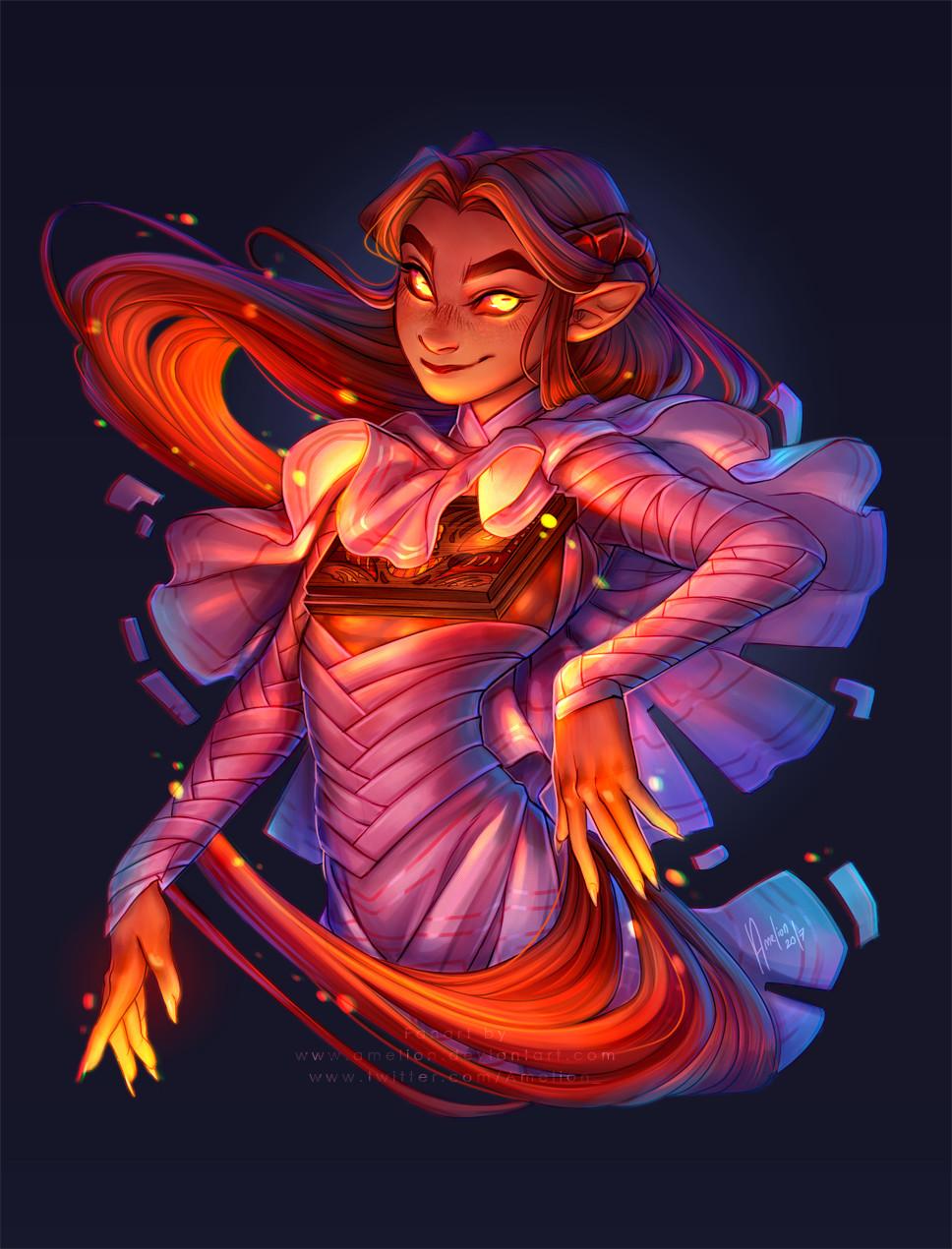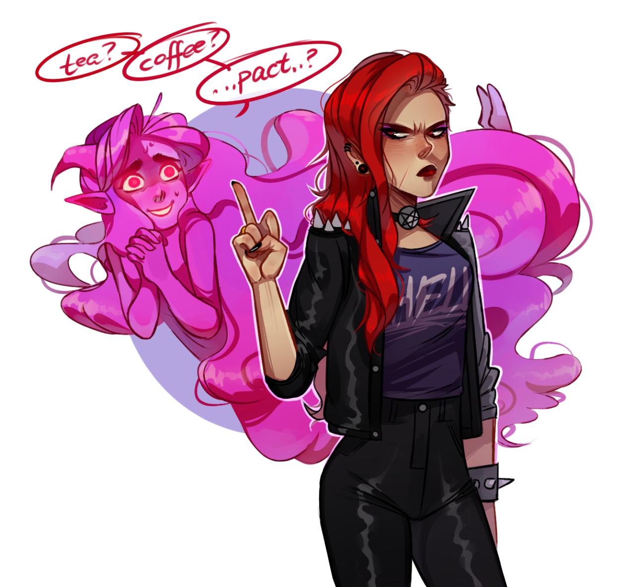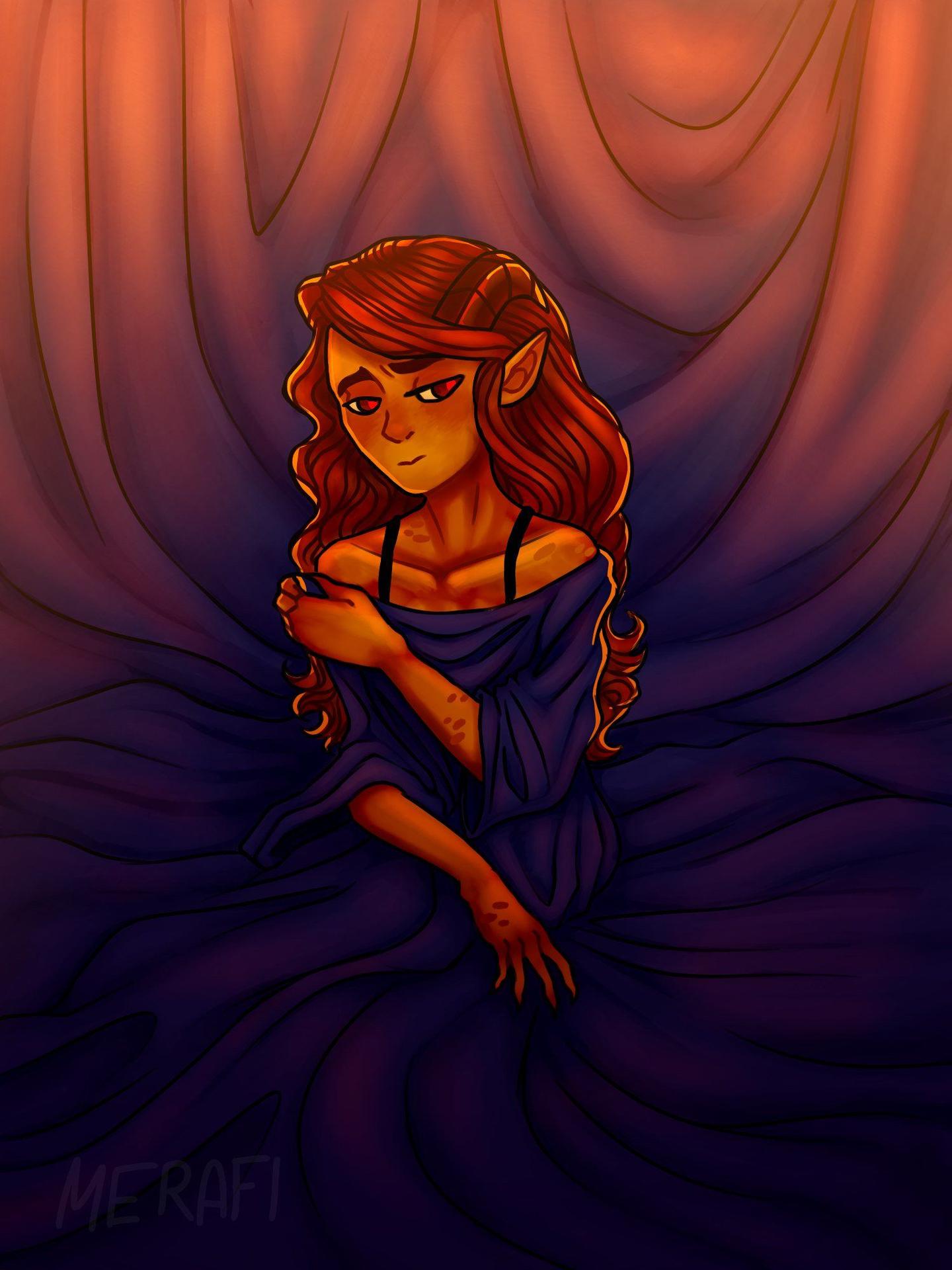 История Авы и её демона - исследование темы двойственности души. Эти иллюстрации показывают их взаимодействие: от напряженных моментов до моментов единения. Художники используют контраст, чтобы передать конфликт. Каждая сцена рассказывает о внутренней борьбе между светом и тьмой.