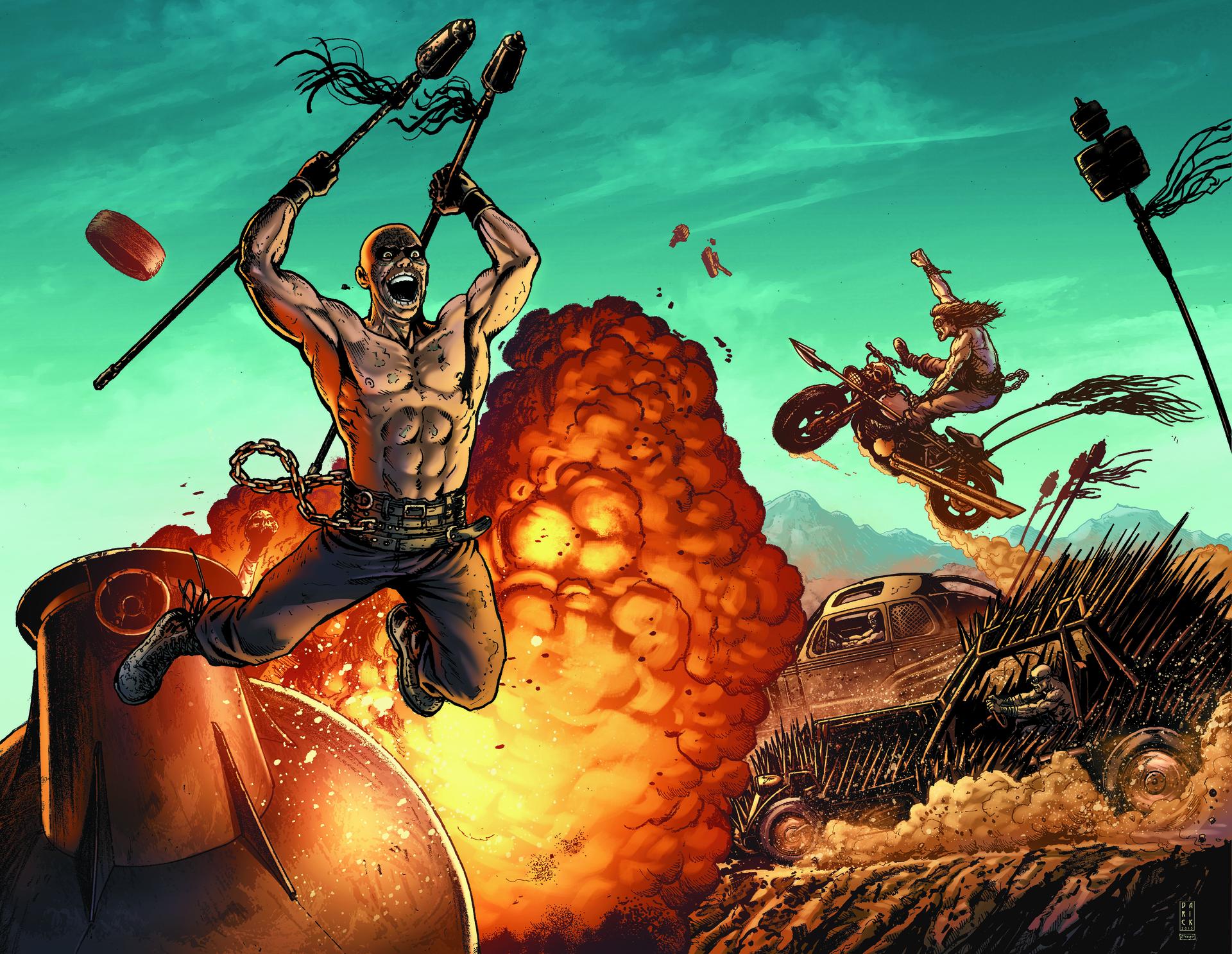 Дорога ярости в исполнении Мэда Макса - это симфония скорости, безумия и выживания. Эти иллюстрации воплощают хаос постапокалиптических гонок: бронированные машины, вооруженные воины и бесконечные пески. Художники используют яркие цвета и динамичные композиции, чтобы передать адреналин и опасность каждого поворота. Каждая сцена - это история о борьбе за ресурсы, где автомобиль становится оружием, щитом и средством передвижения в мире, где цивилизация пала.