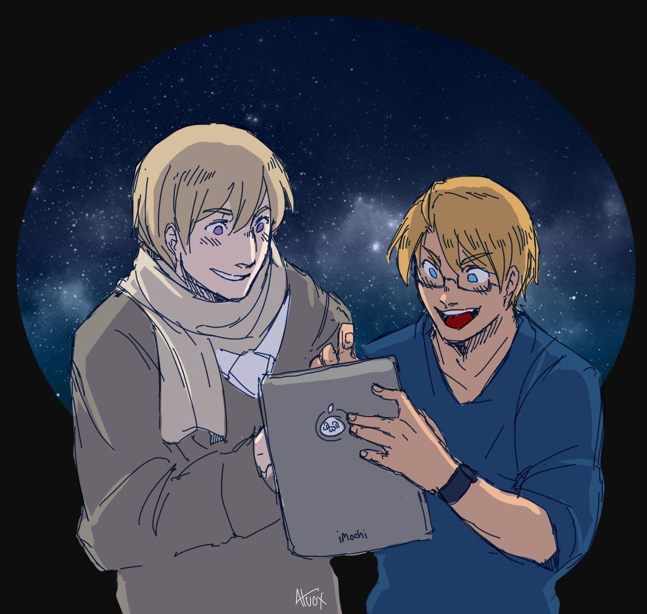 В мире Hetalia Америка предстает как воплощение стереотипов о США - энергичный, уверенный в себе парень с бургером в руке и суперменским плащом. Эти иллюстрации мастерски передают его характер: от патриотических речей до моментов ленивого отдыха. Художники используют яркие цвета и динамичные позы, чтобы показать неиссякаемую энергию и оптимизм героя. Каждая картинка - это комиксная страница, полная юмора и сатиры на американскую культуру.