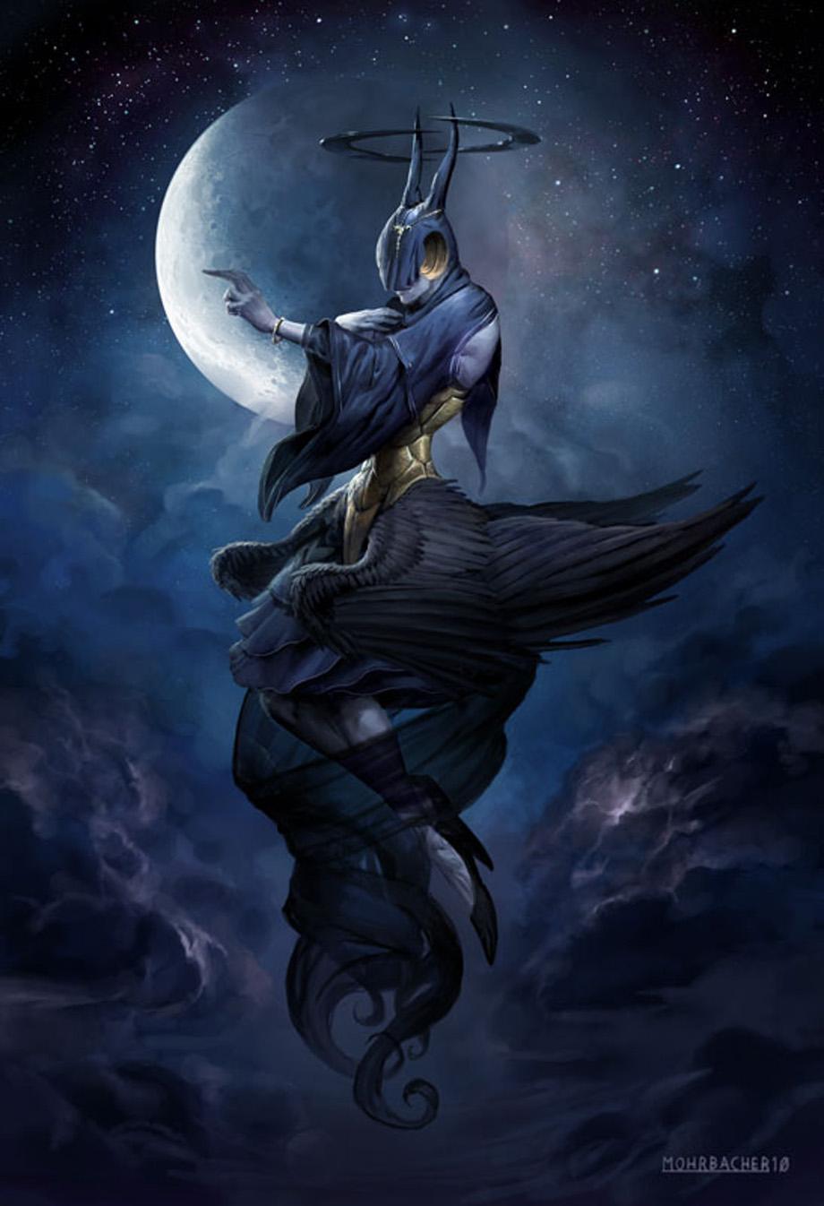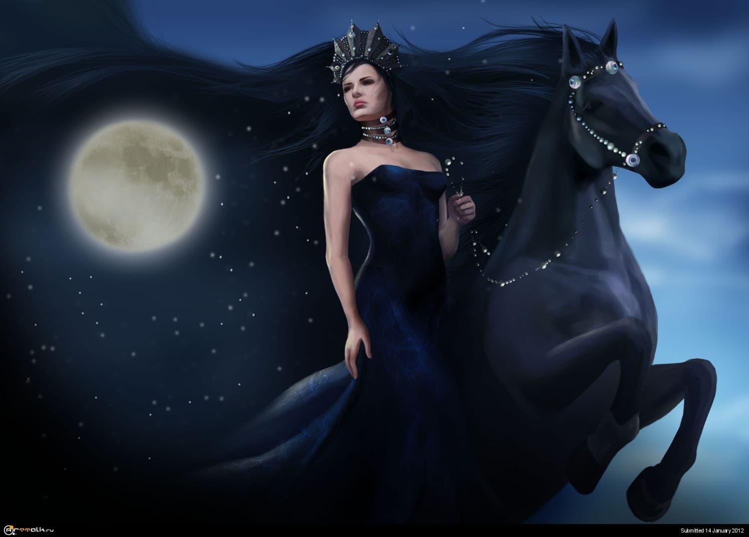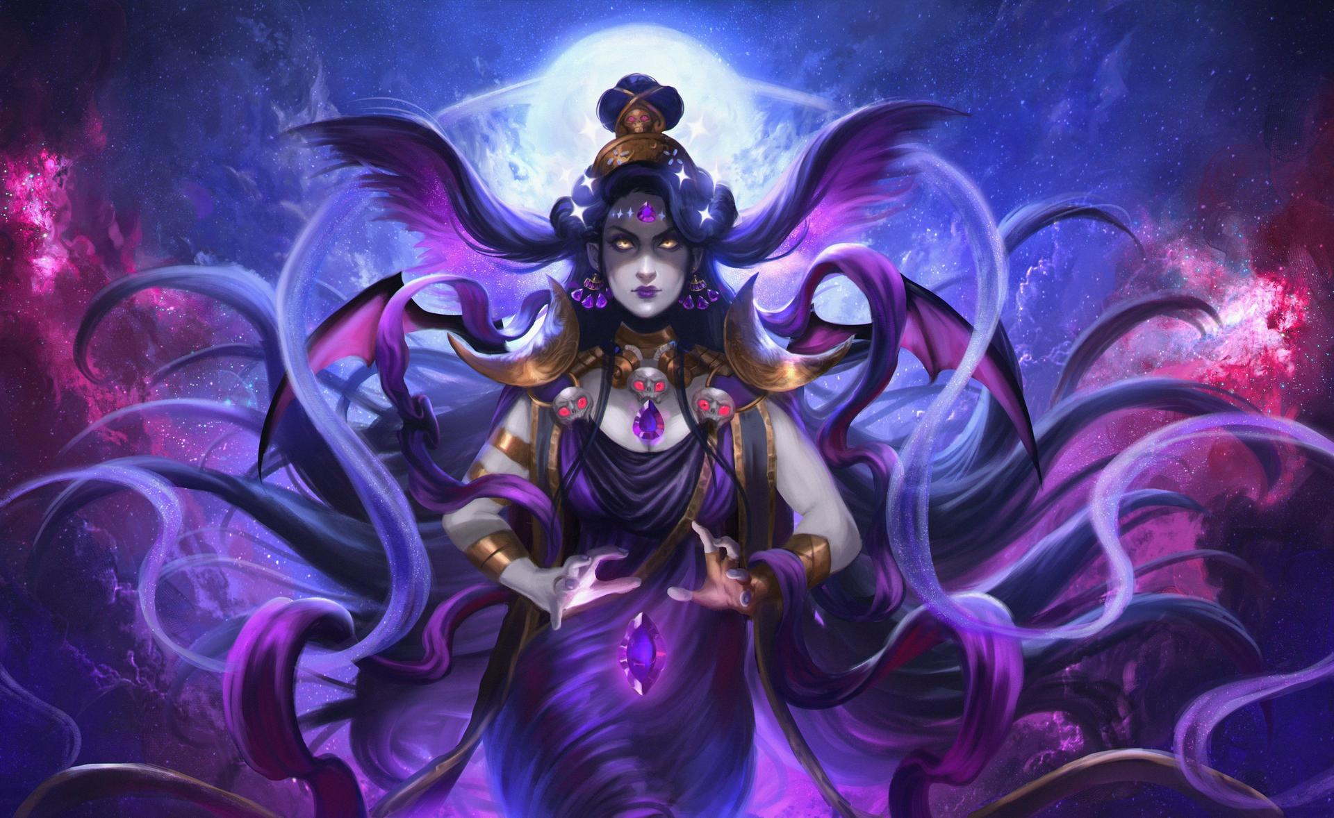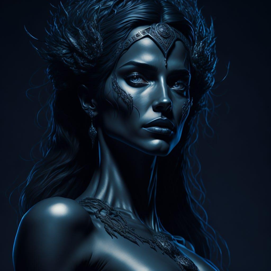 Никс - древнегреческая богиня ночи, мать всех снов и тайн, воплощающая одновременно покой и неизведанные глубины. В этих иллюстрациях она показана в различных ипостасях - от величественной богини до таинственной ночной странницы. Художники используют темную палитру - глубокие синие, фиолетовые, черные тона, - и звездные элементы. Особенно впечатляют сцены с ее детьми - Гипносом, Танатосом, Морфеем, - и взаимодействием с лунным светом. Каждая иллюстрация передает атмосферу ночной магии и уважение к темным аспектам жизни.