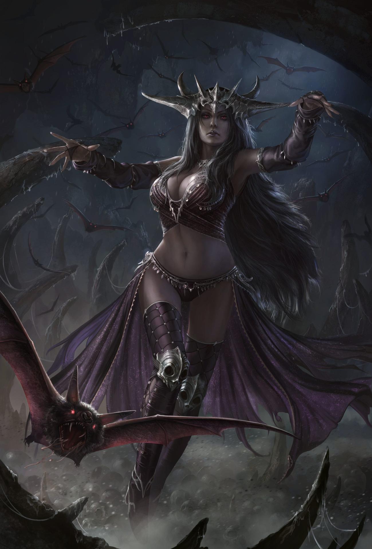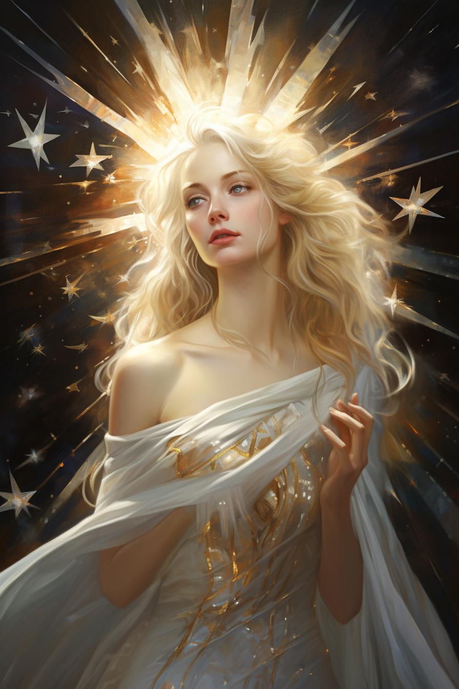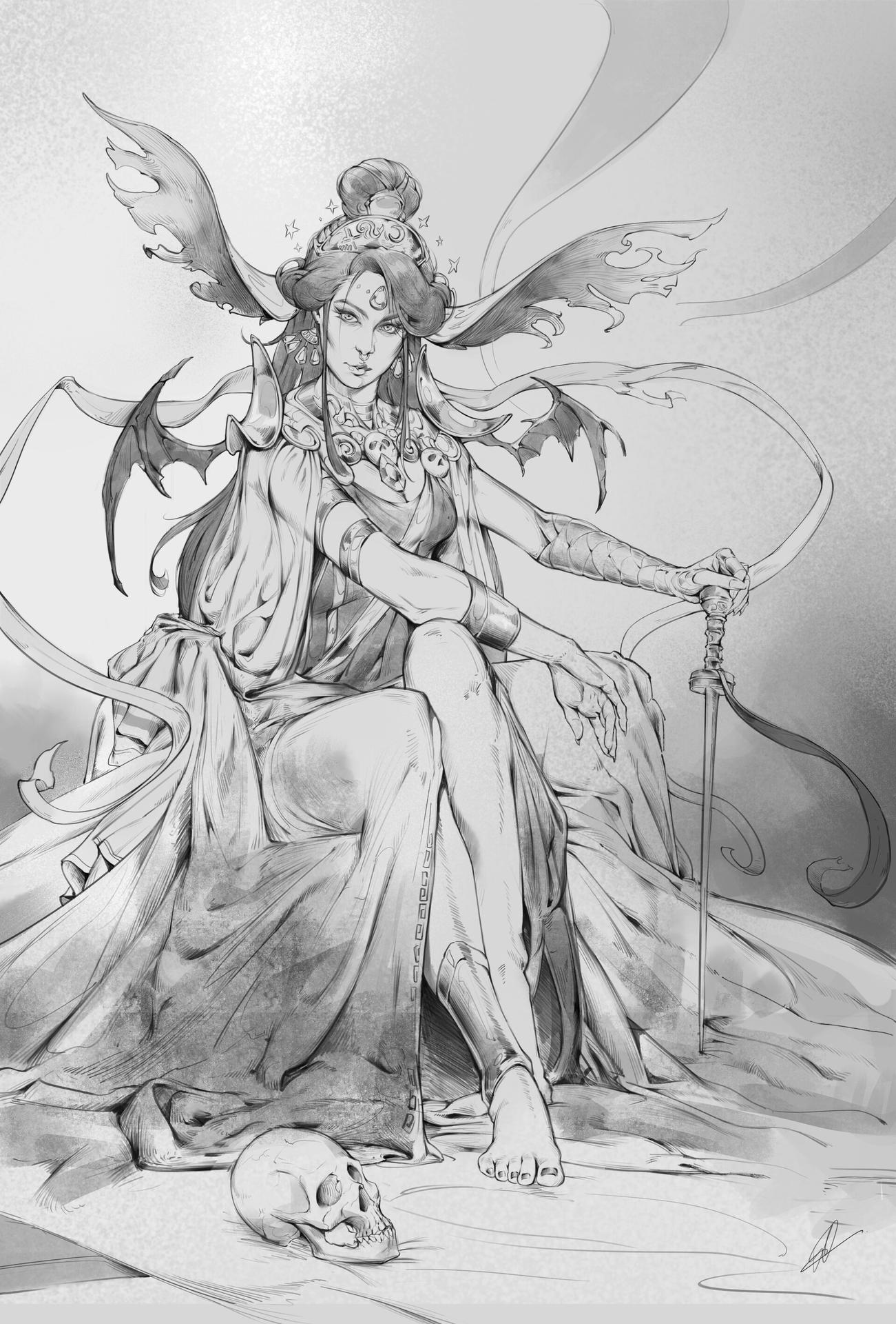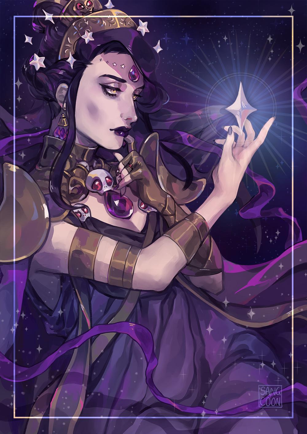 Никс - древнегреческая богиня ночи, мать всех снов и тайн, воплощающая одновременно покой и неизведанные глубины. В этих иллюстрациях она показана в различных ипостасях - от величественной богини до таинственной ночной странницы. Художники используют темную палитру - глубокие синие, фиолетовые, черные тона, - и звездные элементы. Особенно впечатляют сцены с ее детьми - Гипносом, Танатосом, Морфеем, - и взаимодействием с лунным светом. Каждая иллюстрация передает атмосферу ночной магии и уважение к темным аспектам жизни.