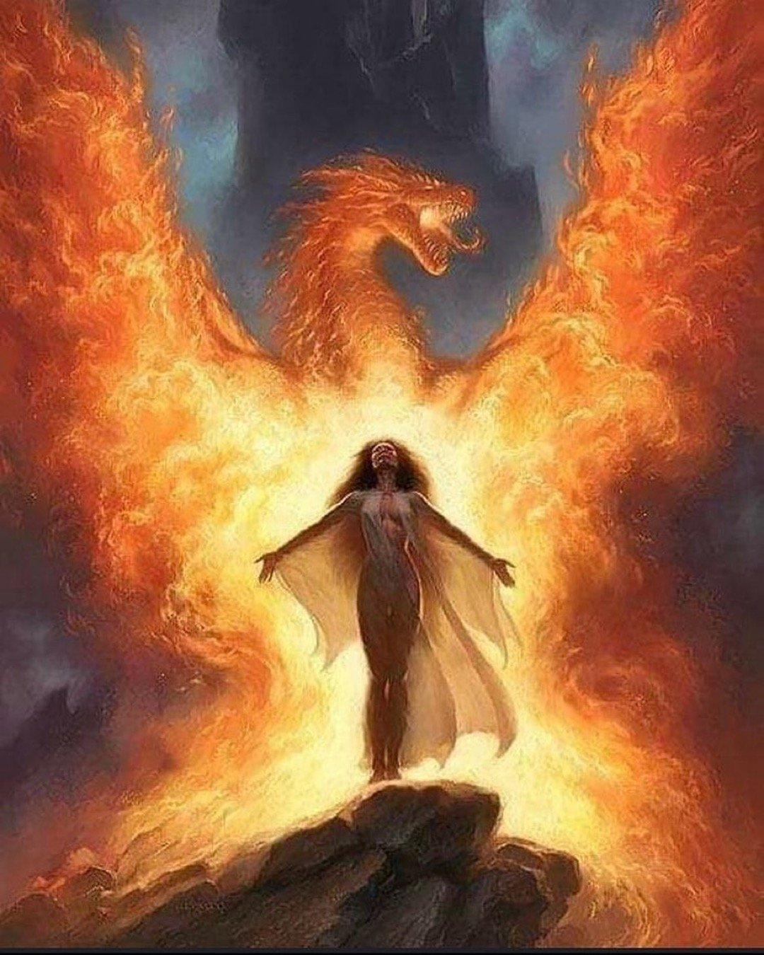 Огненная птица в художественных изображениях символизирует вечный цикл жизни, смерти и возрождения. Иллюстрации показывают величественное существо с распростертыми крыльями, тело которого состоит из живого пламени, а перья переливаются всеми оттенками огня - от золотистого до глубокого алого. Арты передают динамику полета, где за птицей тянется шлейф искр и дыма, символизирующий очищение и трансформацию. Каждый штрих иллюстрации несет глубокий философский смысл: огонь как разрушитель старого и созидатель нового, птица как мост между мирами. Художники мастерски сочетают реализм перьев с абстрактными огненными потоками, создавая образы, которые одновременно завораживают и внушают благоговение перед мощью природы и ее циклическими процессами.