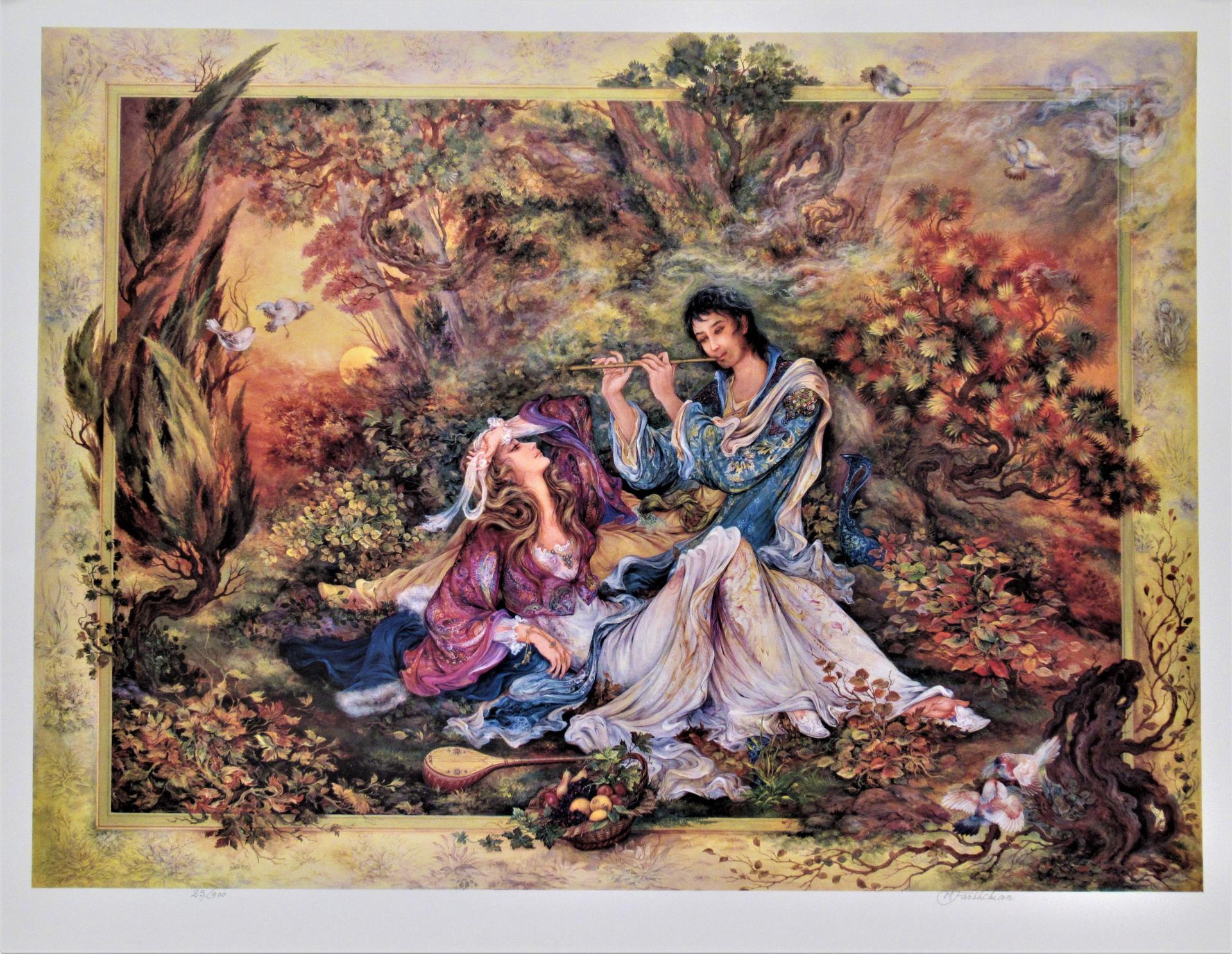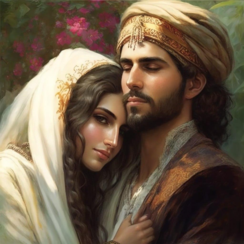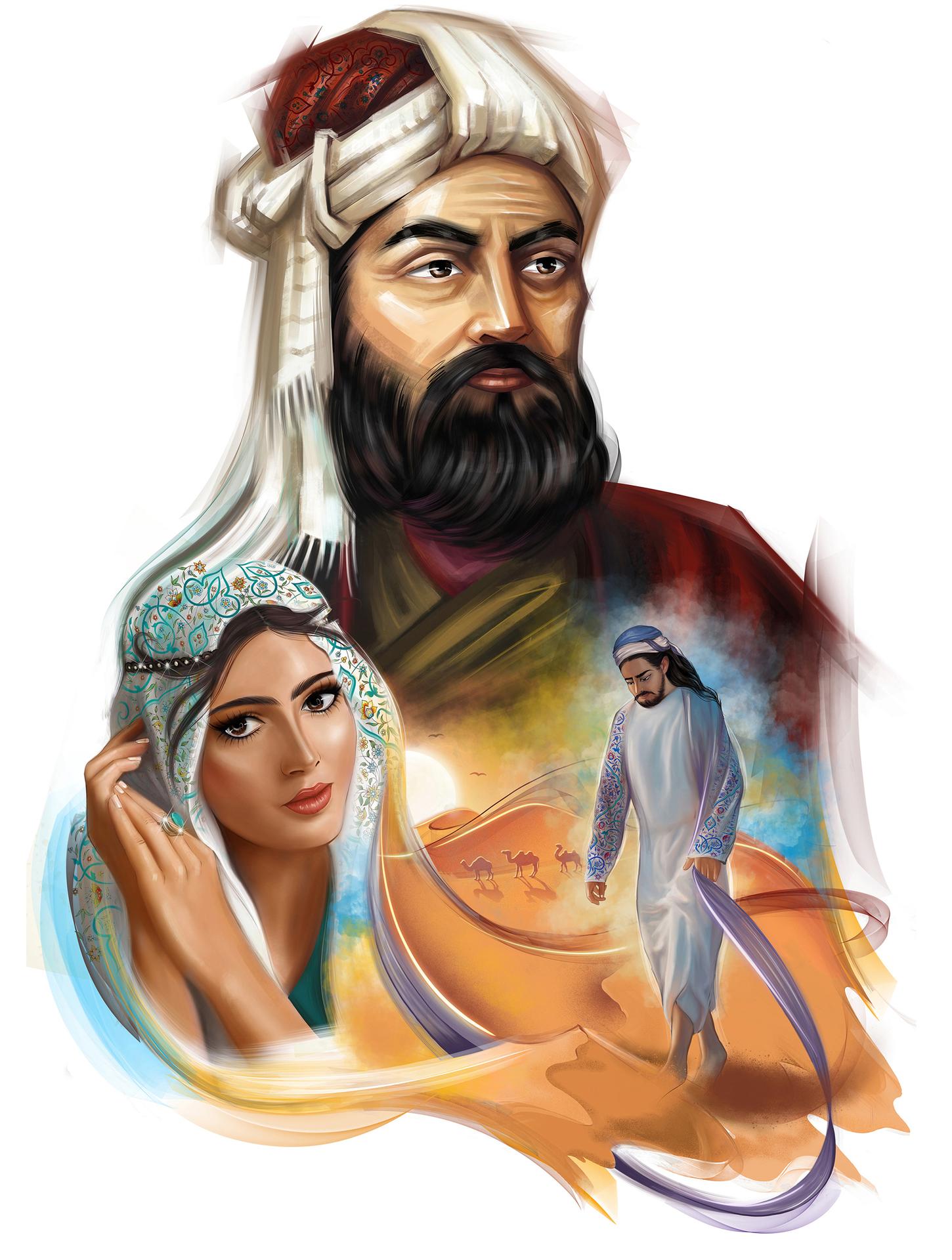 Лейли и Меджнун воплощают в себе вечную историю трагической любви. Эти иллюстрации показывают влюбленных в восточном антураже: богатые одежды, пустынные пейзажи, мистическая атмосфера. Каждая работа тщательно продумана - от выражения эмоций на лицах до деталей восточного декора. Художники передают разные грани любви: страсть, нежность, отчаяние. Коллекция включает различные сцены из легенды - от первой встречи до трагической разлуки, каждая иллюстрация дышит поэзией и глубиной восточной культуры.