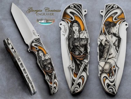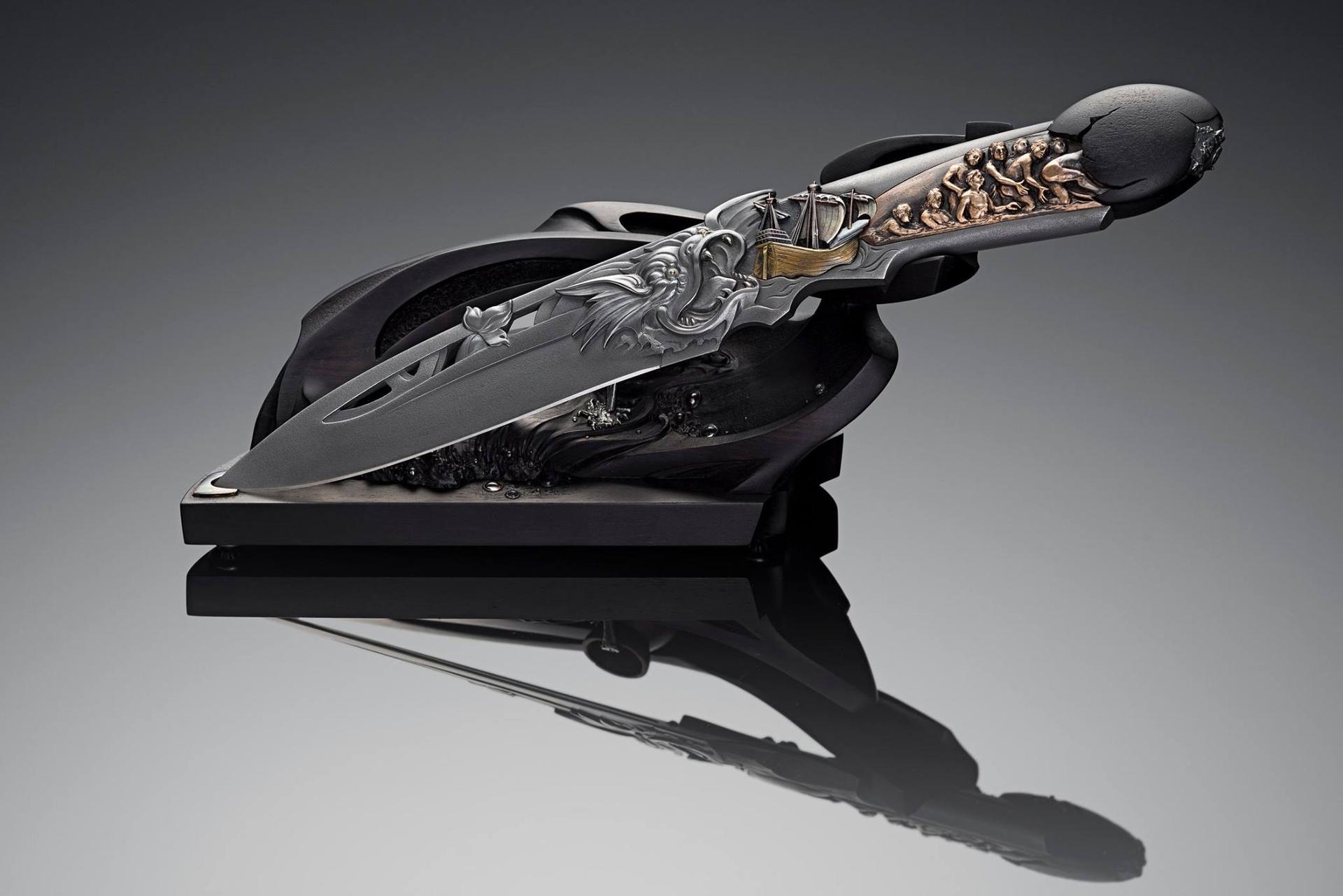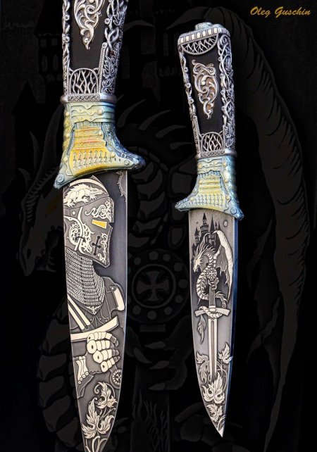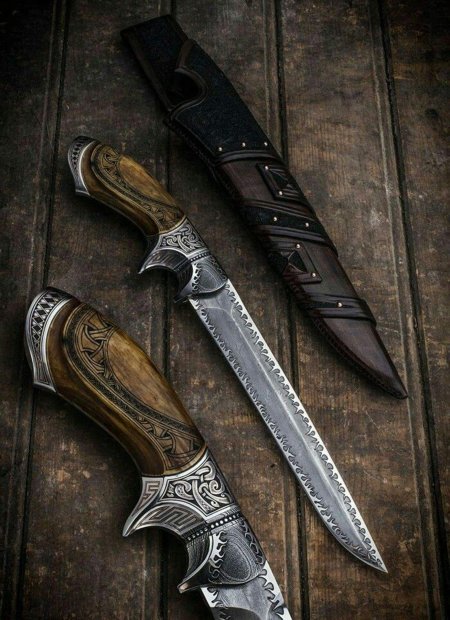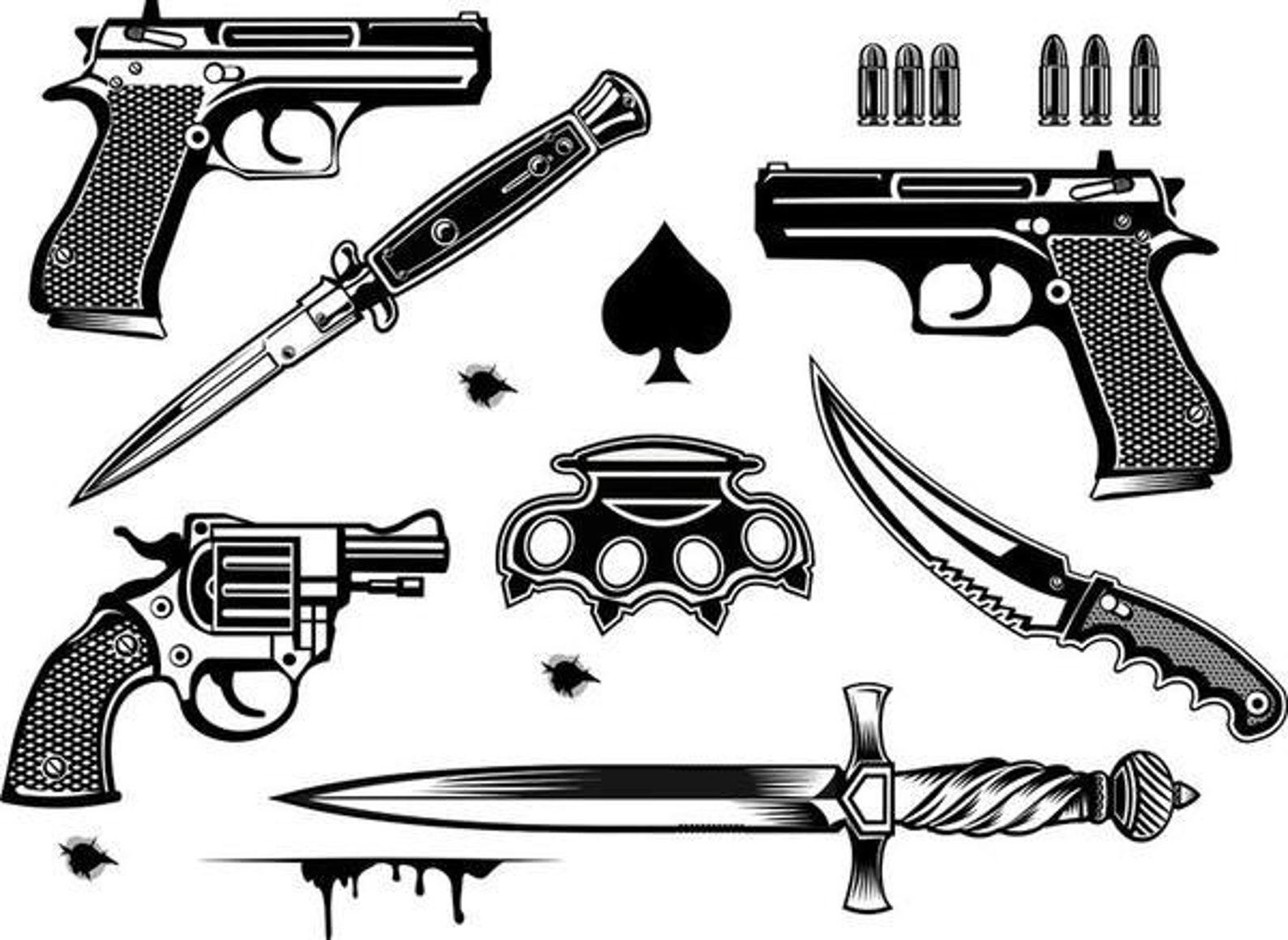 Пистолет-нож представляет собой необычное сочетание огнестрельного и холодного оружия. Эти иллюстрации показывают сложные конструкции, где ствол пистолета плавно переходит в острое лезвие. Каждая работа тщательно продумана - от баланса веса до эргономики рукоятки. Художники мастерски передают функциональность и дизайн: блеск металла, текстура кожи рукоятки, динамика раскрытия лезвия. Коллекция включает различные модели и эпохи, каждая из которых рассказывает о инженерном искусстве и тактических преимуществах такого оружия.