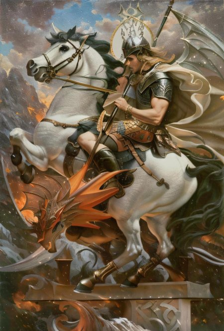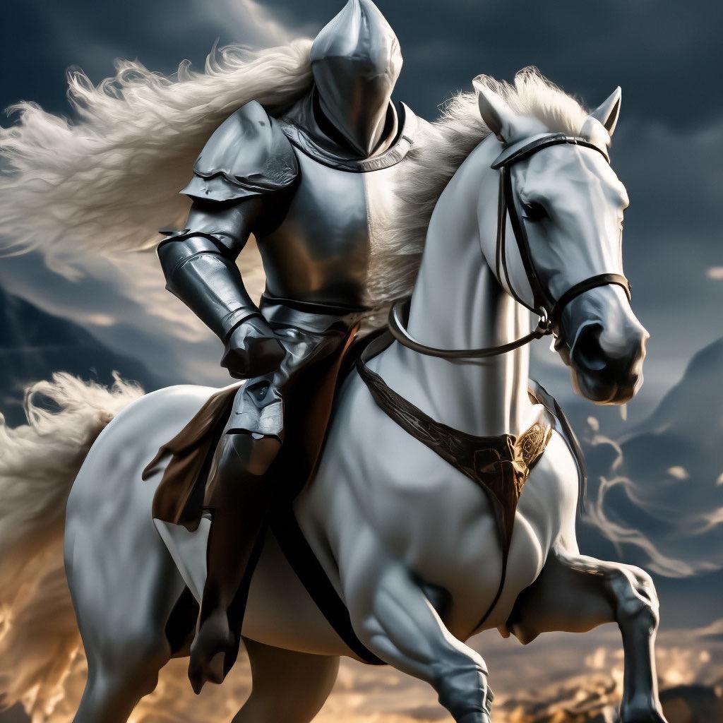 Рыцарь на белом коне воплощает в себе идеалы средневекового рыцарства и благородства. Эти иллюстрации показывают статных всадников в сияющих доспехах, с копьями наперевес и гордыми позами. Каждая работа тщательно продумана - от текстуры металла и кожи до развевающихся плюмажей на шлемах. Художники мастерски передают атмосферу средневековья: замки на горизонте, гербы на щитах, романтическая дымка. Коллекция включает различные сцены - от турниров до одиноких странствий, каждая иллюстрация дышит духом рыцарских баллад и непоколебимой чести.