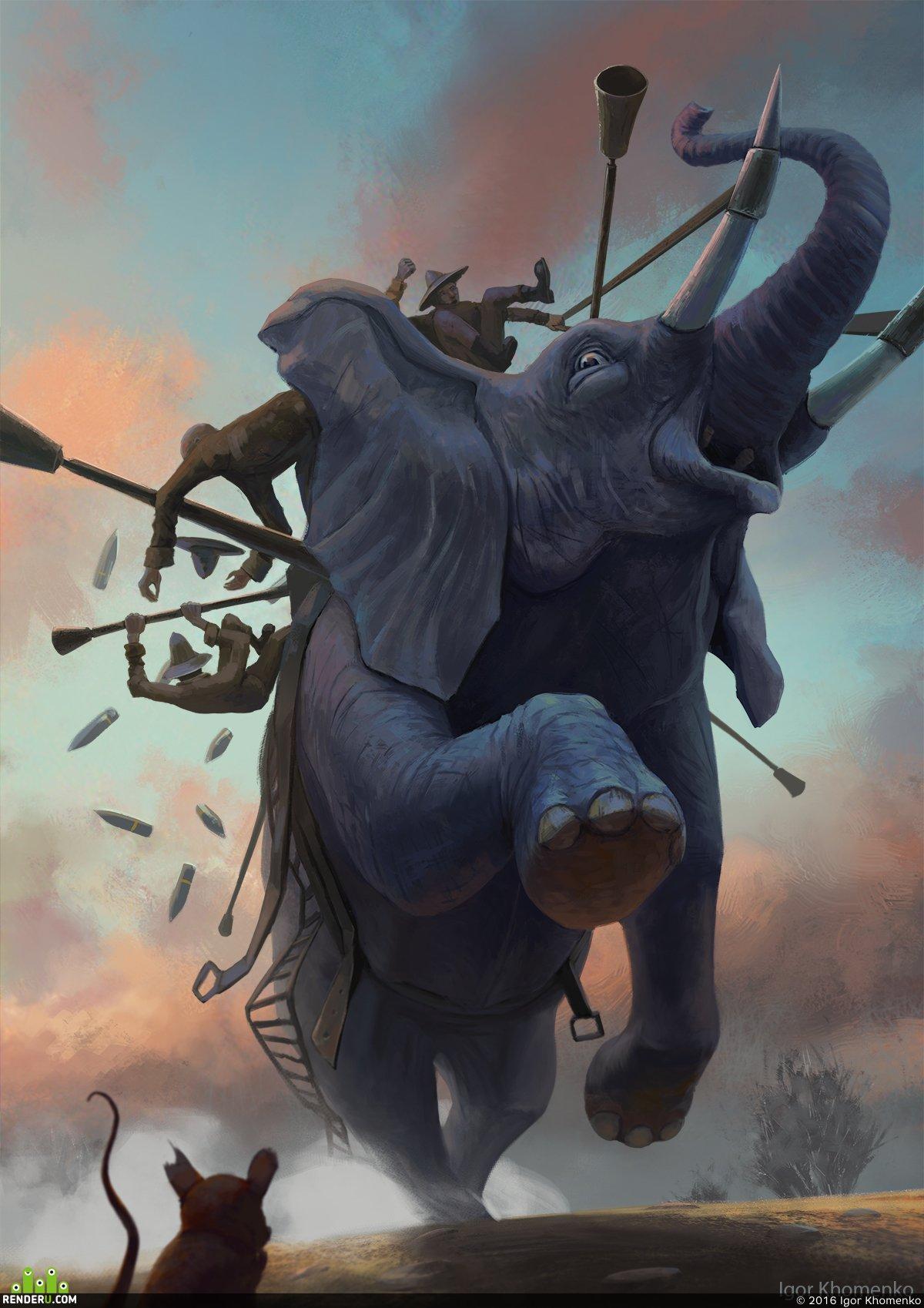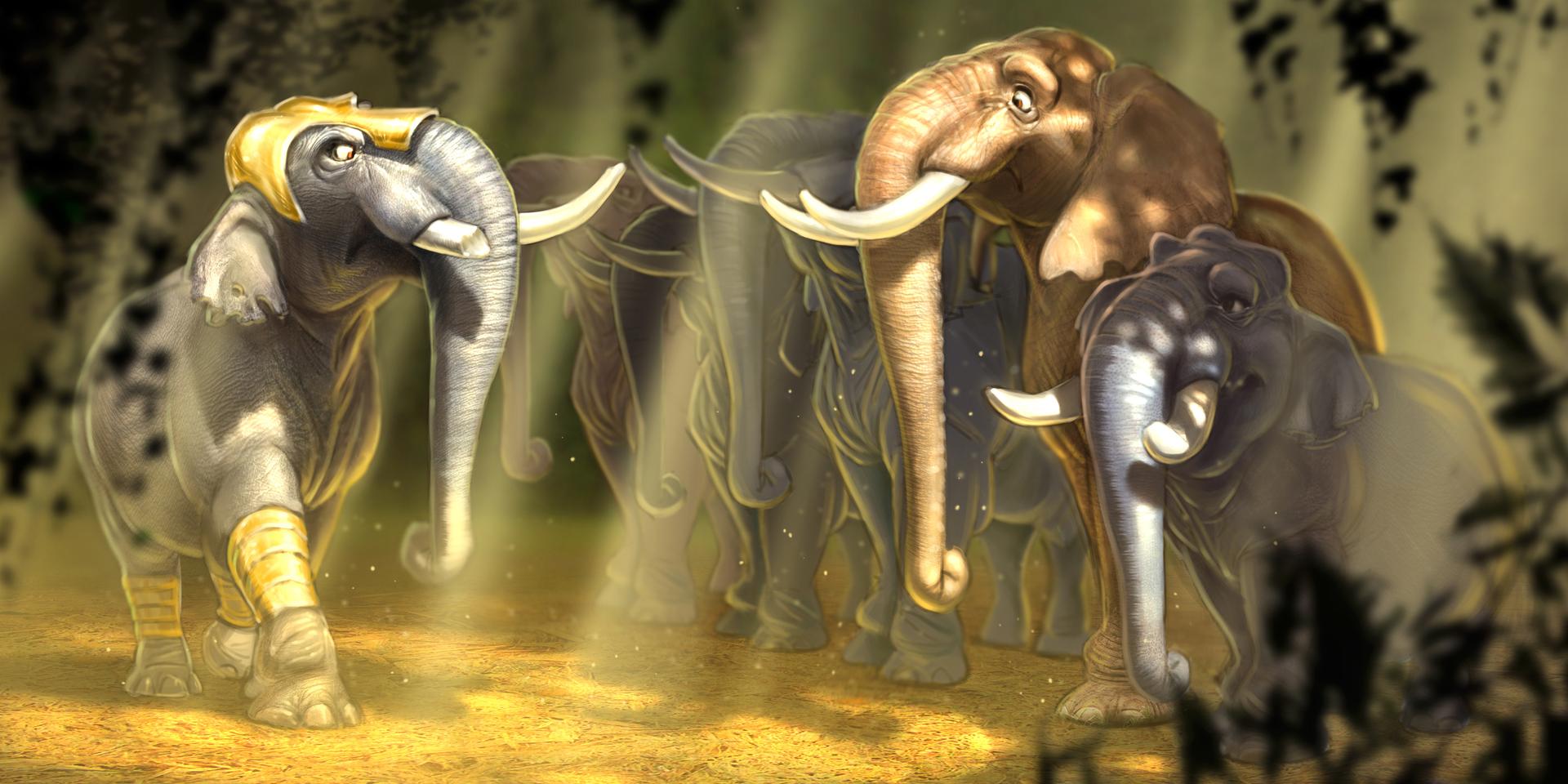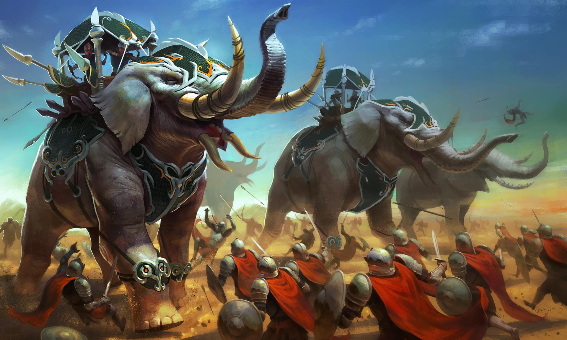 Боевой слон - это живое воплощение древней мощи и стратегического превосходства. В этих иллюстрациях оживают огромные животные с боевыми башнями на спинах, увешанные доспехами и украшениями. Каждая работа передает всю мощь и грацию этих гигантов: массивные бивни, толстая кожа, умные глаза. Художники показывают различные аспекты - от спокойного стояния в ожидании приказа до яростной атаки на врага. Коллекция включает исторические сцены древних войн, где слоны играли ключевую роль, а также современные интерпретации их использования в военных конфликтах.