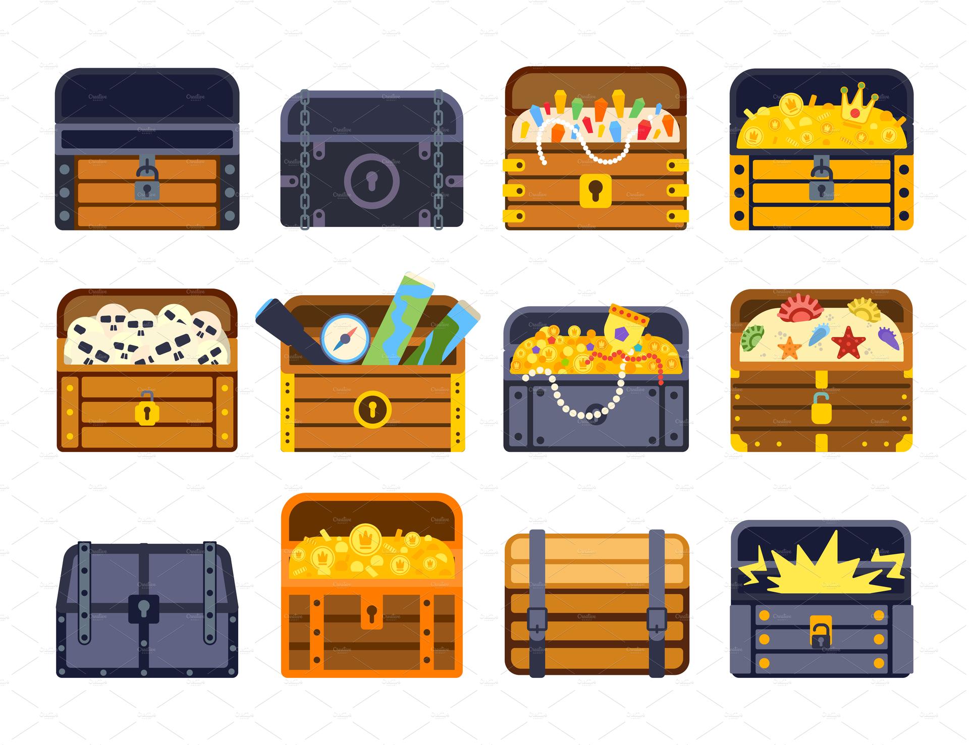 Сундук сокровищ предстает как символ пиратских приключений с золотыми монетами и драгоценностями. Его крышка приоткрыта, а содержимое блестит. В этих иллюстрациях он показан в различных композициях. Каждая деталь продумана. Художники используют освещение для создания атмосферы. Сундук становится воплощением мечты о богатстве и тайнах.