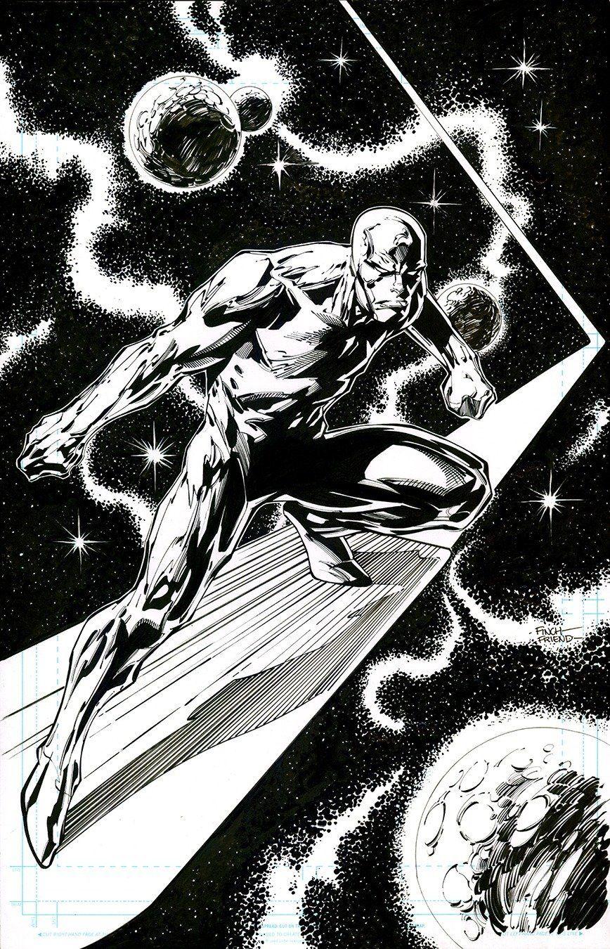 Серебряный серфер предстает как космический странник с серебряной кожей и доской для серфинга. Его силуэт на фоне звезд - символ бесконечности и свободы. В этих иллюстрациях он показан то в полете, то в размышлениях. Его глаза горят внутренней энергией. Художники мастерски передают динамику движения и космическую атмосферу. Серфер становится воплощением гармонии между силой и красотой вселенной.