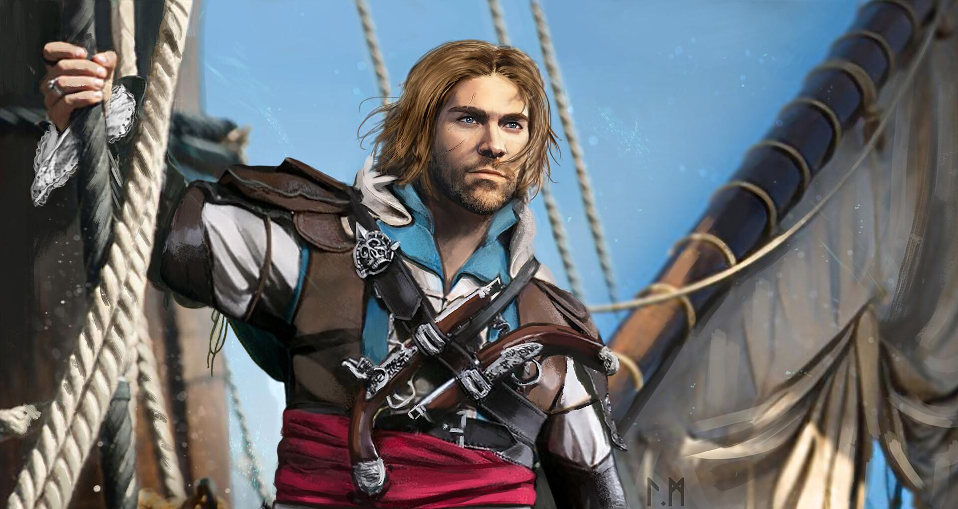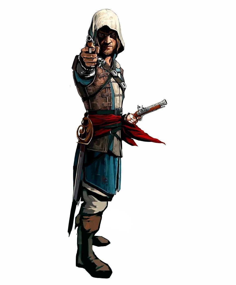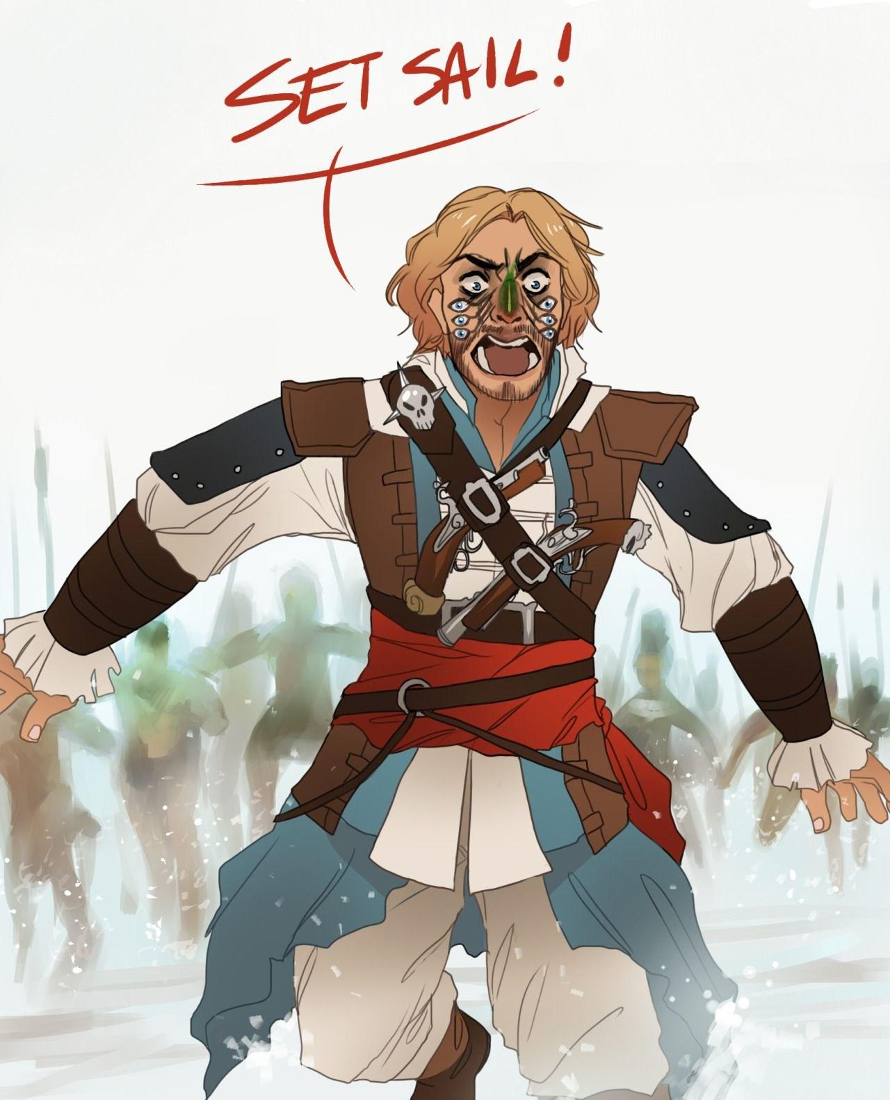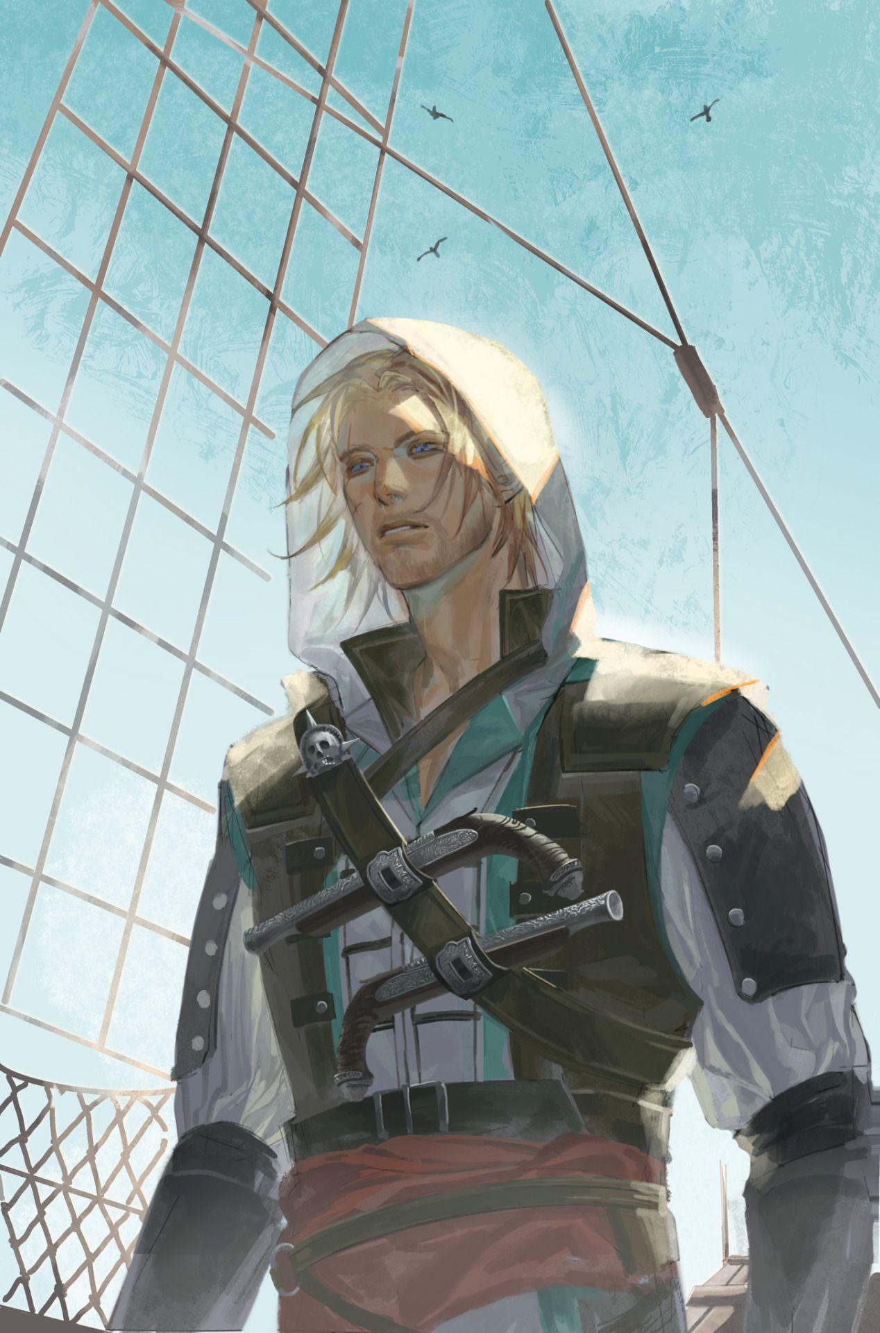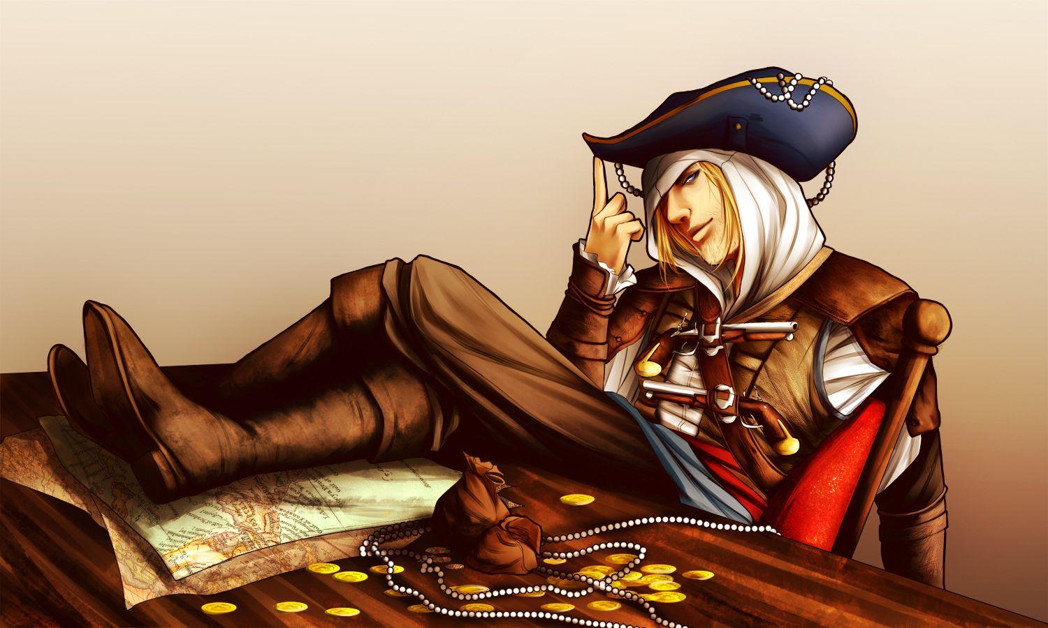 Эдвард Кенвей предстает как классический пират с острым клинком и авантюрным духом. Его треуголка, борода, татуировки - все это создает образ морского волка. В этих иллюстрациях он показан то на палубе корабля, то в таверне. Его улыбка полна задора и уверенности. Художники мастерски передают атмосферу пиратской жизни и океанских просторов. Эдвард становится воплощением свободы и приключений на морских просторах.