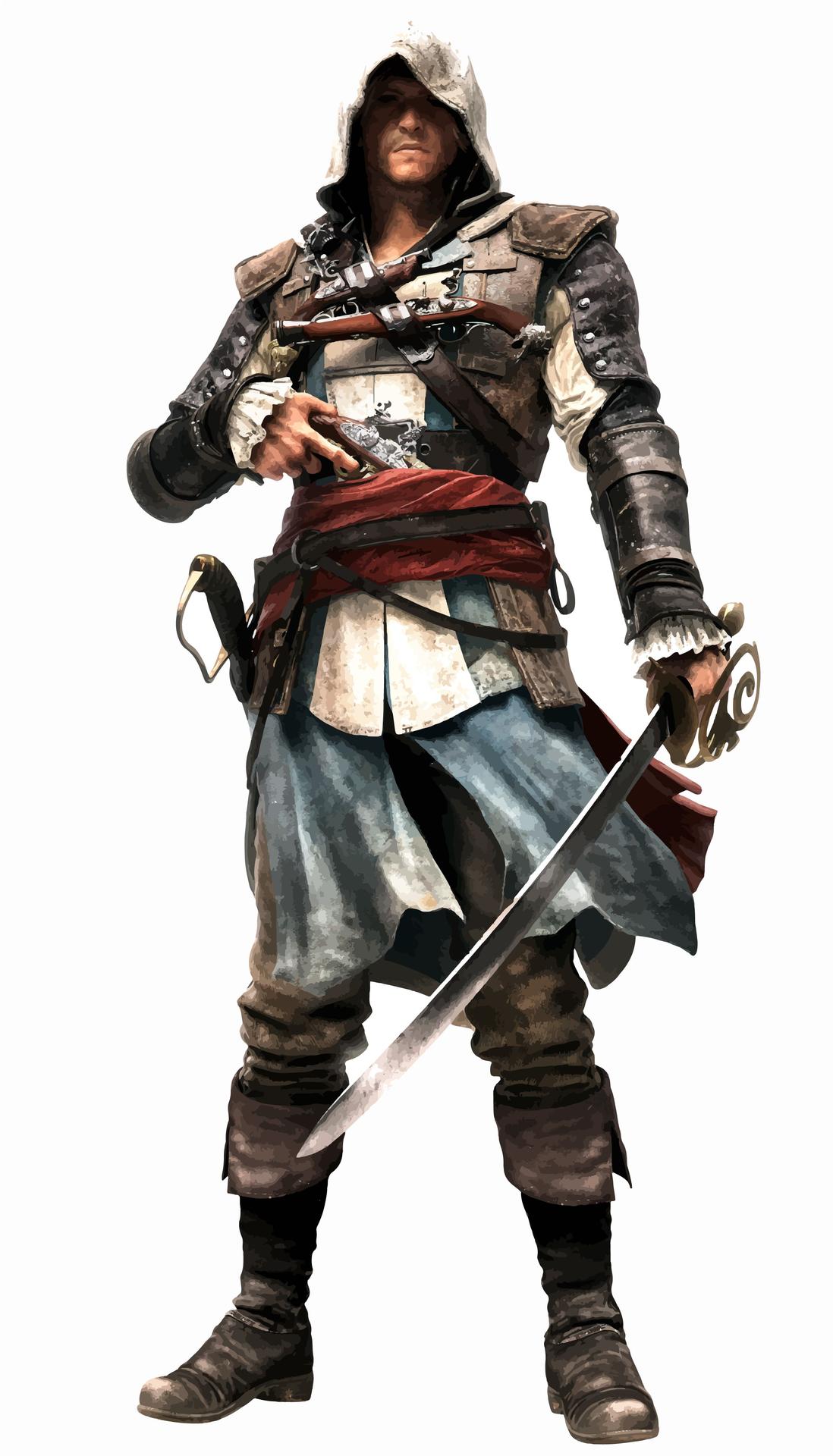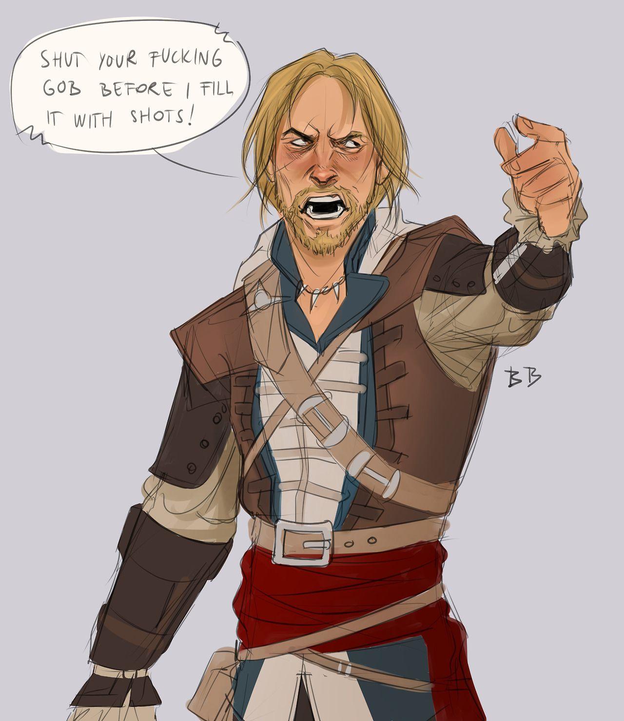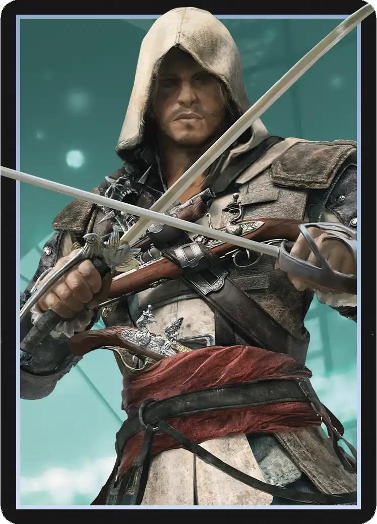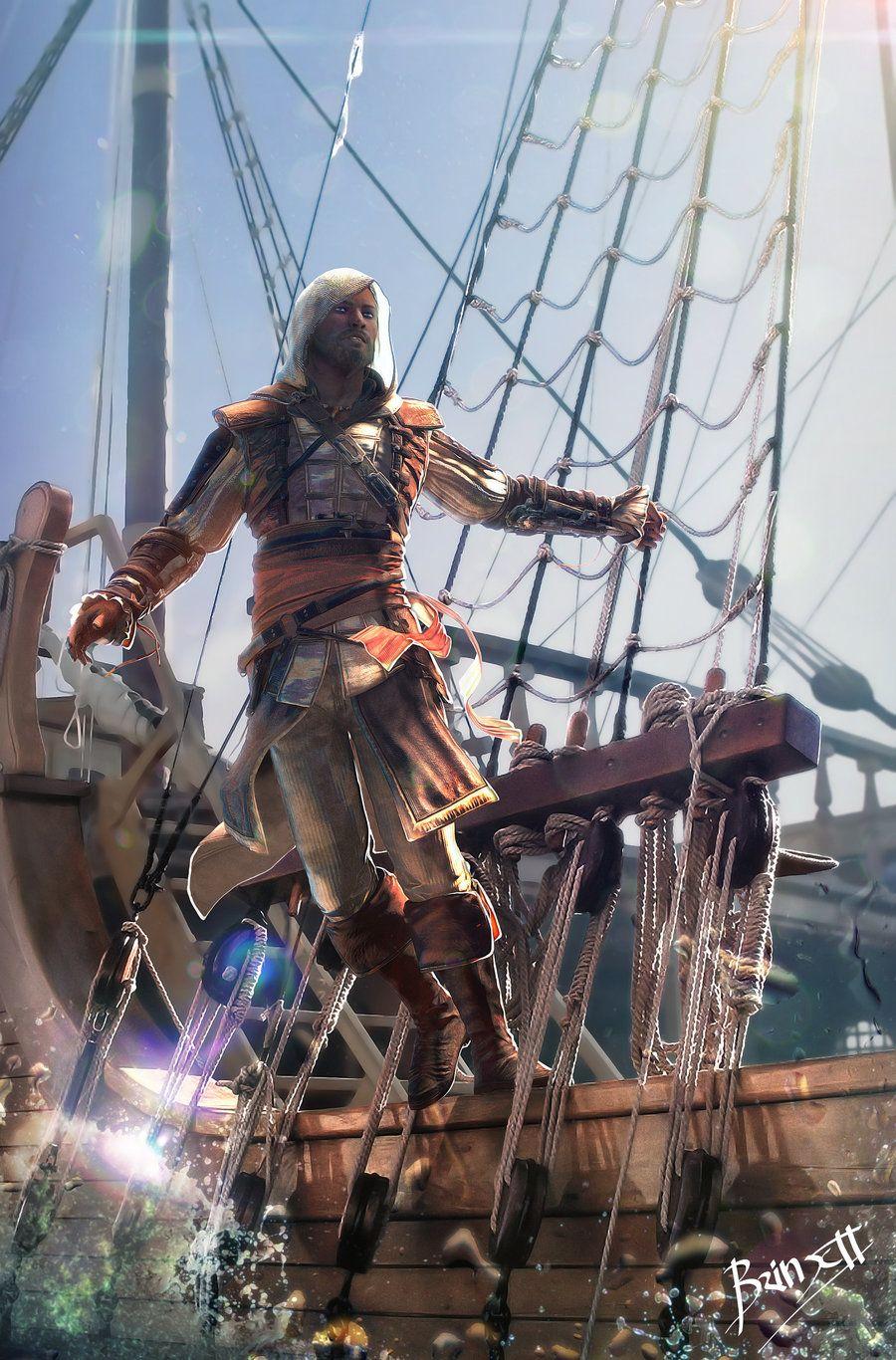 Эдвард Кенвей предстает как классический пират с острым клинком и авантюрным духом. Его треуголка, борода, татуировки - все это создает образ морского волка. В этих иллюстрациях он показан то на палубе корабля, то в таверне. Его улыбка полна задора и уверенности. Художники мастерски передают атмосферу пиратской жизни и океанских просторов. Эдвард становится воплощением свободы и приключений на морских просторах.