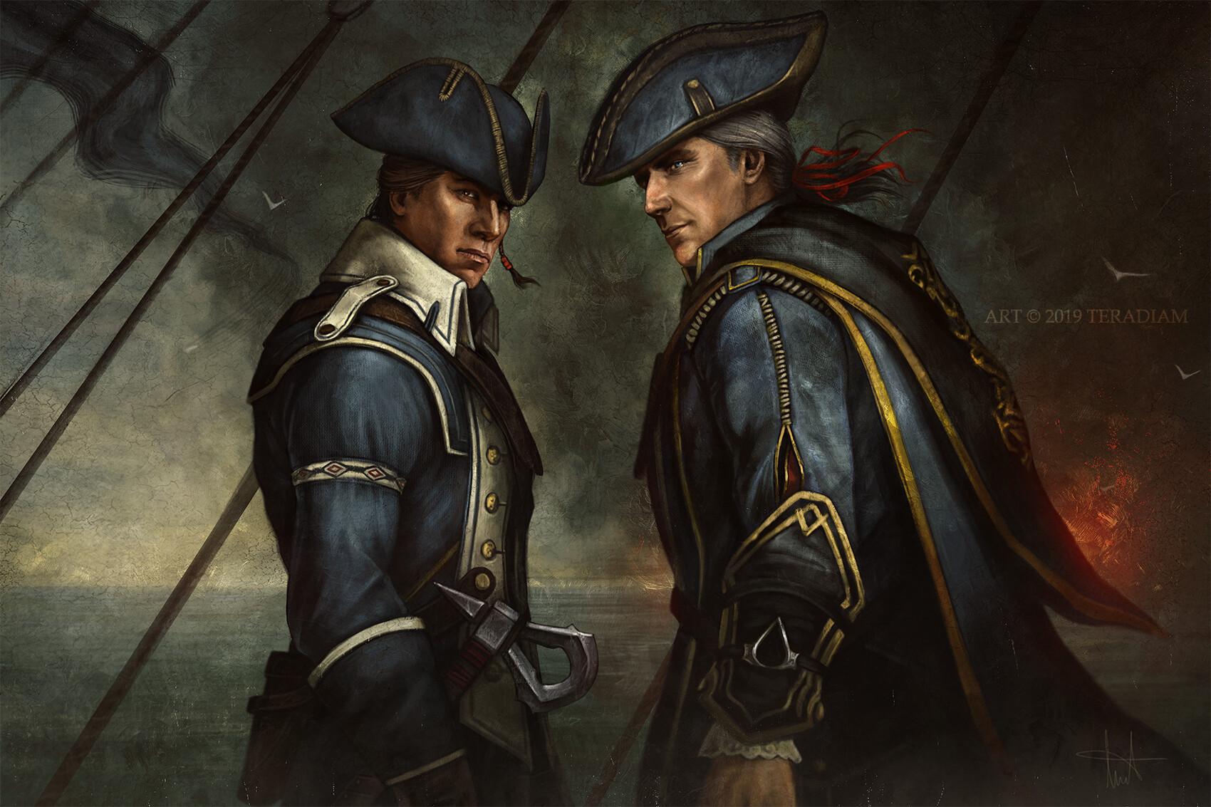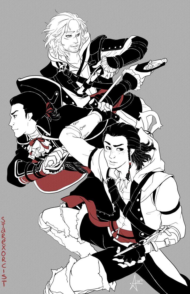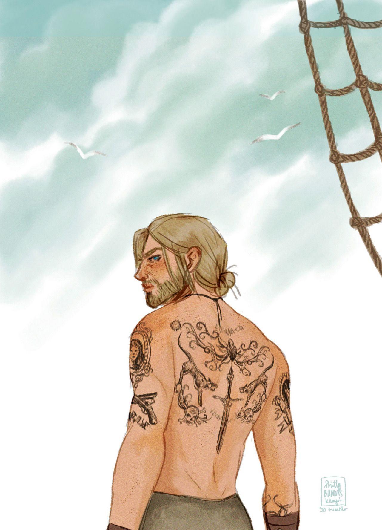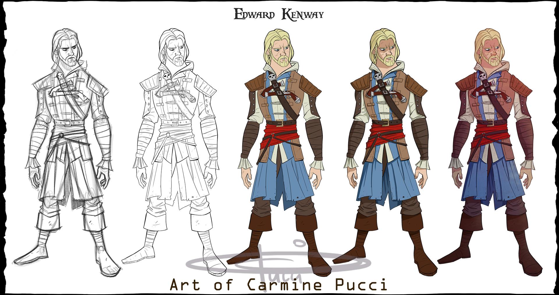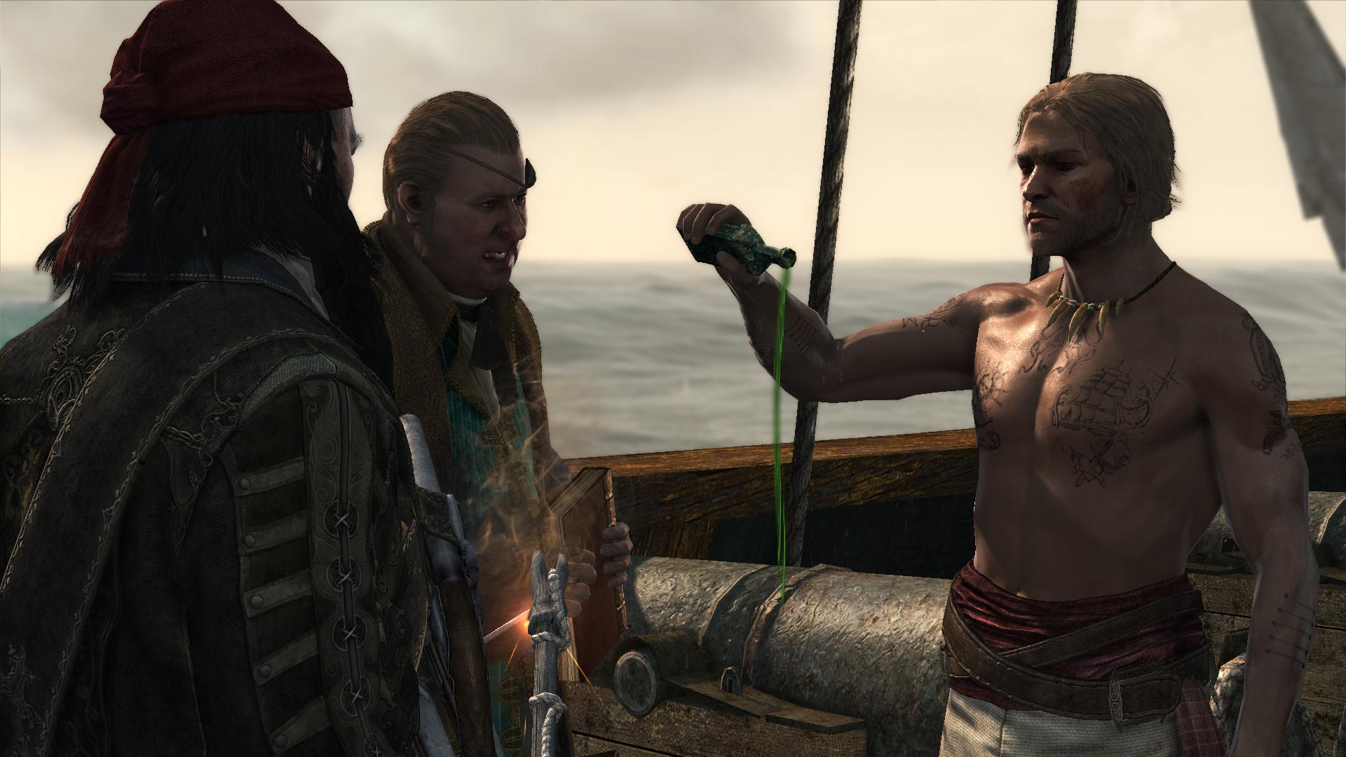 Эдвард Кенвей предстает как классический пират с острым клинком и авантюрным духом. Его треуголка, борода, татуировки - все это создает образ морского волка. В этих иллюстрациях он показан то на палубе корабля, то в таверне. Его улыбка полна задора и уверенности. Художники мастерски передают атмосферу пиратской жизни и океанских просторов. Эдвард становится воплощением свободы и приключений на морских просторах.