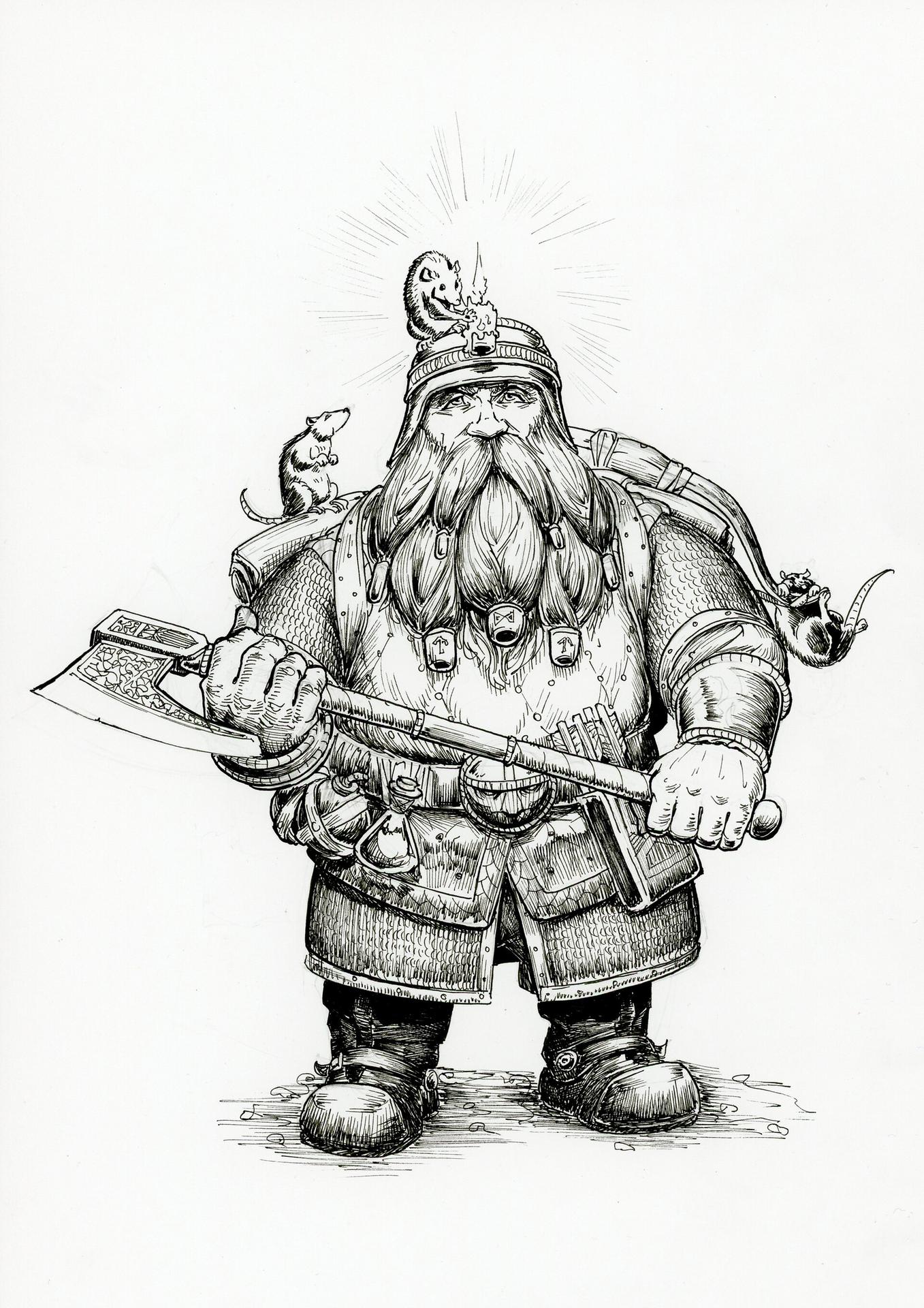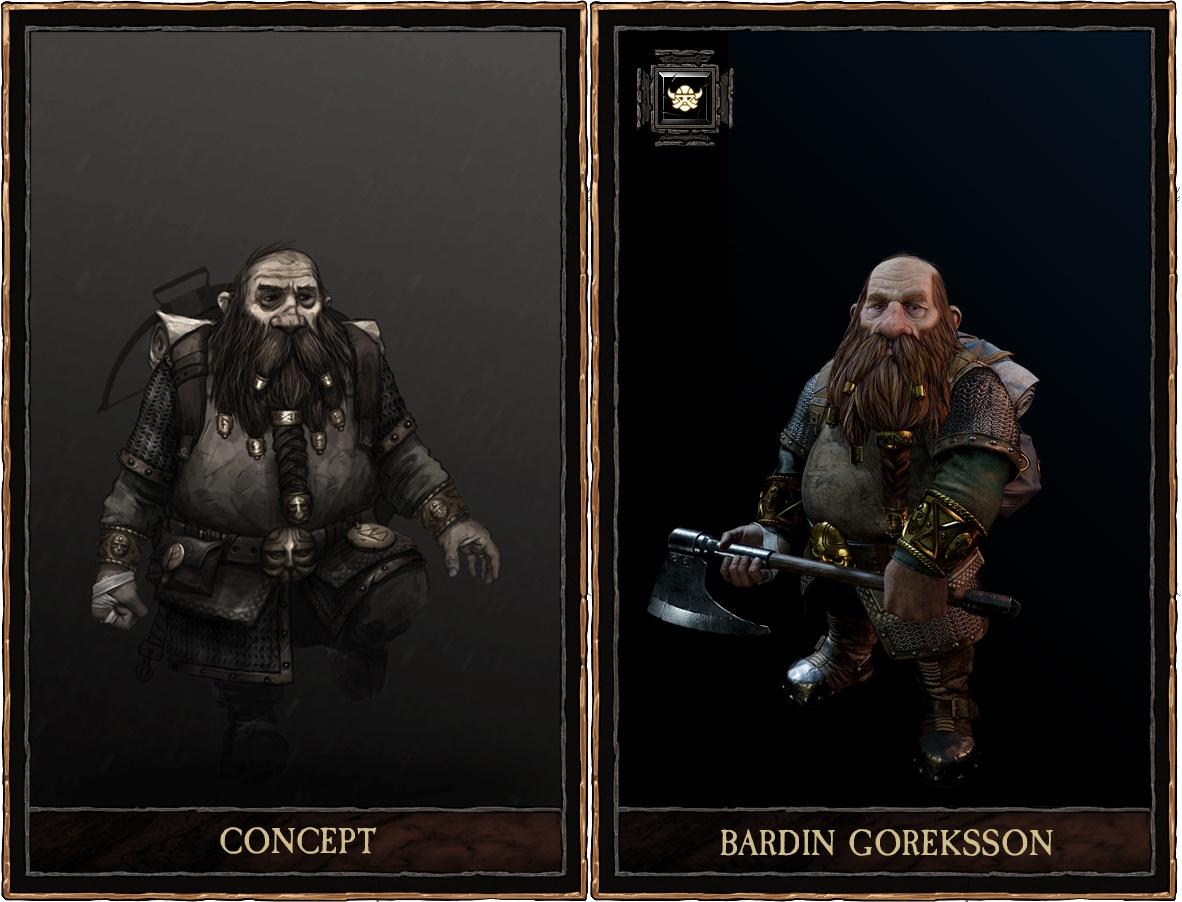 Бардин воплощает образ классического северного воина с мощным телосложением и густой бородой. Его доспехи носят следы многих битв, а топор всегда готов к удару. В этих иллюстрациях он показан то в спокойных размышлениях, то в разгар сражения. Его фигура излучает уверенность и опыт, накопленный годами. Художники мастерски передают текстуру кожи, металла и тканей, создавая ощущение живого, дышащего персонажа. Бардин становится символом стойкости и непоколебимости в мире опасностей.