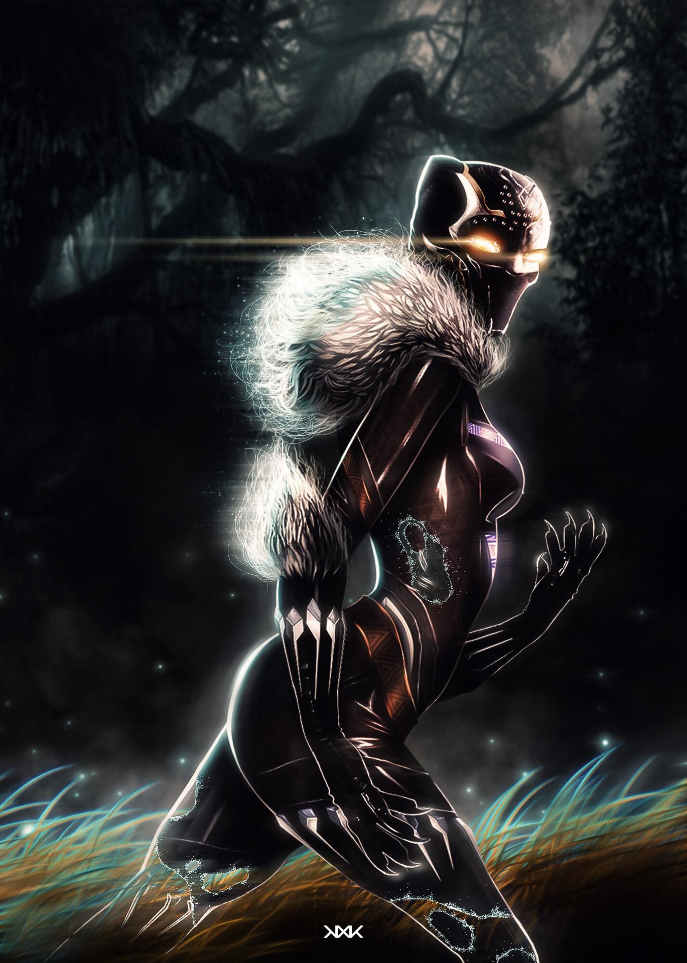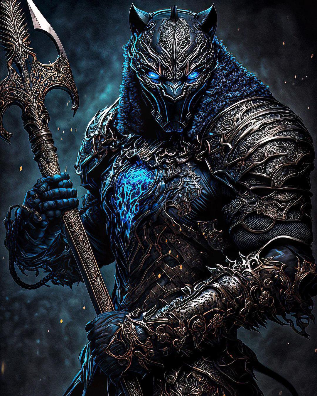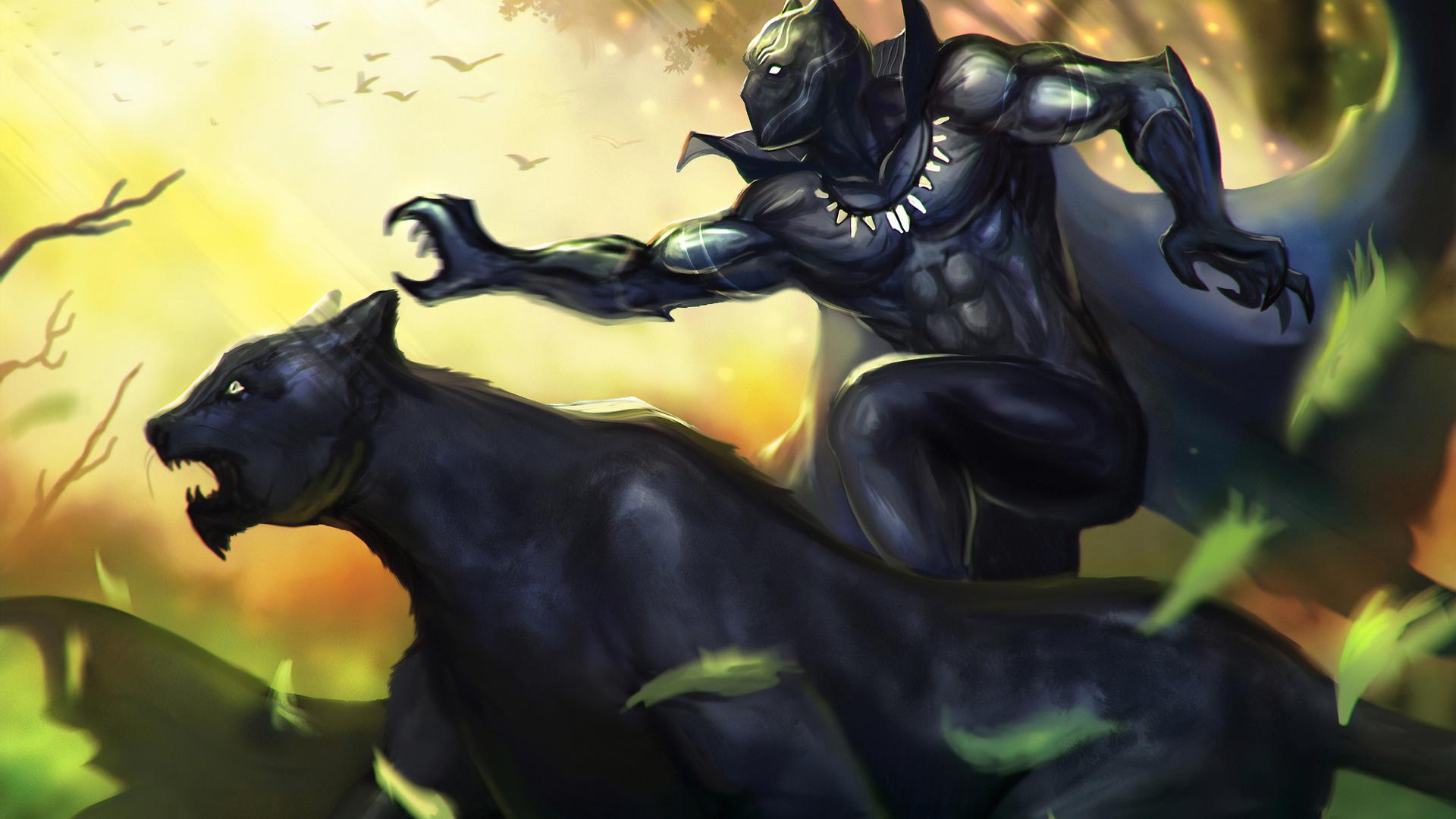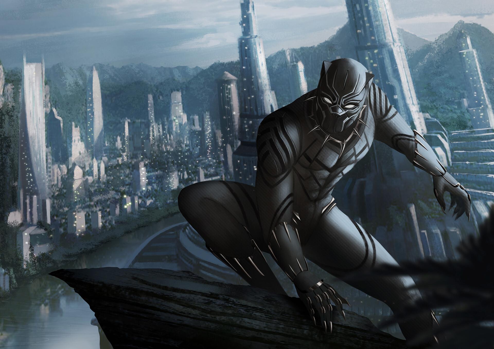 Черная пантера предстает как символ африканской мощи и технологического превосходства. В вибрантовой броне, с кошачьей маской на лице - он олицетворяет мудрость правителя и силу воина. Эти иллюстрации показывают его в различных ипостасях: от церемониального короля до яростного бойца. Его движения полны грации большой кошки, а глаза горят внутренней силой. Каждая композиция подчеркивает баланс между традициями и инновациями, делая его фигурой, достойной преклонения и уважения.