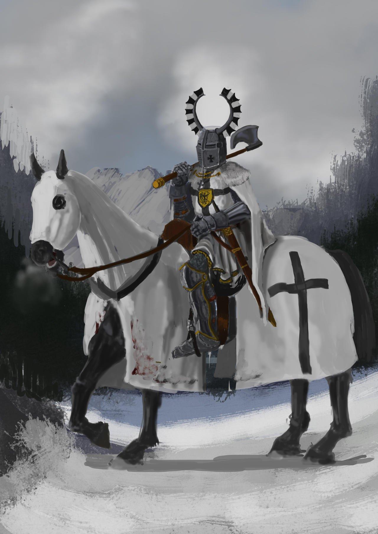 Тевтонский рыцарь предстает как символ христианской веры и воинской доблести в эпоху средневековых крестовых походов. Эта коллекция изображений показывает его в полной боевой готовности: от статичных портретов в белом плаще с черным крестом до динамичных сцен рыцарских турниров. Каждый арт подчеркивает его непоколебимую веру - суровое лицо под забралом шлема и массивные доспехи, символизирующие духовную и физическую защиту. Художники мастерски передают атмосферу средневековой Европы с ее замками и рыцарскими традициями. Картинки демонстрируют различные аспекты его жизни - от молитв в часовне до участия в битвах. Коллекция раскрывает не только внешний вид, но и идеалы, которые сформировали этот орден - служение Богу и защита слабых. Изображения показывают, как рыцарство сочеталось с религиозным фанатизмом в историческом контексте.