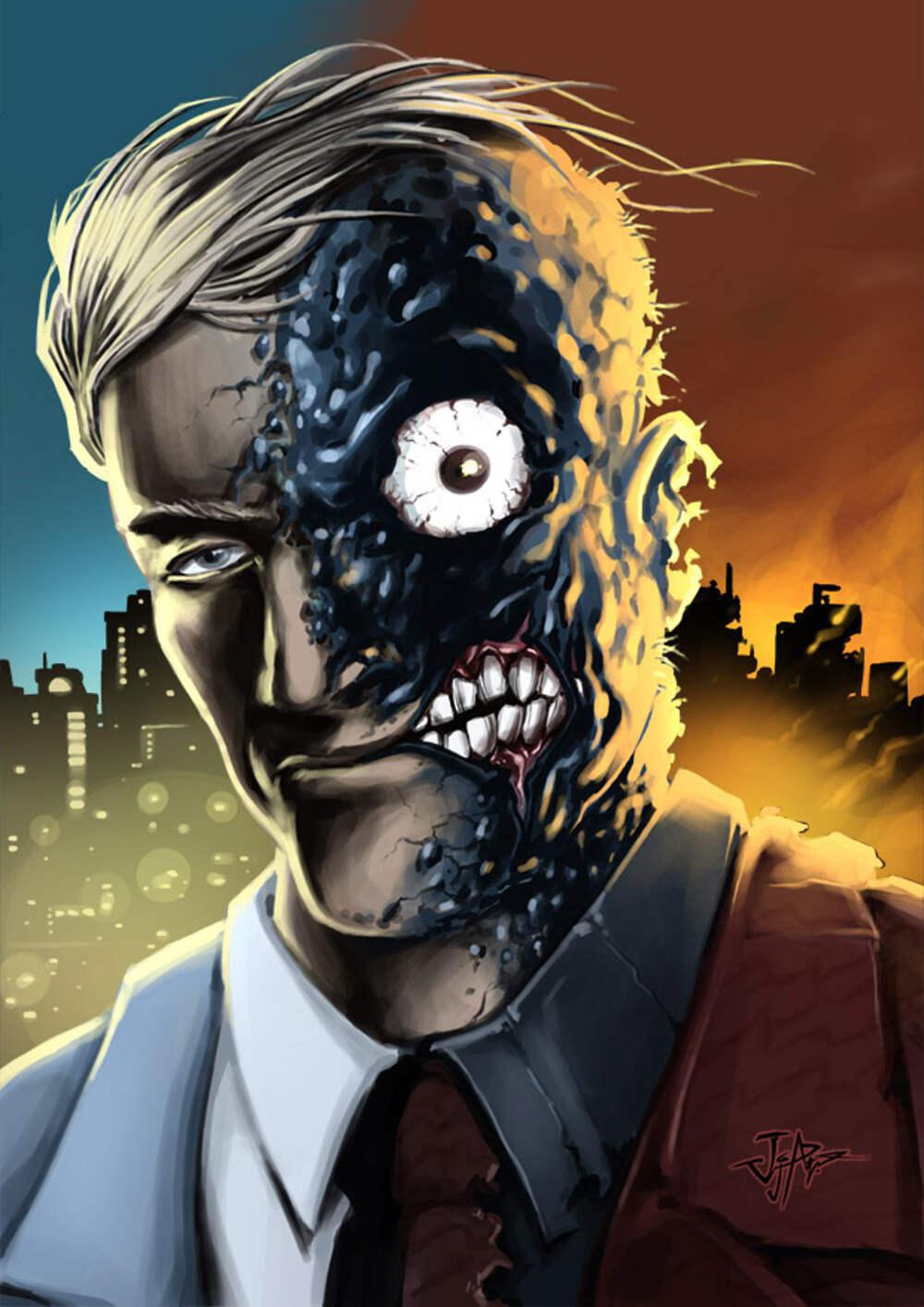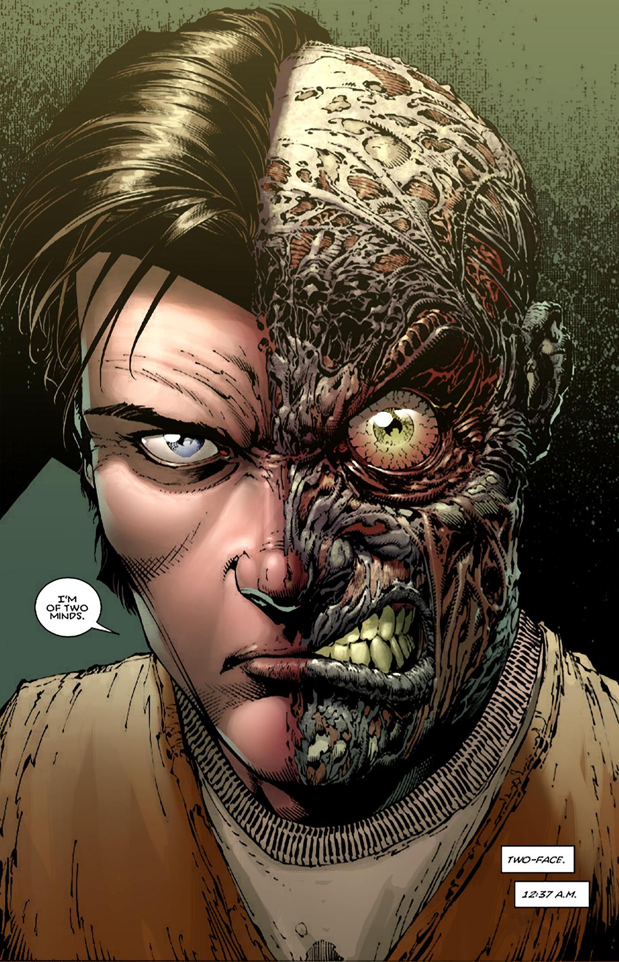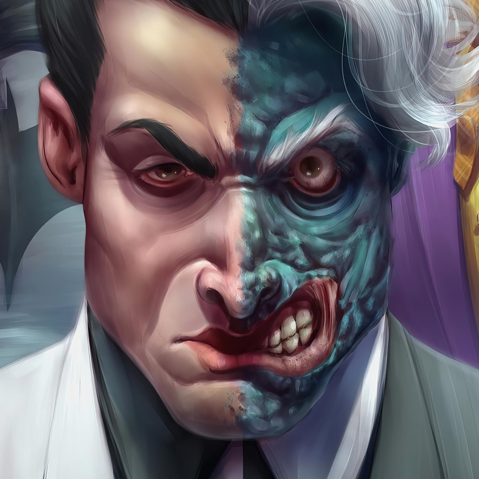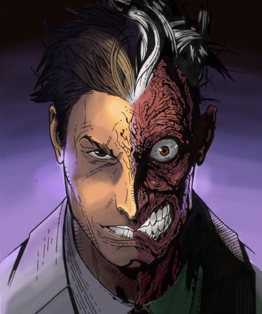 Двуликий - трагический злодей из вселенной DC Comics, бывший прокурор Харви Дент с раздвоенной личностью. Эти иллюстрации показывают его трансформацию: от благородного борца с преступностью до безумного преступника. Фото запечатлевают моменты его 'решения' - подбрасывание монеты, которая определяет добро или зло. Узнайте о его происхождении, дружбе с Бэтменом и вечной борьбе с самим собой. Арты демонстрируют не только его внешние изменения, но и внутренний конфликт - постоянную борьбу между прошлым и настоящим, добром и злом в его душе.