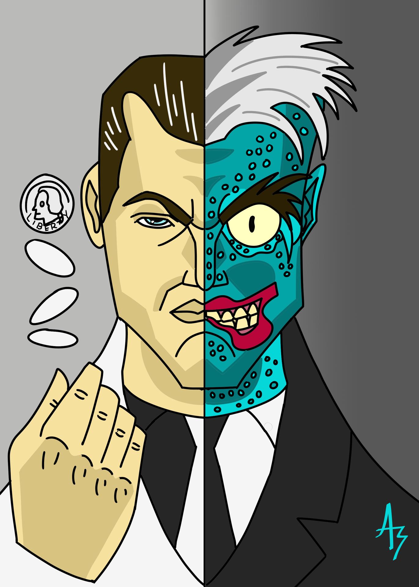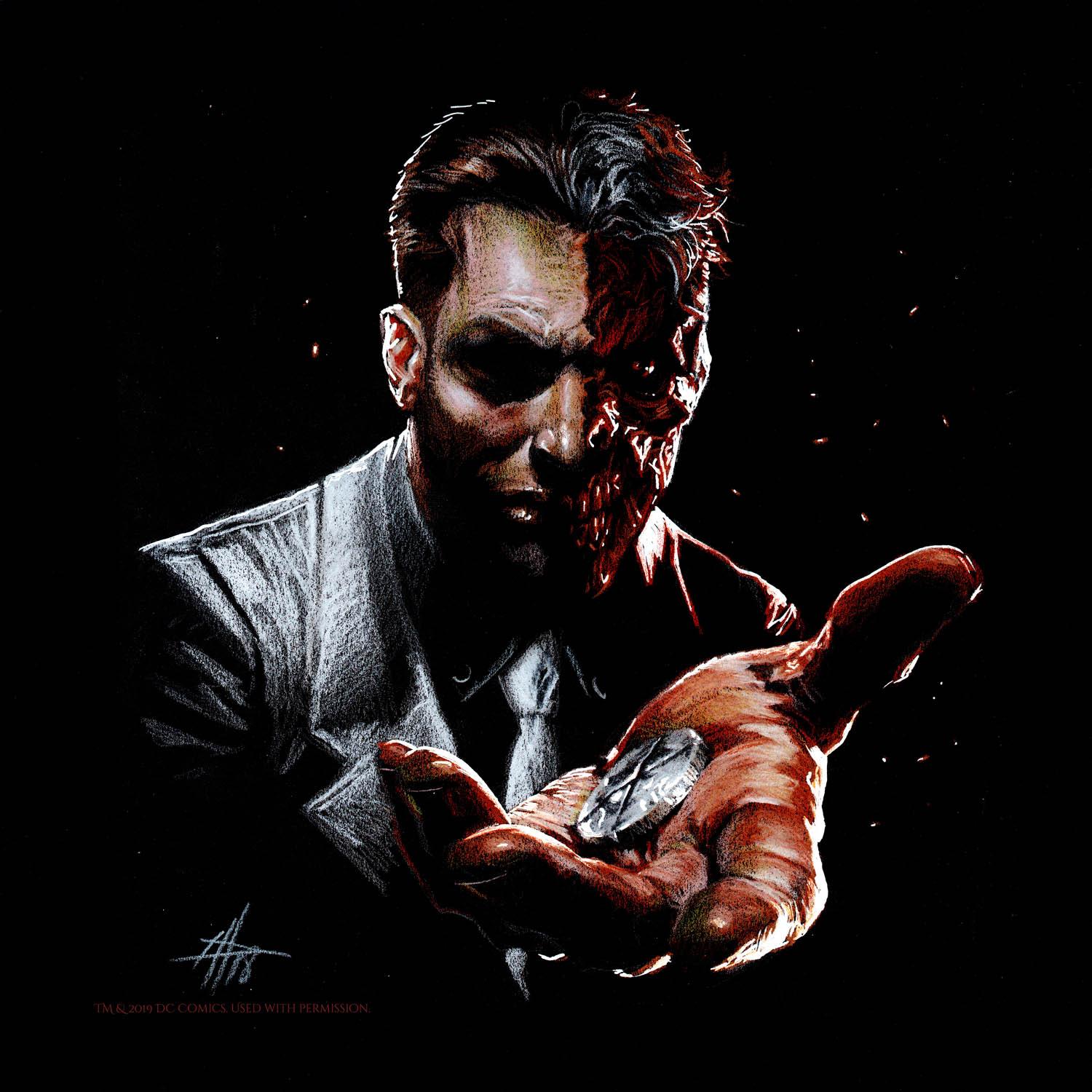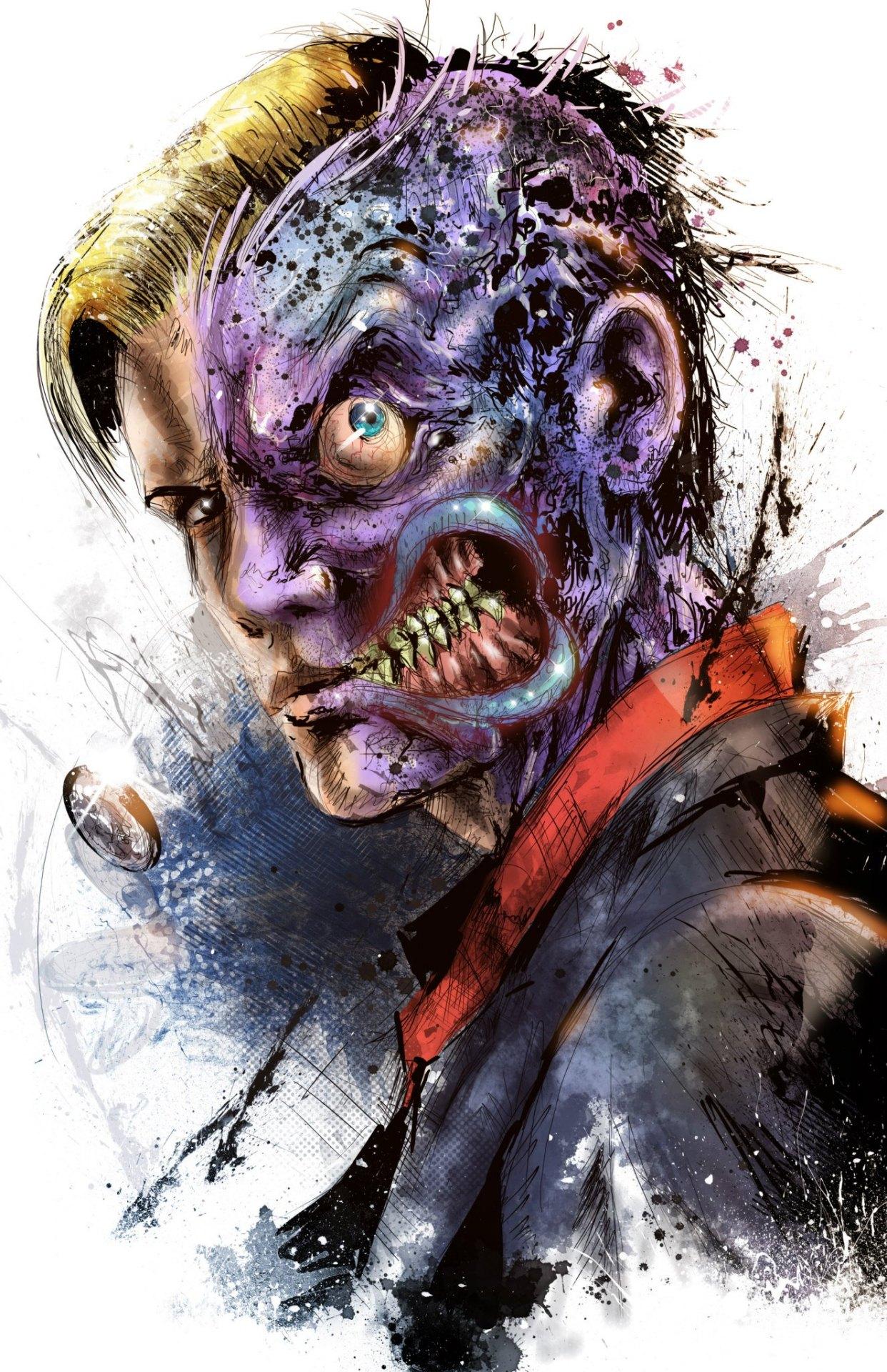 Двуликий - трагический злодей из вселенной DC Comics, бывший прокурор Харви Дент с раздвоенной личностью. Эти иллюстрации показывают его трансформацию: от благородного борца с преступностью до безумного преступника. Фото запечатлевают моменты его 'решения' - подбрасывание монеты, которая определяет добро или зло. Узнайте о его происхождении, дружбе с Бэтменом и вечной борьбе с самим собой. Арты демонстрируют не только его внешние изменения, но и внутренний конфликт - постоянную борьбу между прошлым и настоящим, добром и злом в его душе.
