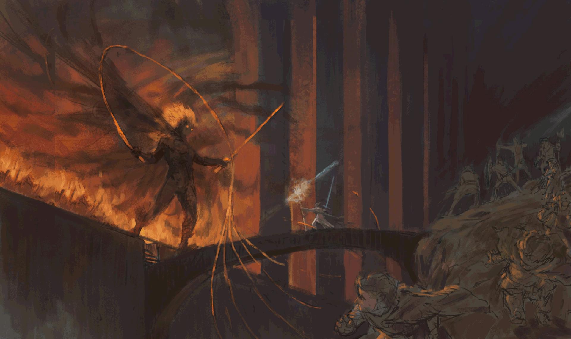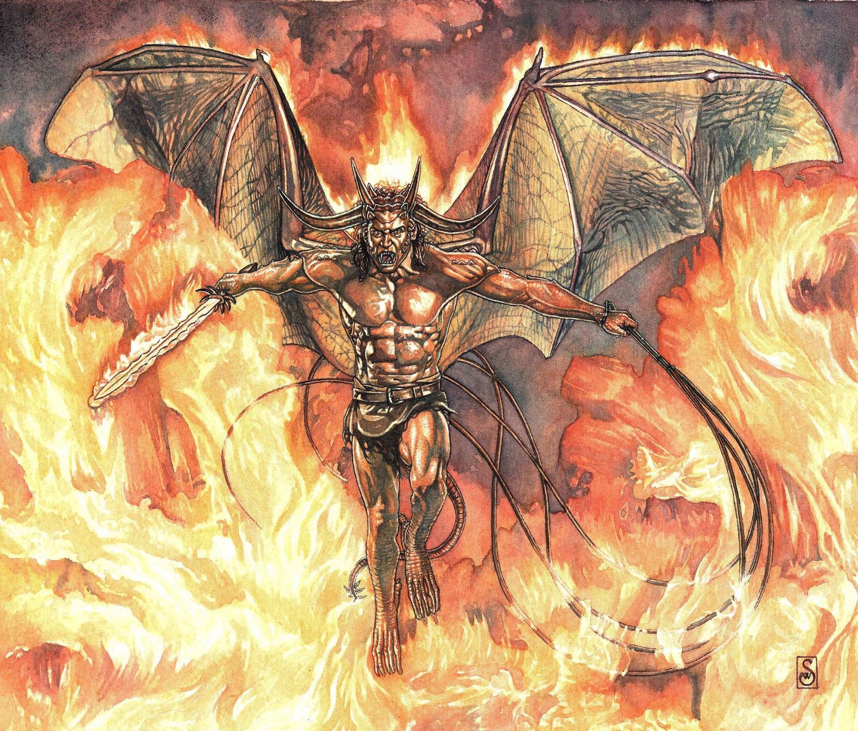 Балрог - древний демон огня и тьмы из мира Средиземья, страж забытых глубин. Эти иллюстрации показывают его в момент пробуждения: крылья, развернутые над бездной, огненный бич в руке и глаза, пылающие адским пламенем. Фото запечатлевают его столкновение с Гэндальфом - эпическую битву, изменившую судьбу Средиземья. Узнайте о его происхождении от Валар, падении в Средиземье и тысячелетнем сне в пещерах. Арты демонстрируют не только его ужасающую мощь, но и трагедию падшего существа, обреченного на вечную службу силам зла.