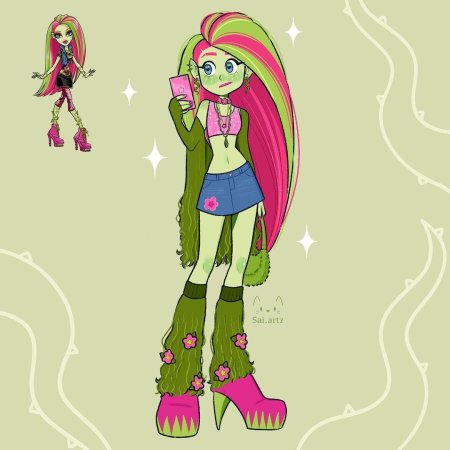 Венера, дочь Медузы из Monster High, предстает как икона стиля в этих очаровательных иллюстрациях. Художники мастерски сочетают ее монструозное наследие с подростковой модой, создавая образы, где змеиные волосы становятся fashion statement, а каменный взгляд - предметом зависти. От школьных интриг до подиумных показов - каждая сцена показывает Венеру как уверенную в себе личность, которая использует свои 'проклятия' как преимущество. Эти работы исследуют темы самопринятия, внутренней силы и того, как уникальность может стать источником уверенности в мире, где все хотят быть 'нормальными'.