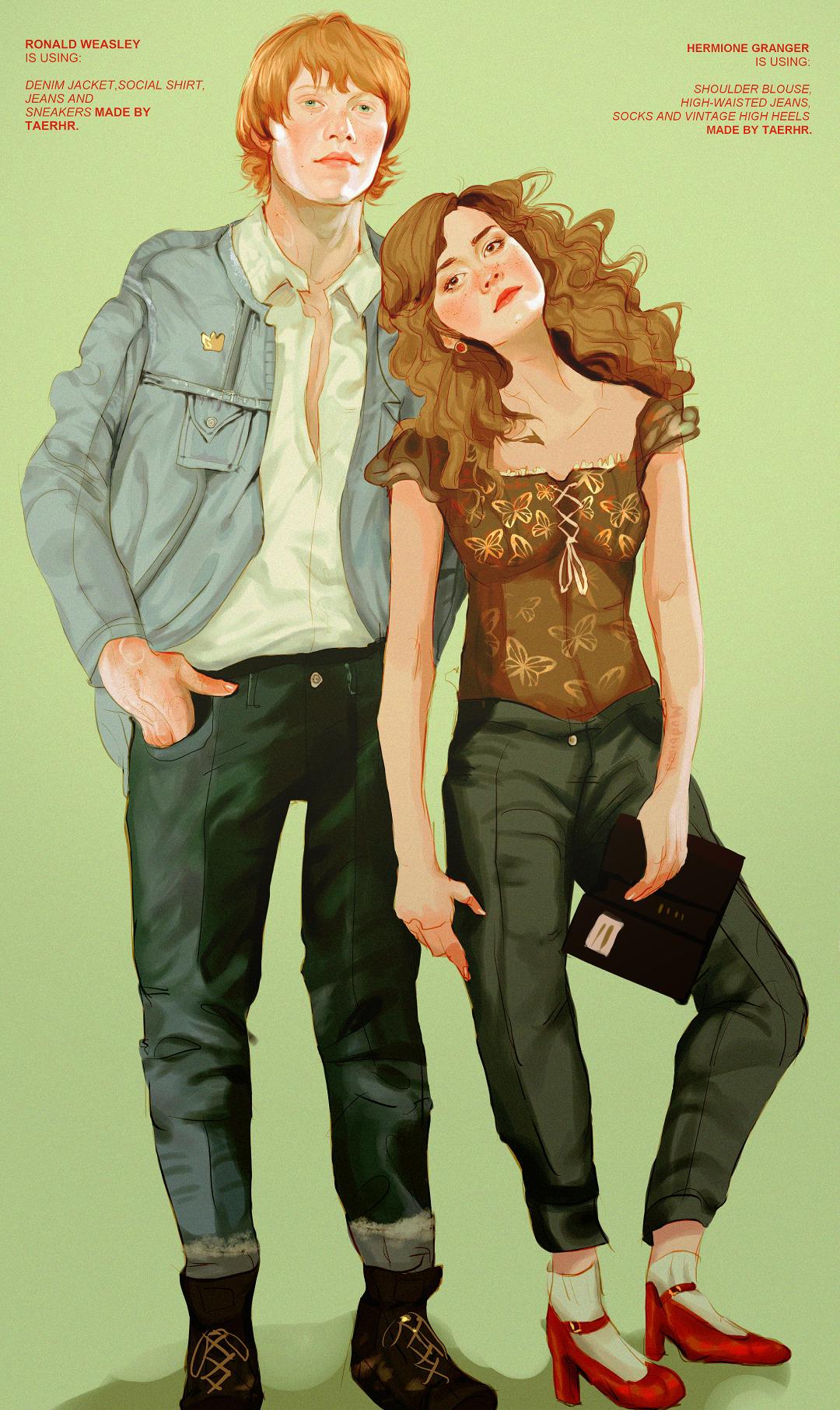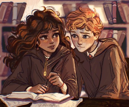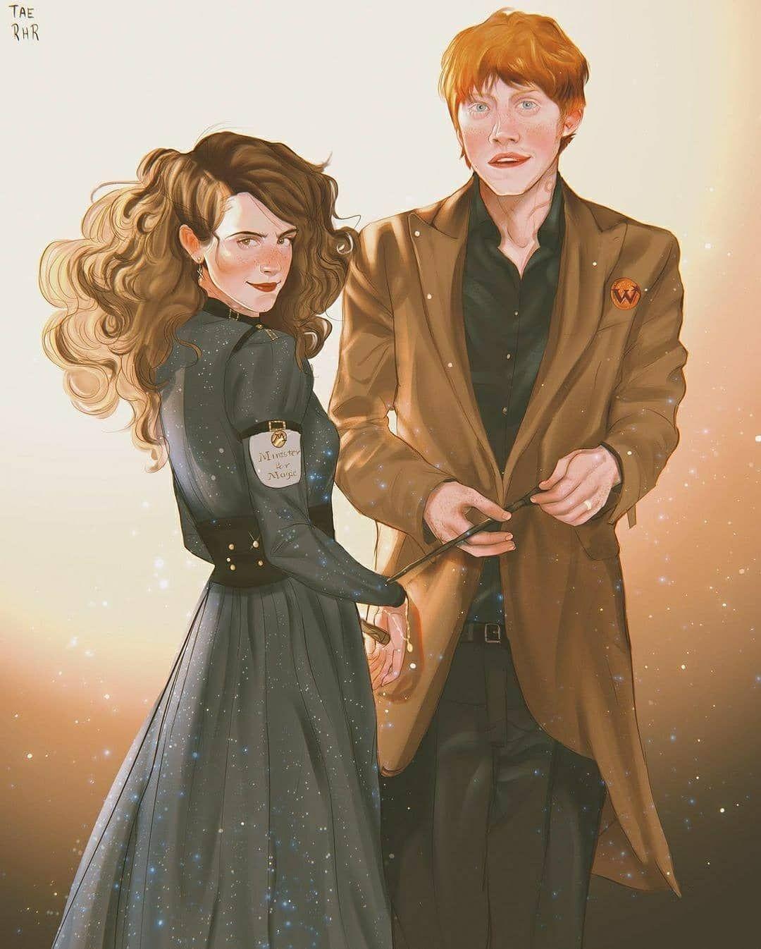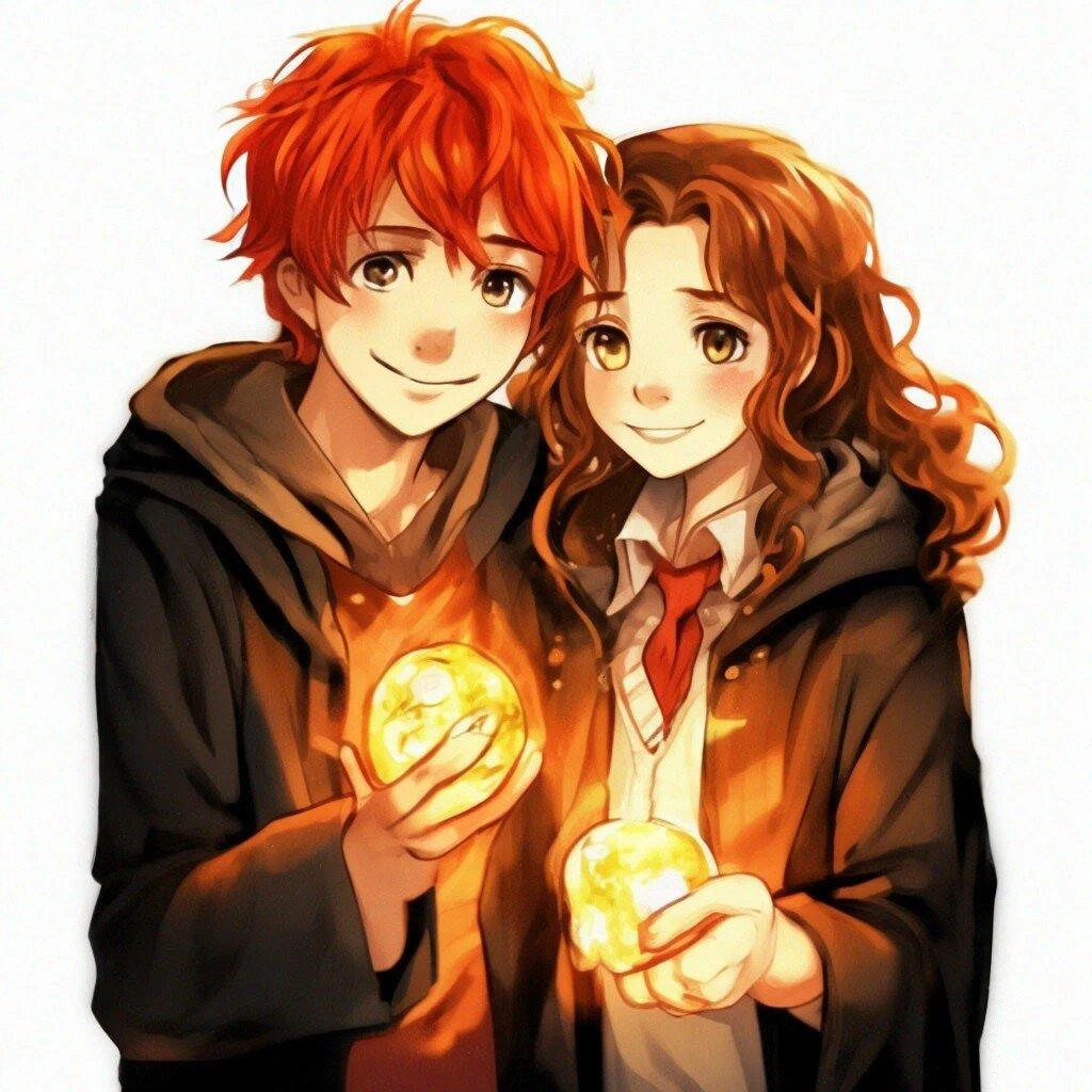 Гермиона Грейнджер и Рон Уизли предстают как идеальная команда в этих теплых иллюстрациях из мира Гарри Поттера. Художники захватывают их эволюцию от школьных соперников до любящей пары, показывая моменты дружбы, романтики и совместных приключений. От первых уроков в Хогвартсе до семейной жизни с детьми - каждая сцена передает химию персонажей, их взаимодополнение и рост. Эти работы исследуют темы лояльности, интеллектуальной совместимости и того, как дружба может перерасти в великую любовь в мире, где магия окружает со всех сторон.