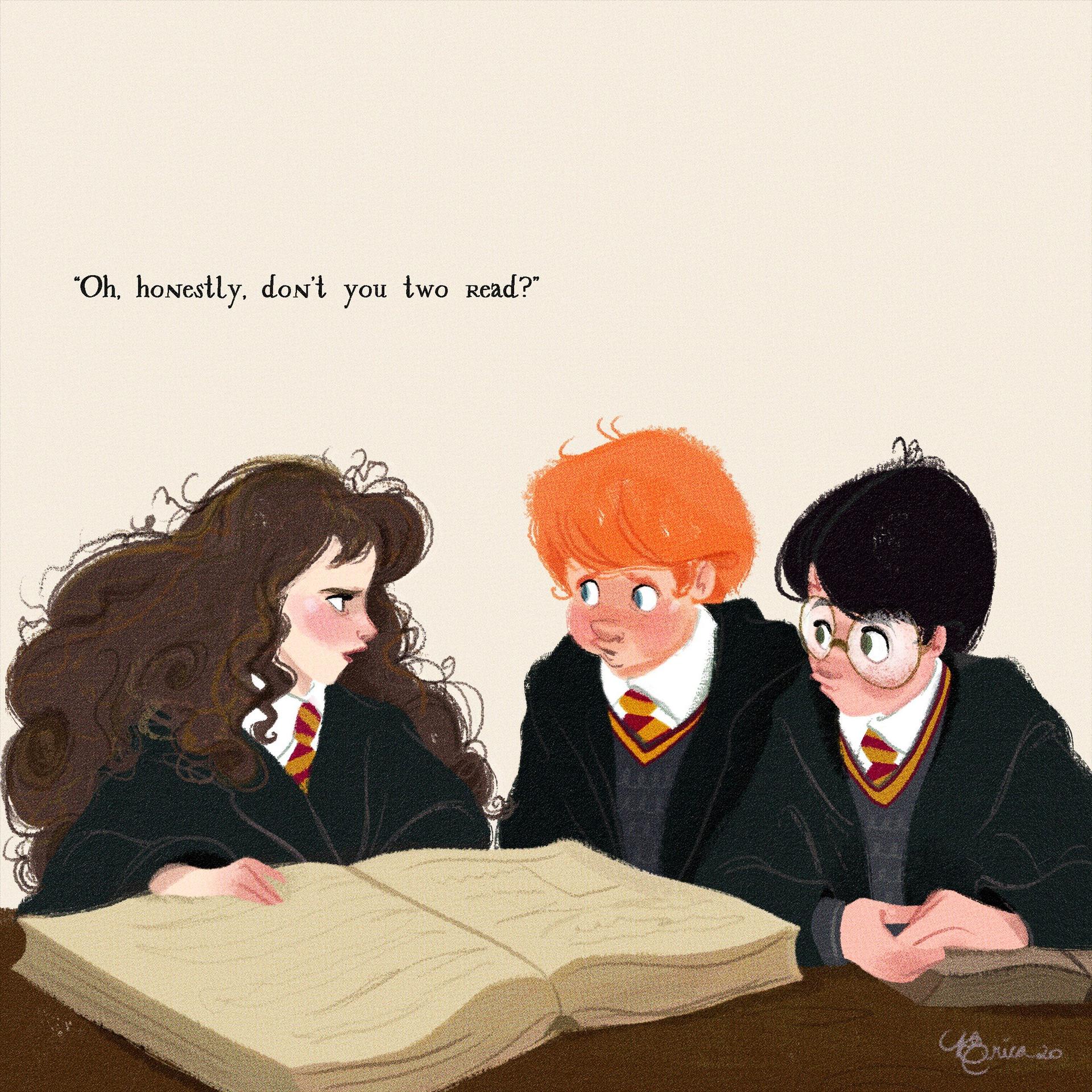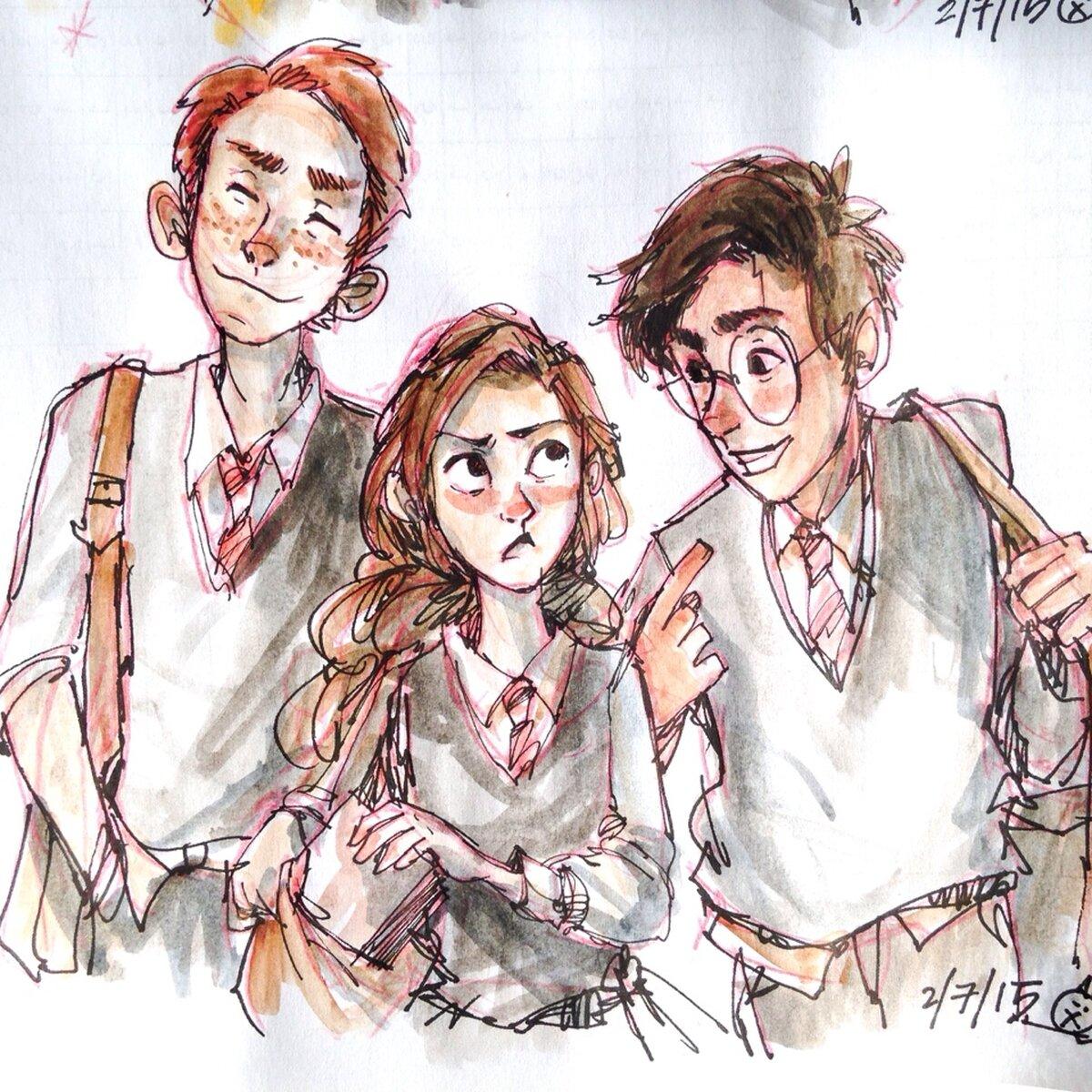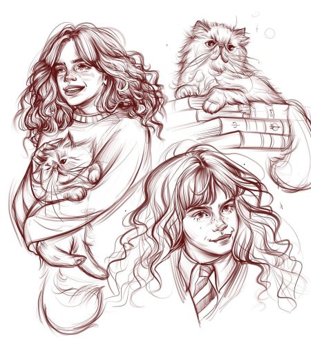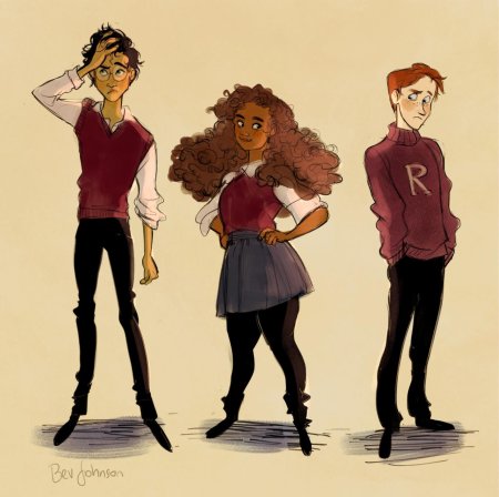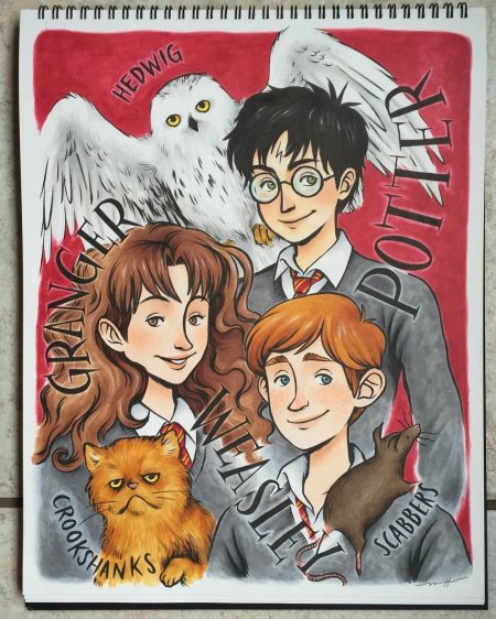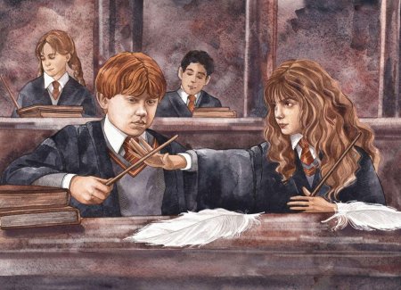 Гермиона Грейнджер и Рон Уизли предстают как идеальная команда в этих теплых иллюстрациях из мира Гарри Поттера. Художники захватывают их эволюцию от школьных соперников до любящей пары, показывая моменты дружбы, романтики и совместных приключений. От первых уроков в Хогвартсе до семейной жизни с детьми - каждая сцена передает химию персонажей, их взаимодополнение и рост. Эти работы исследуют темы лояльности, интеллектуальной совместимости и того, как дружба может перерасти в великую любовь в мире, где магия окружает со всех сторон.