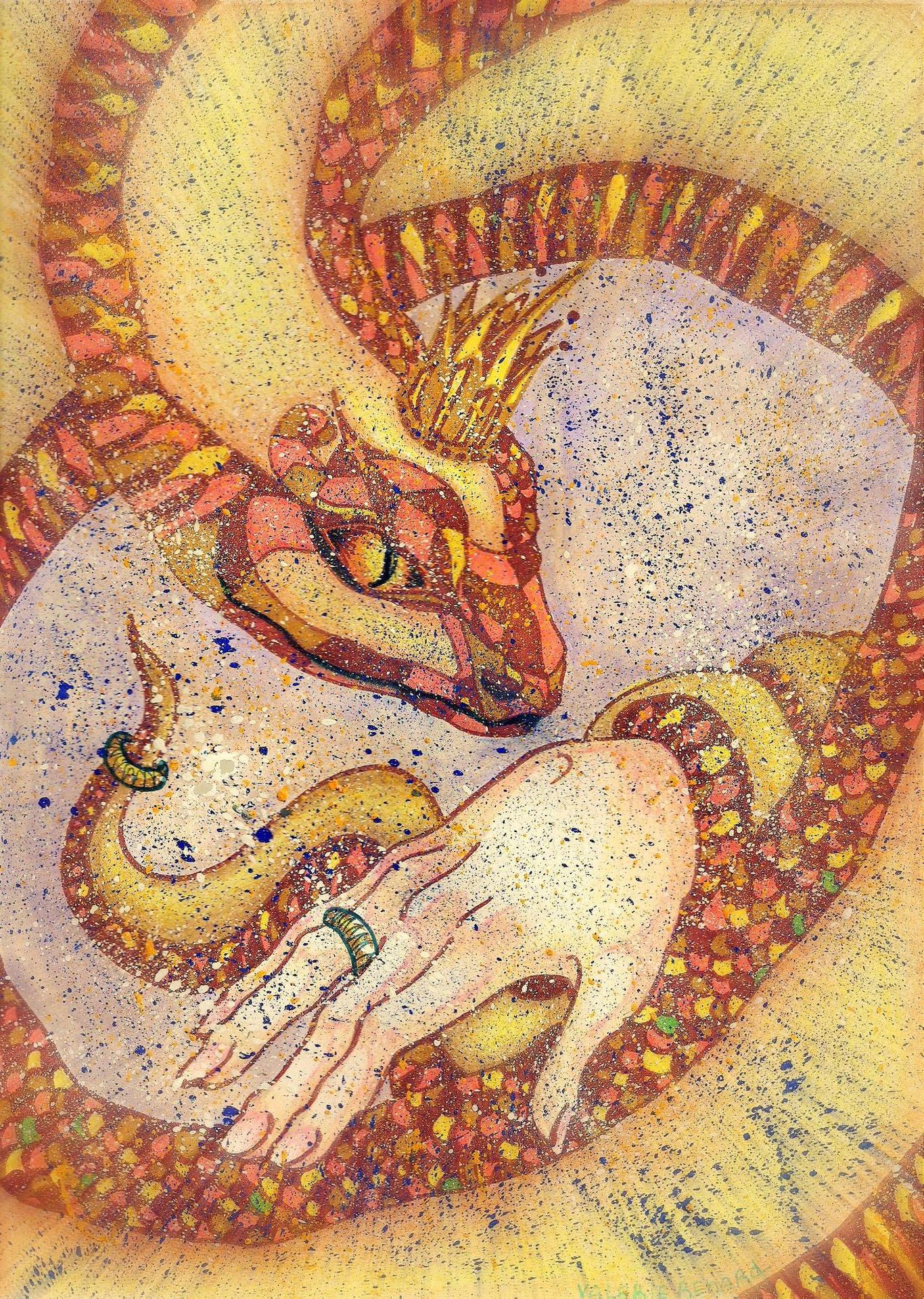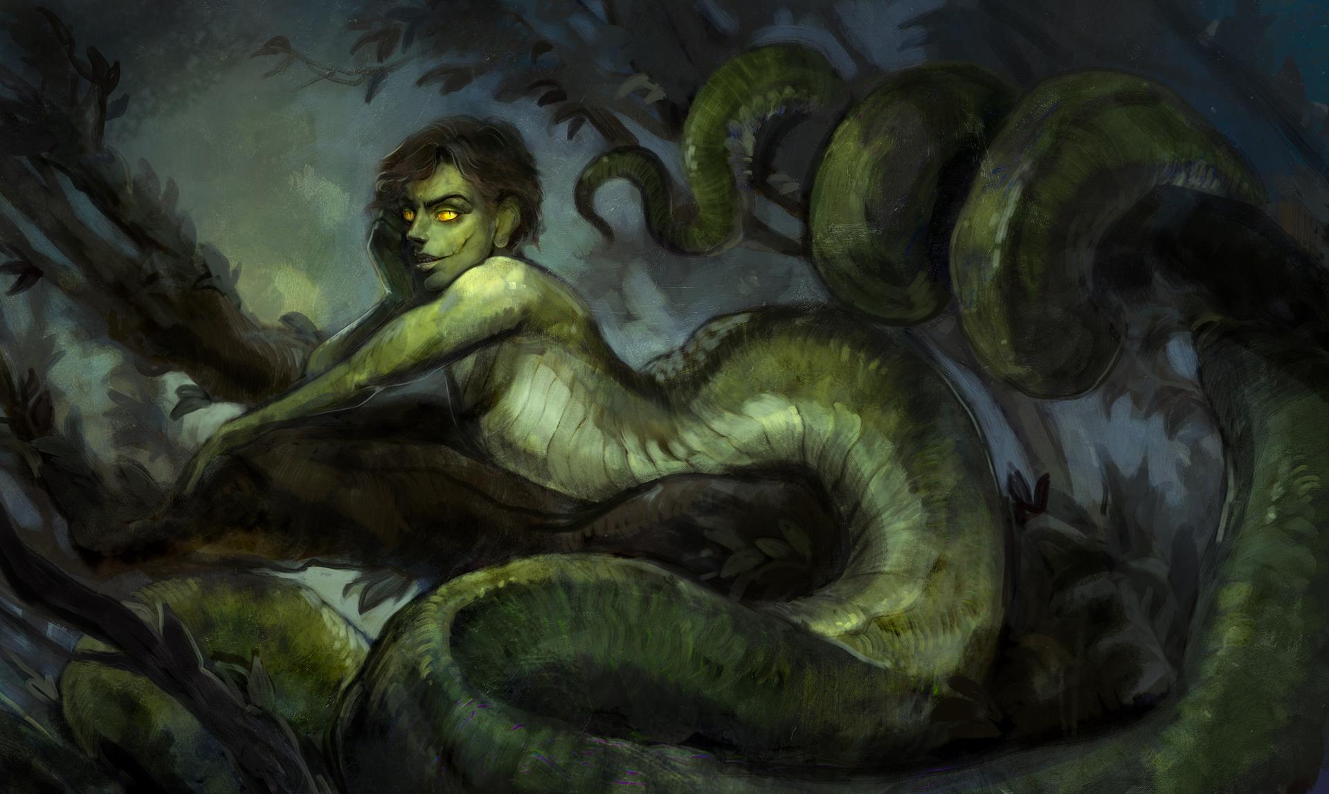 В мире мифов и легенд оживает Невеста Полоза - существо, сочетающее человеческую форму с рептилианой природой. Эти иллюстрации создают атмосферу загадки и легкого ужаса, где каждый чешуйка и каждый взгляд несет частичку древней мудрости. Художники мастерски передают двойственность образа: от привлекательной женственности до рептилианой чуждости. Тематические арты показывают Невесту Полоза в различных ситуациях - от ритуальных церемоний до моментов одиночества. Каждая картинка наполнена символизмом: чешуя как броня эмоций, холодные глаза как знак древнего знания, а извивающиеся формы как проявление внутренней природы. Эти изображения вызывают размышления о границах человечности и о том, как внешняя красота может скрывать совершенно иную сущность.