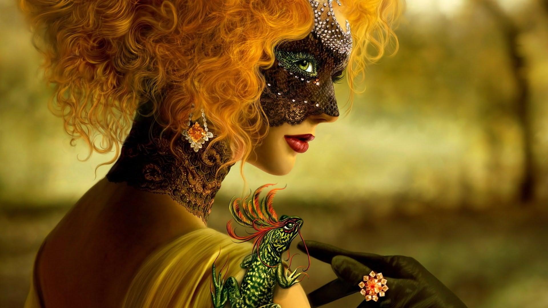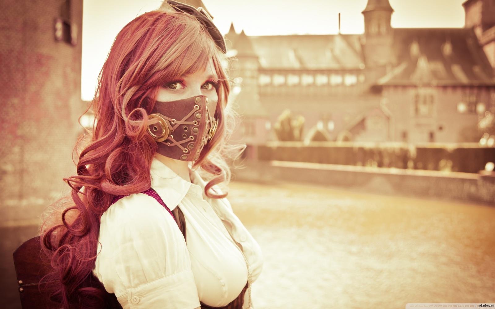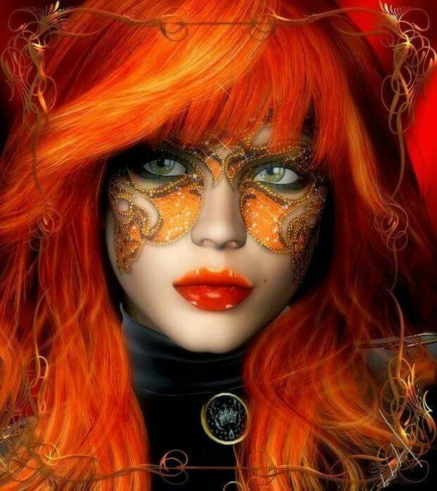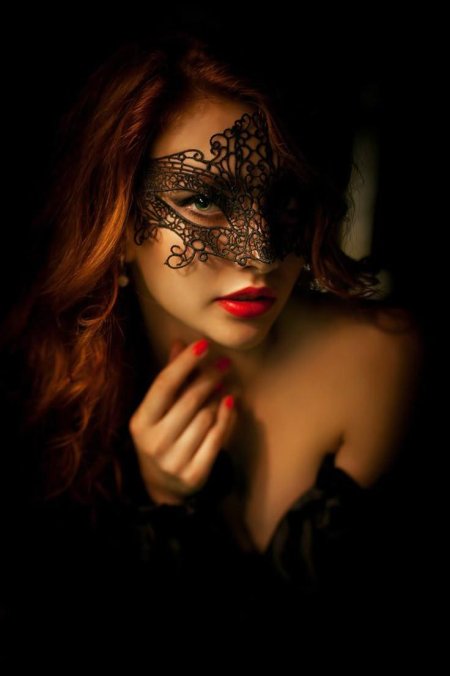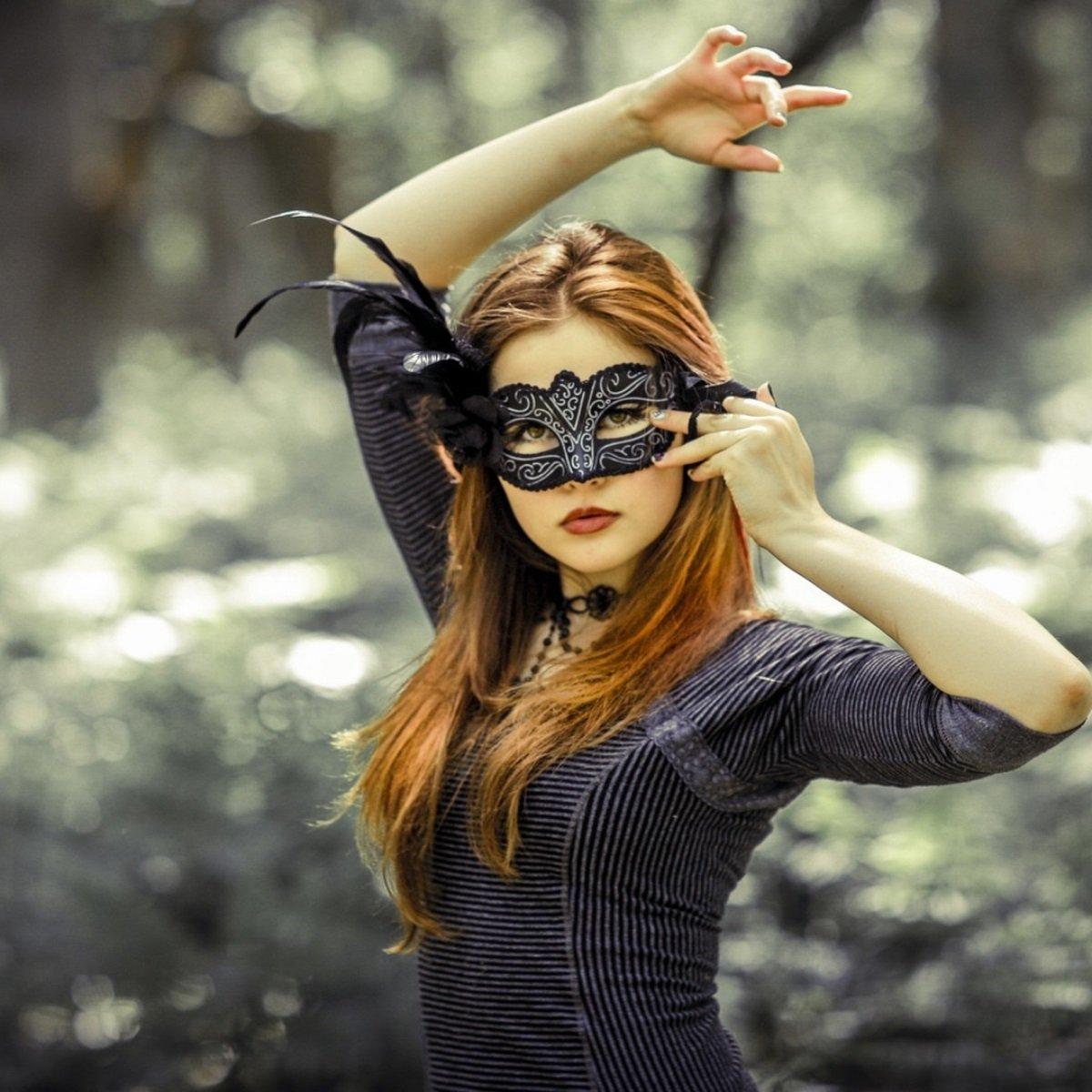 Рыжая девушка в маске