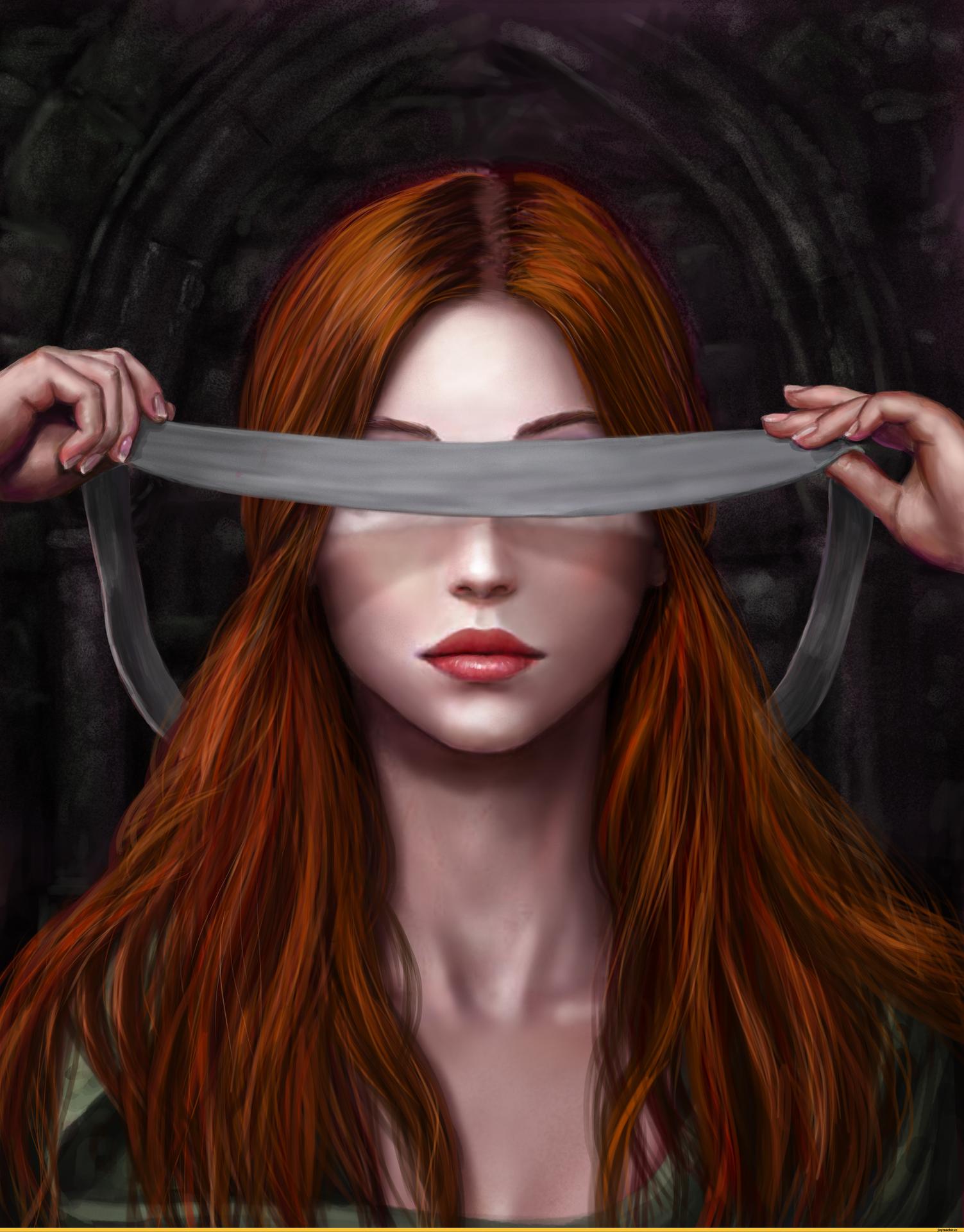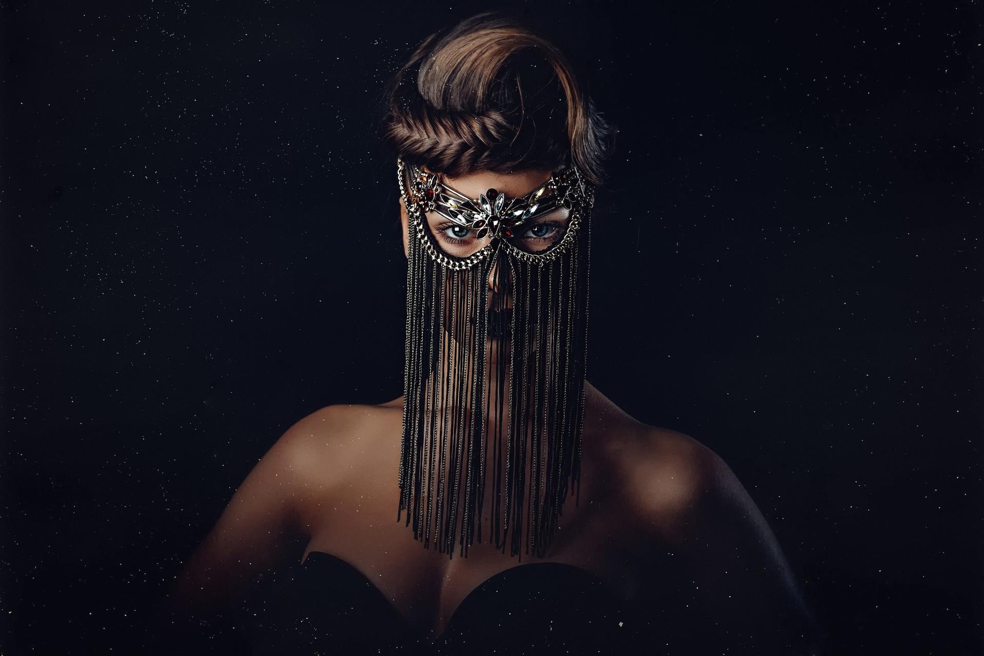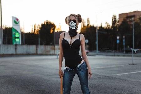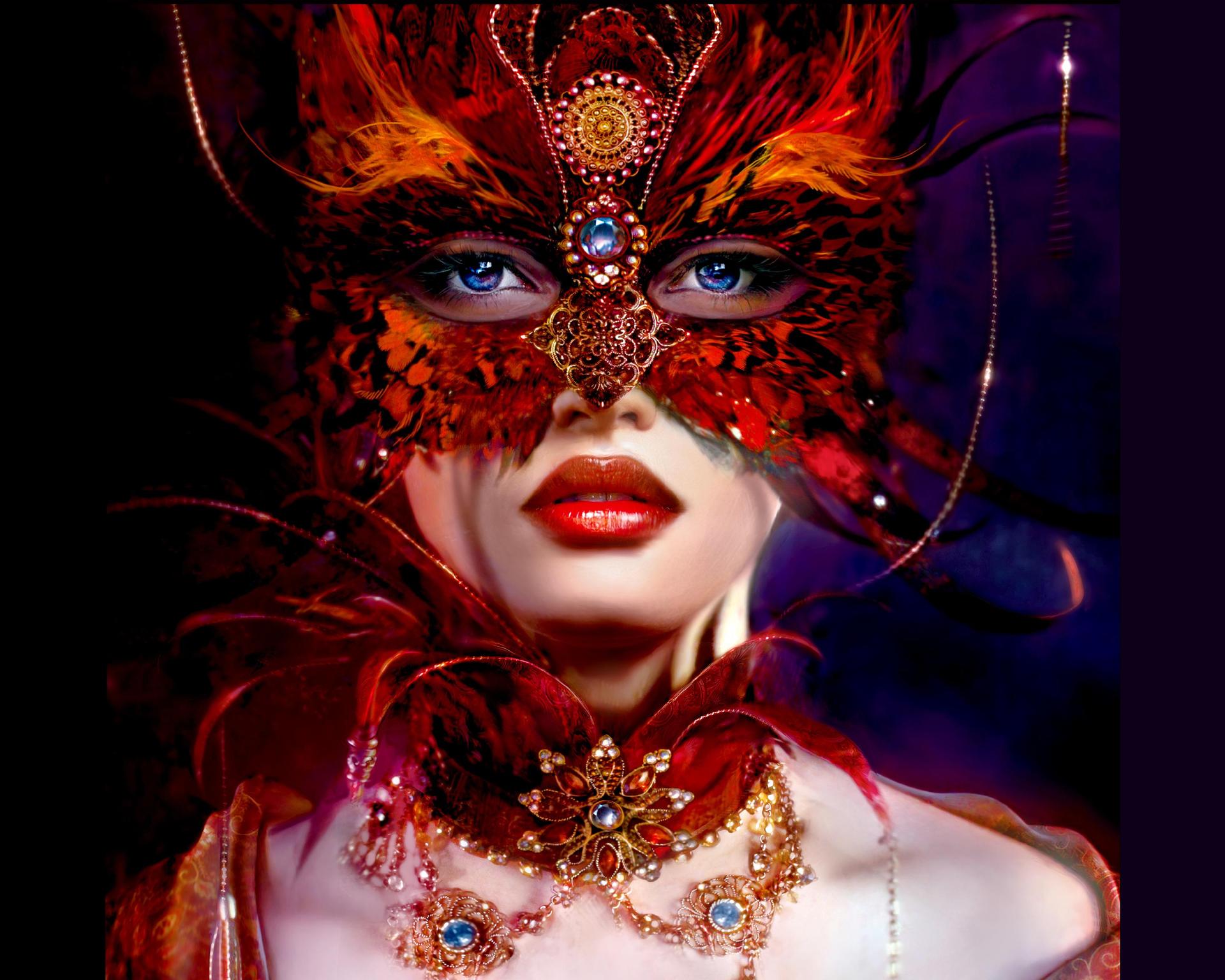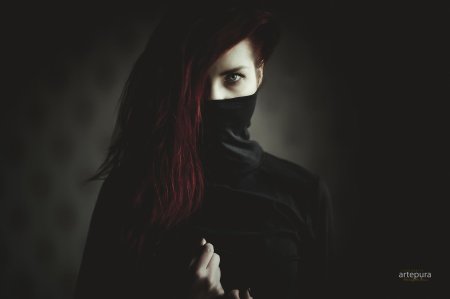 Рыжая девушка в маске