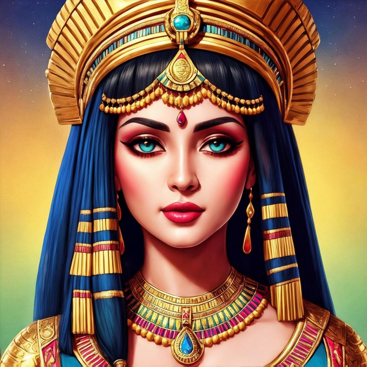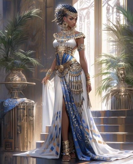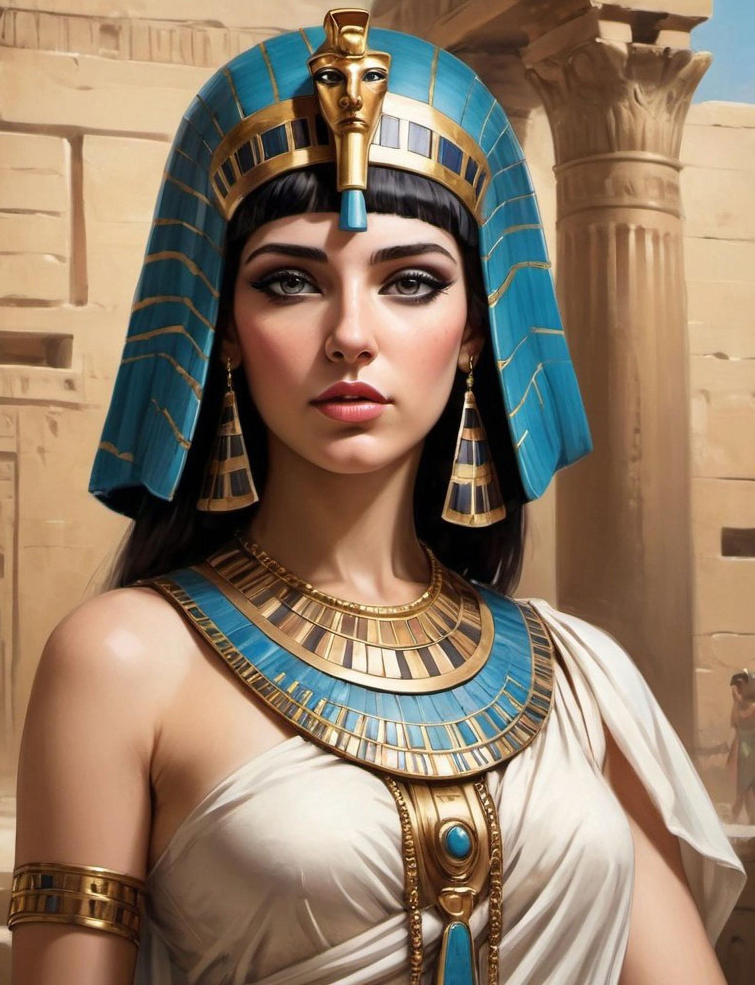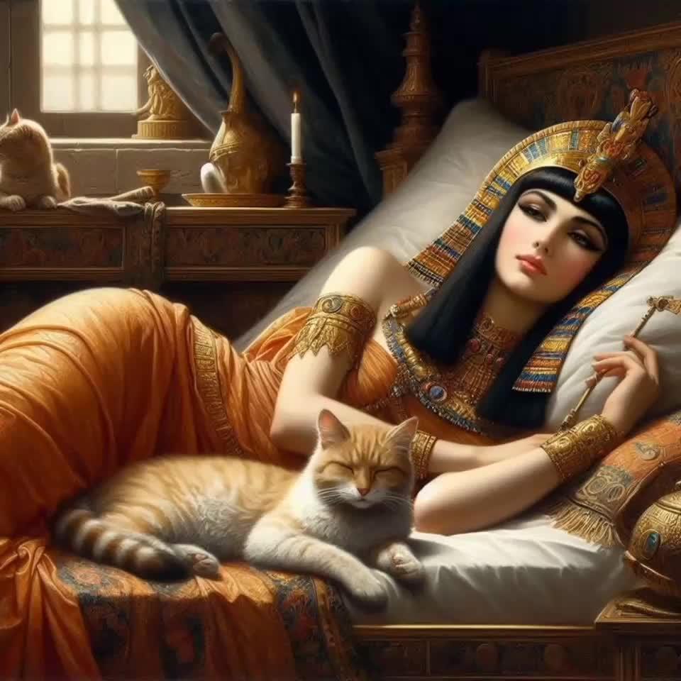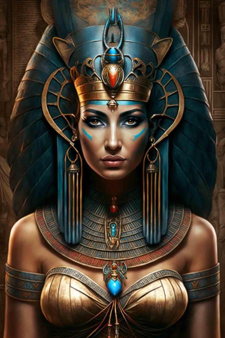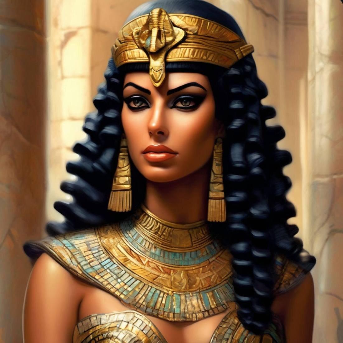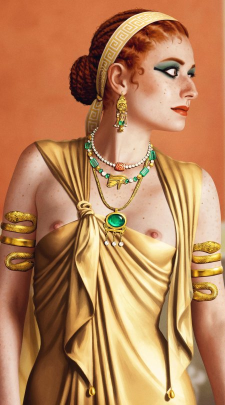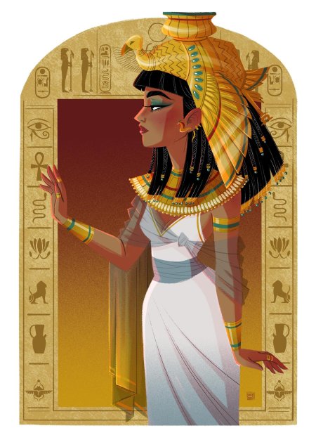 В золотом сиянии древнего Египта предстает Клеопатра - последняя фараон и воплощение женской власти в эпоху, когда миры Востока и Запада соприкасались. Эти иллюстрации раскрывают всю многогранность образа: от величественных портретов с короной урея до интимных сцен с Марком Антонием. Художники мастерски передают атмосферу позднего периода Птолемеев: роскошные дворцы, интриги политиков, смешение культур. Тематические арты показывают Клеопатру в различных ситуациях - от государственных аудиенций до моментов уединения с аспидами. Каждая картинка наполнена символизмом: золотые украшения как знак божественного происхождения, священные животные как проводники воли богов, а Нил как источник жизни и власти. Эти изображения рассказывают о цене амбиций и хрупкости величия.