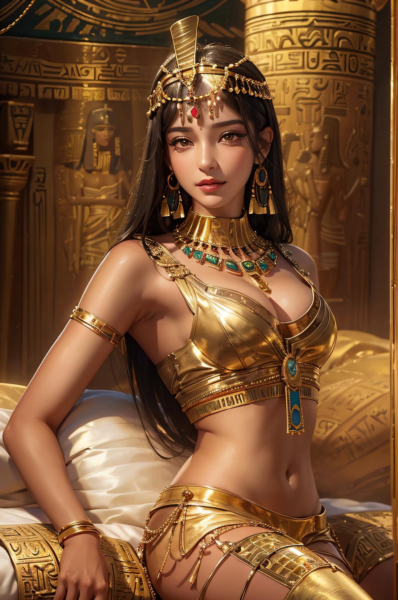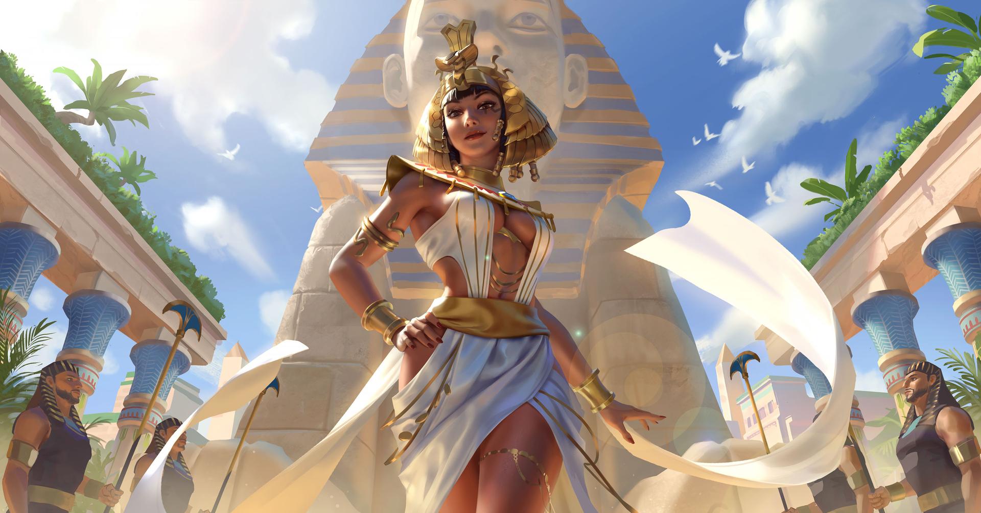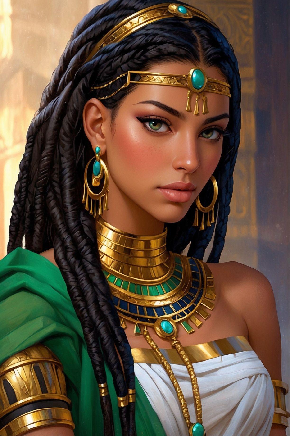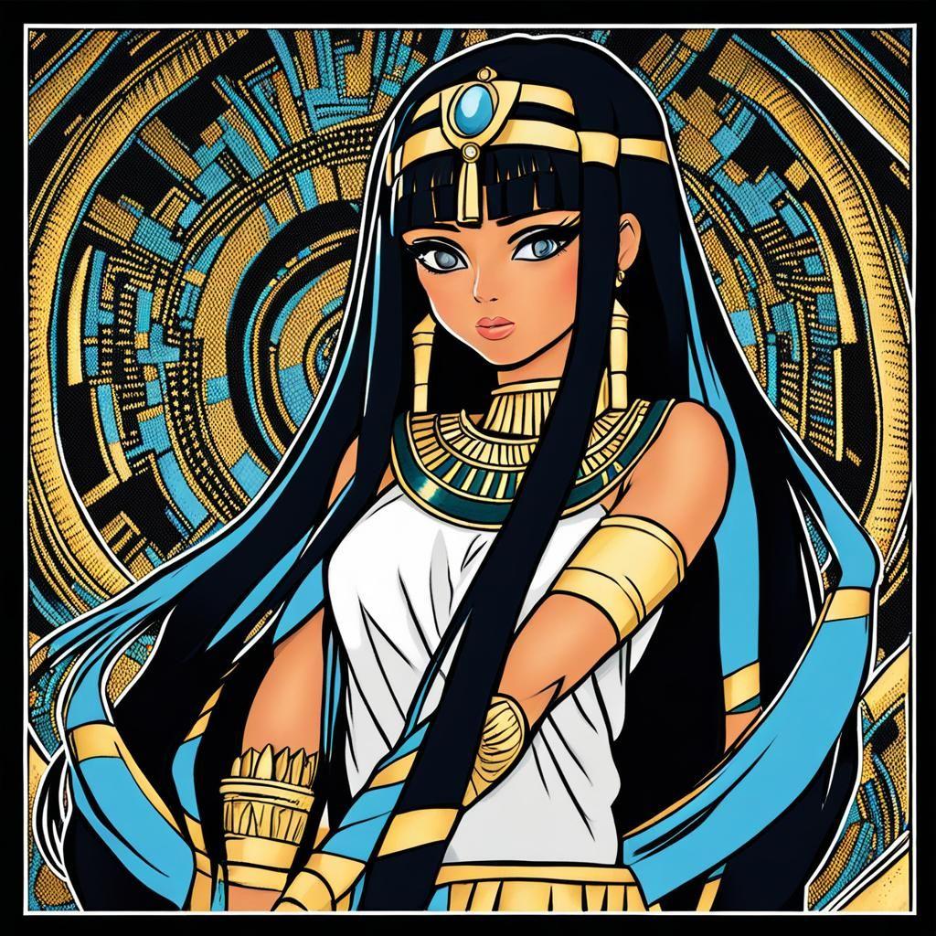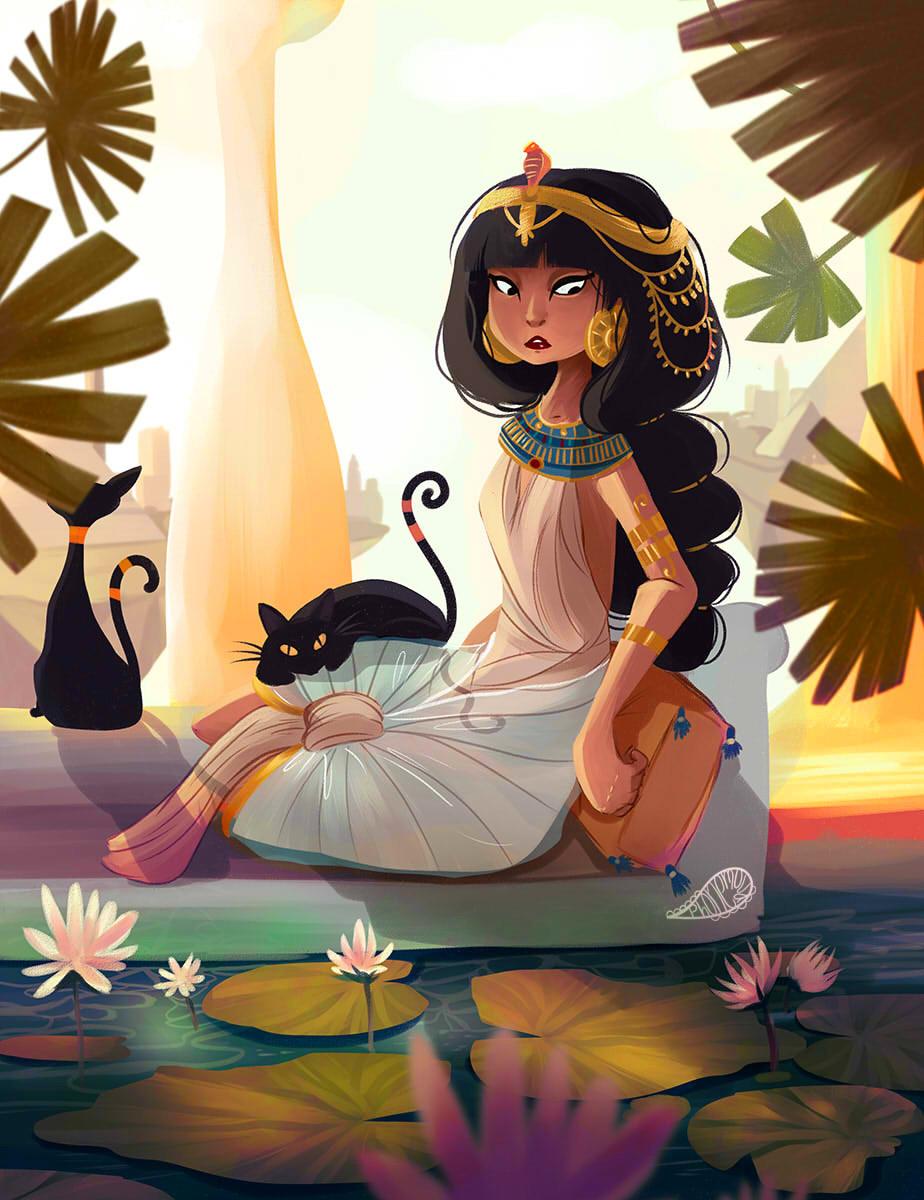 В золотом сиянии древнего Египта предстает Клеопатра - последняя фараон и воплощение женской власти в эпоху, когда миры Востока и Запада соприкасались. Эти иллюстрации раскрывают всю многогранность образа: от величественных портретов с короной урея до интимных сцен с Марком Антонием. Художники мастерски передают атмосферу позднего периода Птолемеев: роскошные дворцы, интриги политиков, смешение культур. Тематические арты показывают Клеопатру в различных ситуациях - от государственных аудиенций до моментов уединения с аспидами. Каждая картинка наполнена символизмом: золотые украшения как знак божественного происхождения, священные животные как проводники воли богов, а Нил как источник жизни и власти. Эти изображения рассказывают о цене амбиций и хрупкости величия.