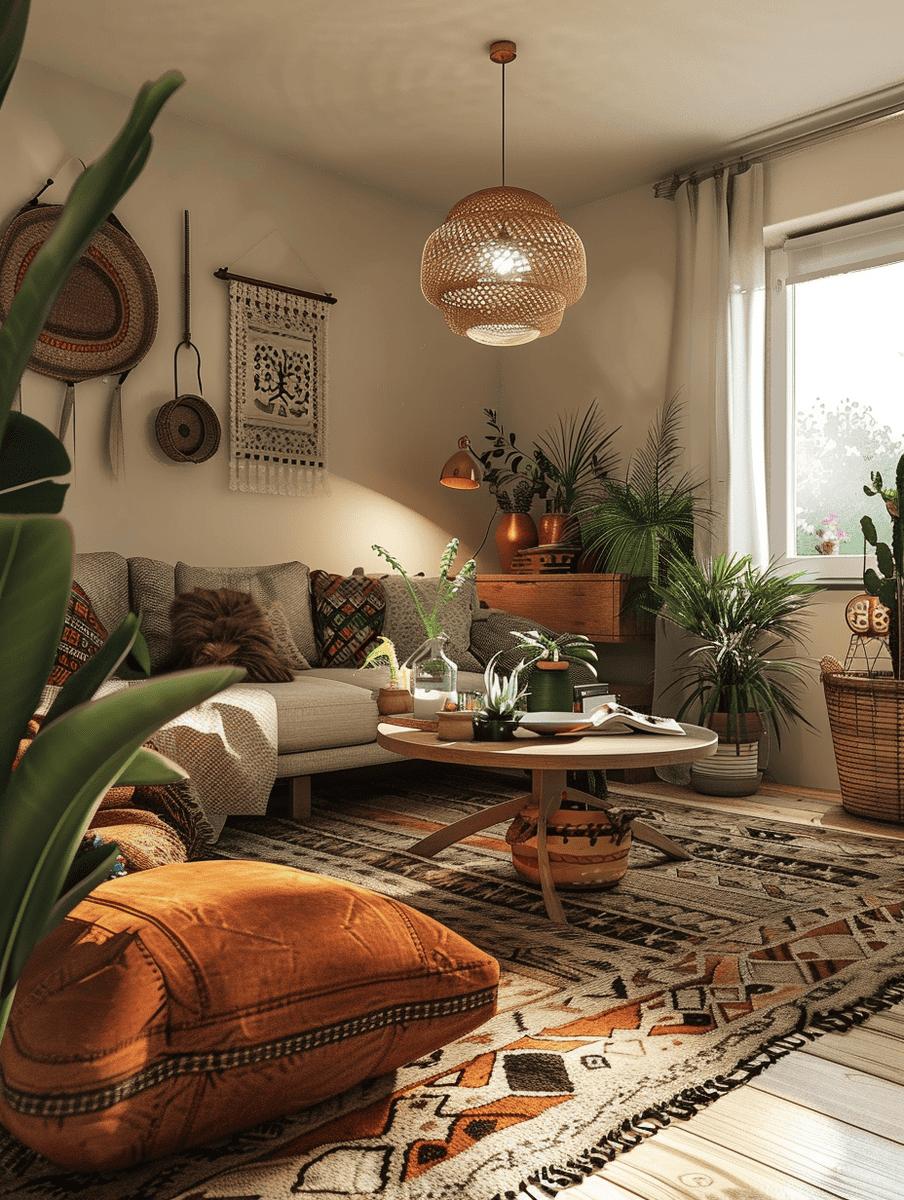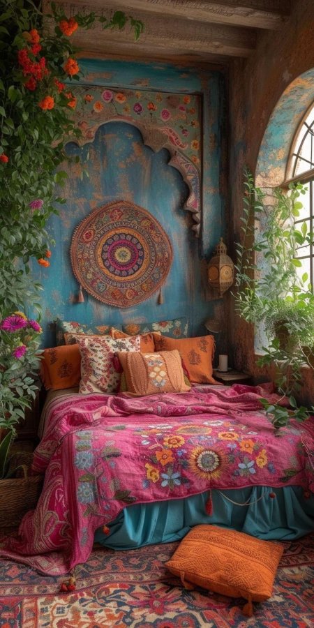 Бо-хо интерьер - это не просто стиль, это философия свободы и творческого хаоса, где каждый предмет рассказывает свою уникальную историю. Эти фото демонстрируют гармоничное сочетание этнических мотивов, винтажных находок и современных акцентов, создавая пространство, которое дышит индивидуальностью. Художники акцентируют внимание на слоях текстур и цветов, от вышитых подушек и макраме до ковров с геометрическими узорами и растений в керамических горшках. Тематические изображения показывают различные интерпретации стиля - от минималистичных композиций до максимально насыщенных эклектичных пространств. Каждая композиция отражает дух странствий и культурных открытий, где нет строгих правил, а только интуитивное чувство прекрасного.